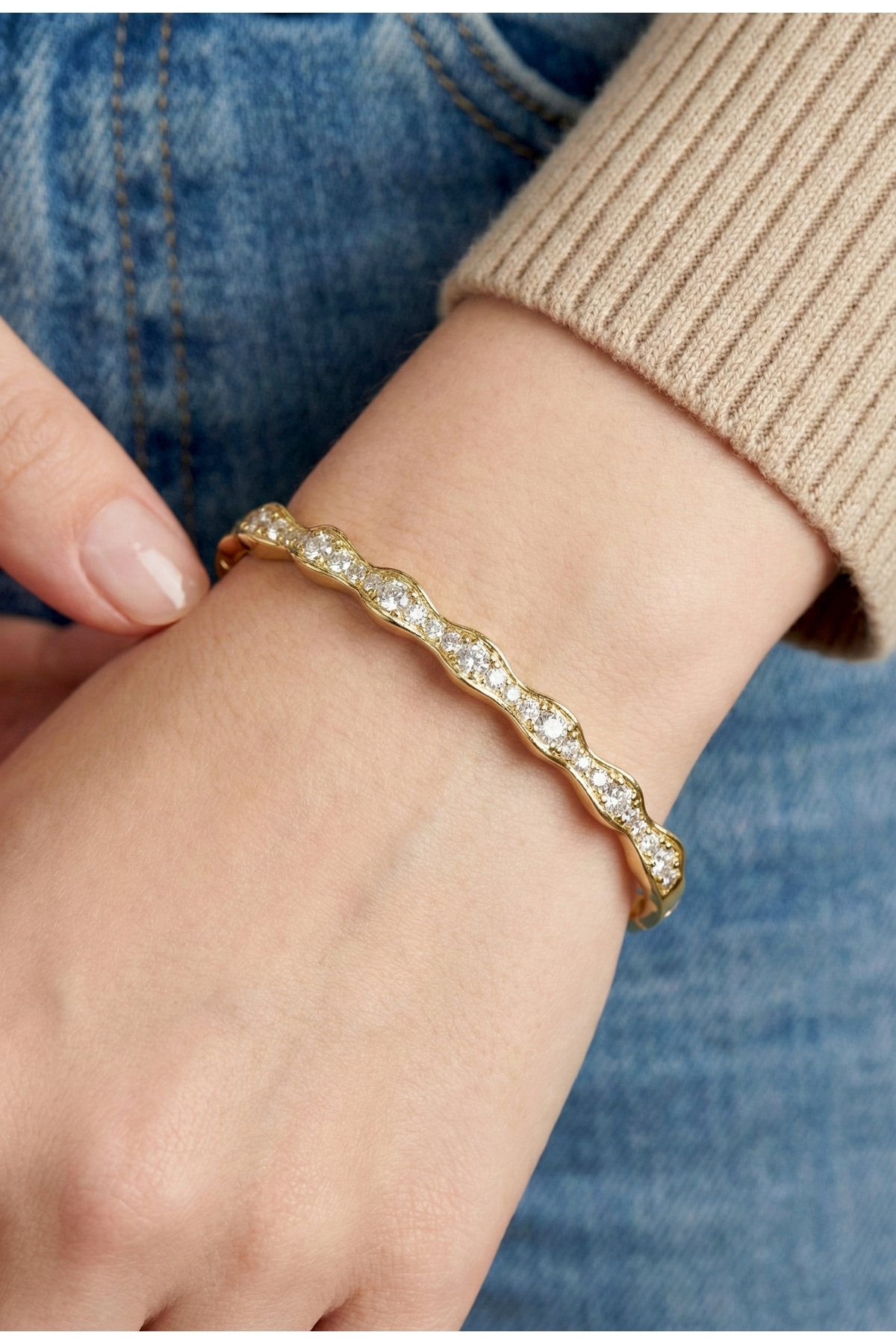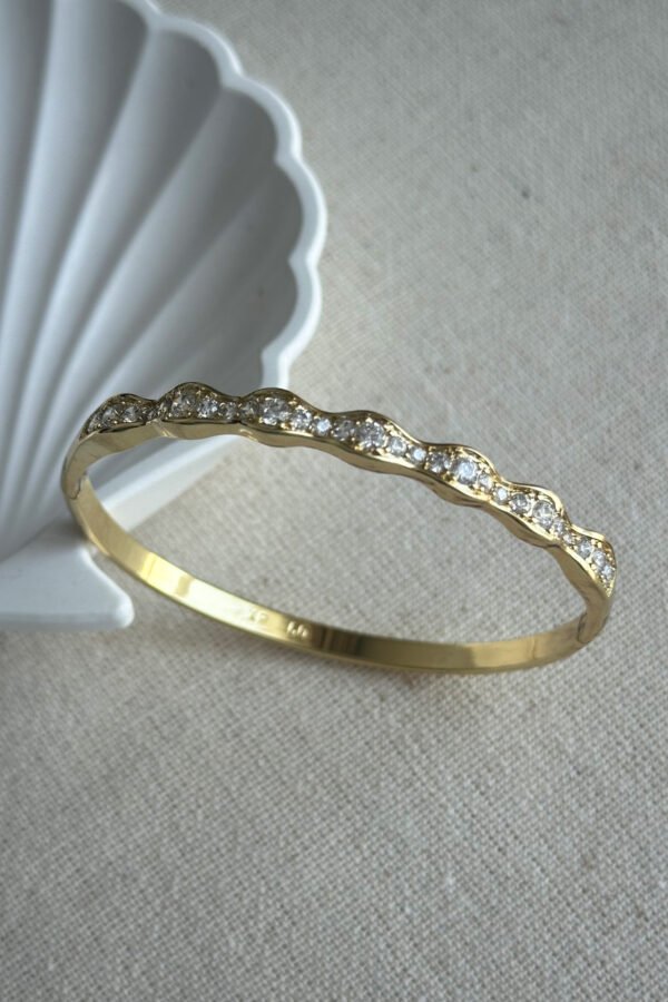 Şıklığınızı tamamlayacak bu özel tasarım bileklik, zarafeti ve kaliteyi bir araya getiriyor. Anti-alerjik yapısı ve kararma yapmayan özel kaplaması sayesinde günlük kullanımda güvenle tercih edebilirsiniz. Ürünümüz parfüm ve krem gibi kimyasallardan uzak tutulduğu sürece ışıltısını yıllarca korur. Her bileğe uygun ölçüsüyle hem kendiniz hem de sevdikleriniz için mükemmel bir hediye seçeneğidir
