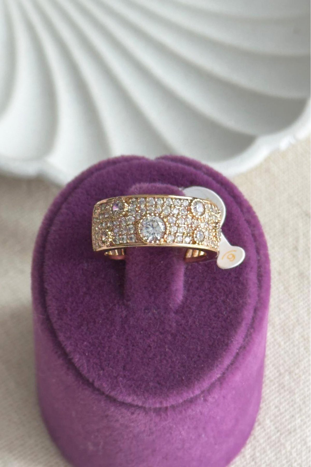 Xuping 14K İnce Taşlı Kadın Yüzük – Kararmaz Altın Renk Takı | Xuping Yüzük