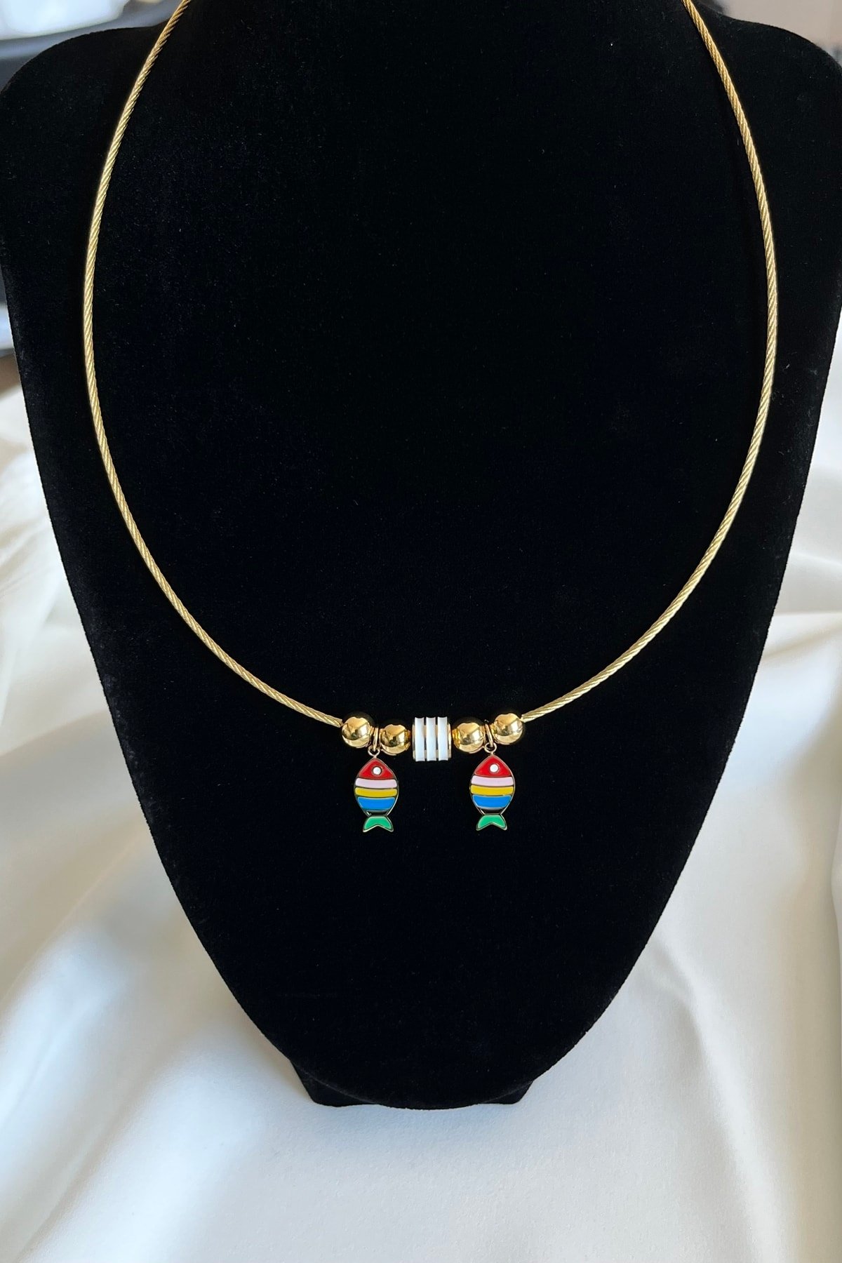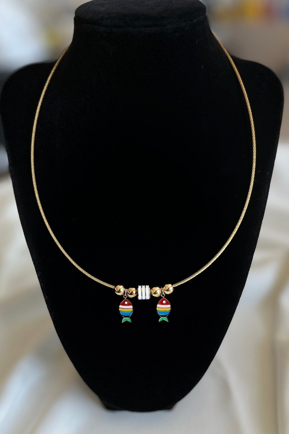Caprea Çelik Balıklı Pndr Kolye Altın Renkli Kararmaz Kolye 45 Cm Zincirli
