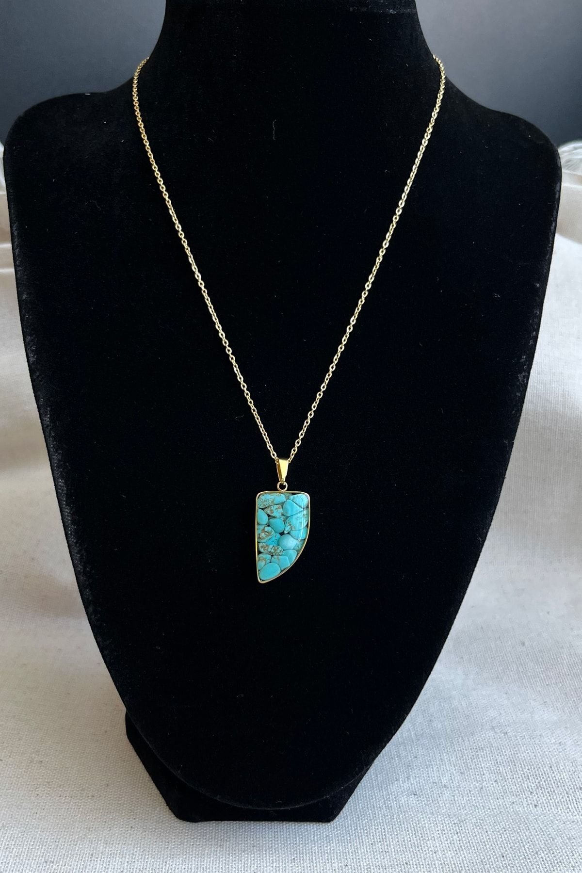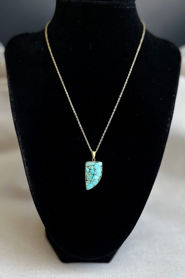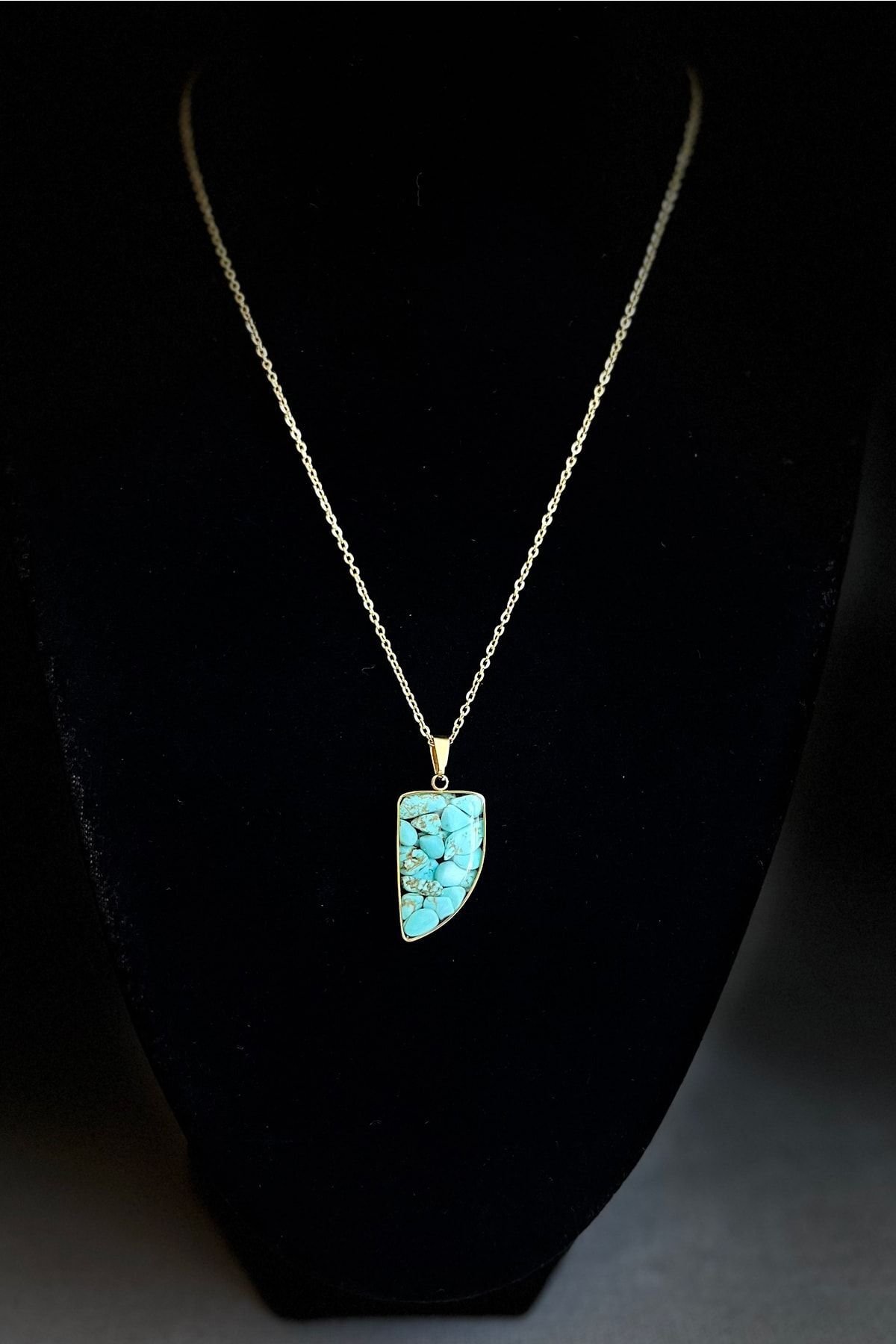 Caprea Çelik Doğaltaş Kolye Altın Renkli Kararmaz Kolye 45 cm Zincirli