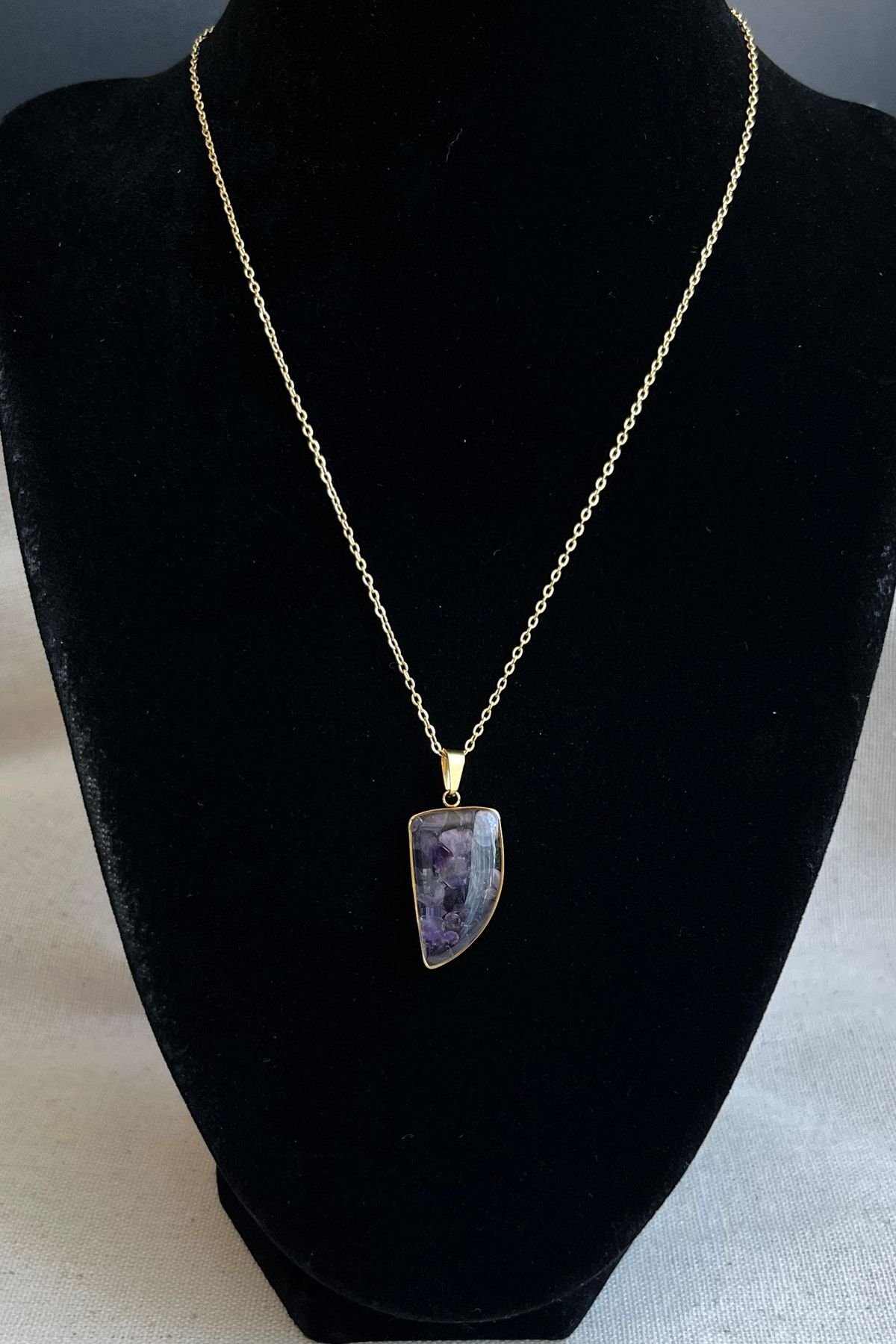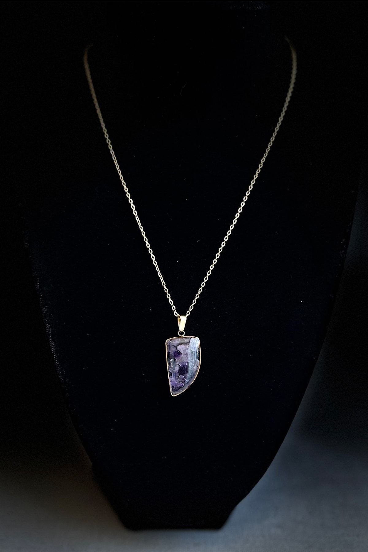 Caprea Çelik Doğaltaş Kolye Altın Renkli Kararmaz Kolye 45 cm Zincirli