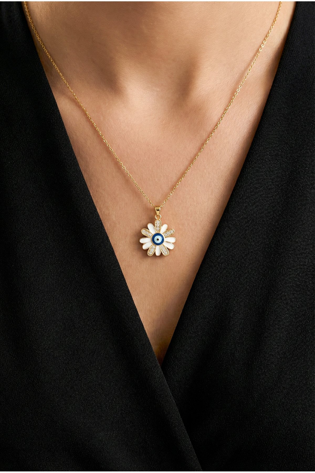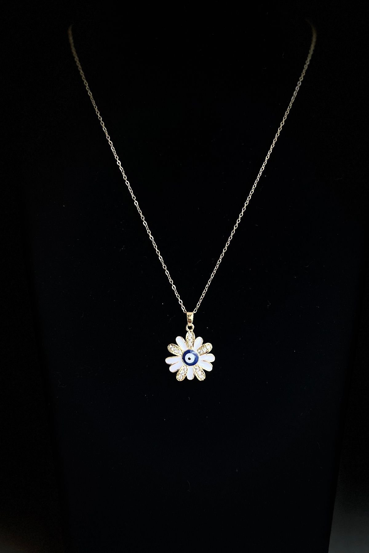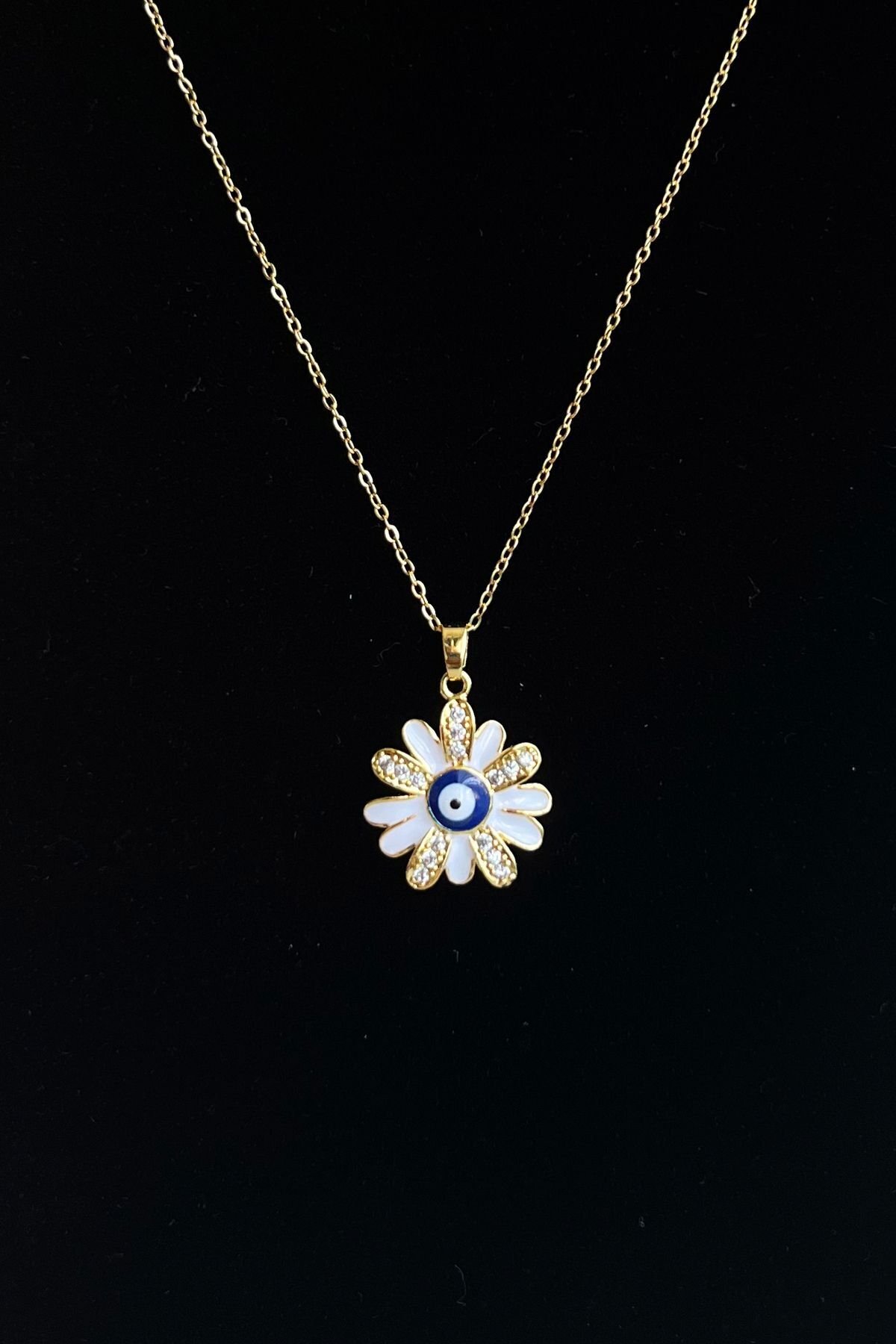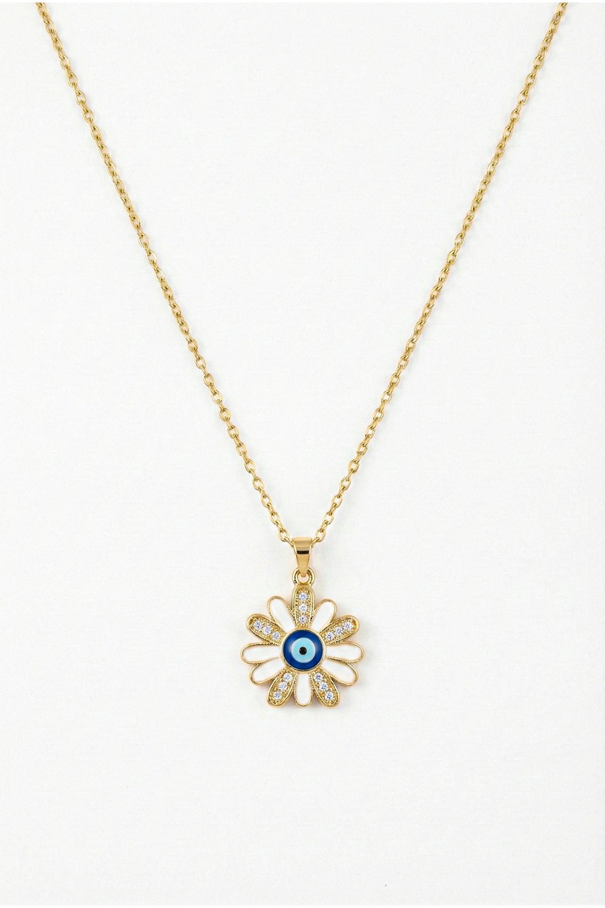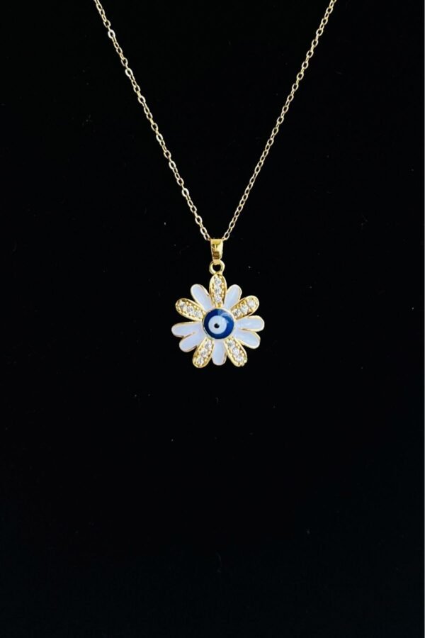 Caprea Çelik Nazar Çiçek Zincir Kolye Altın Renkli Kararmaz Zincir Kadın Kolye 40+ 5 cm