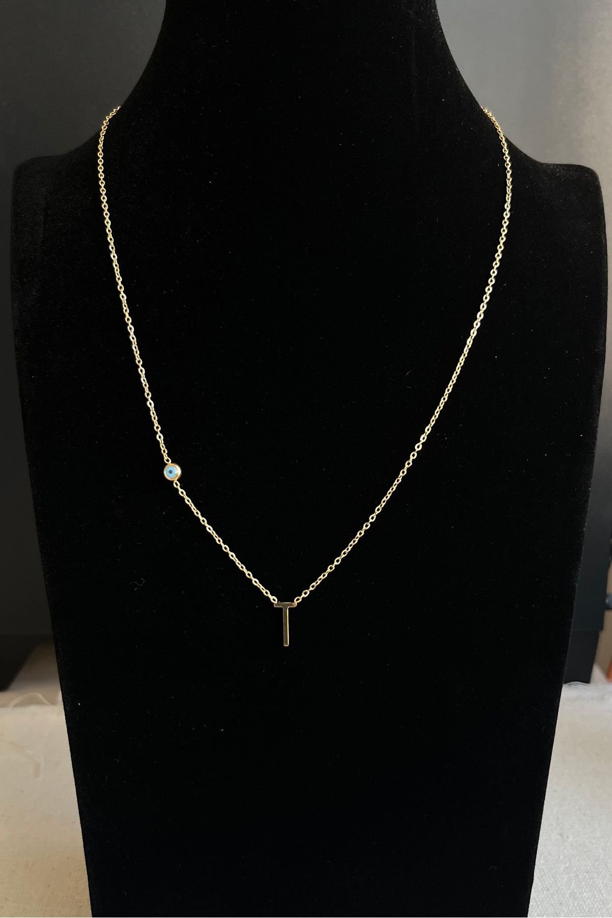 Caprea Çelik T Harfi Nazarlı Harf Kolye Kolye Altın Renkli Kararmaz Kadın Kolye 45 cm