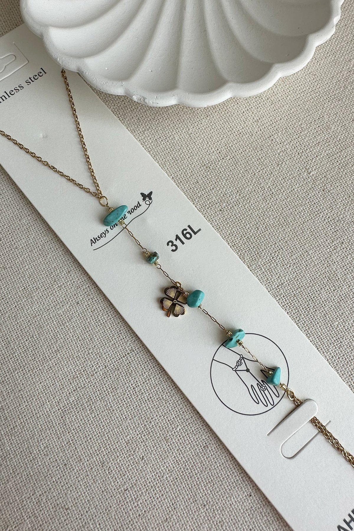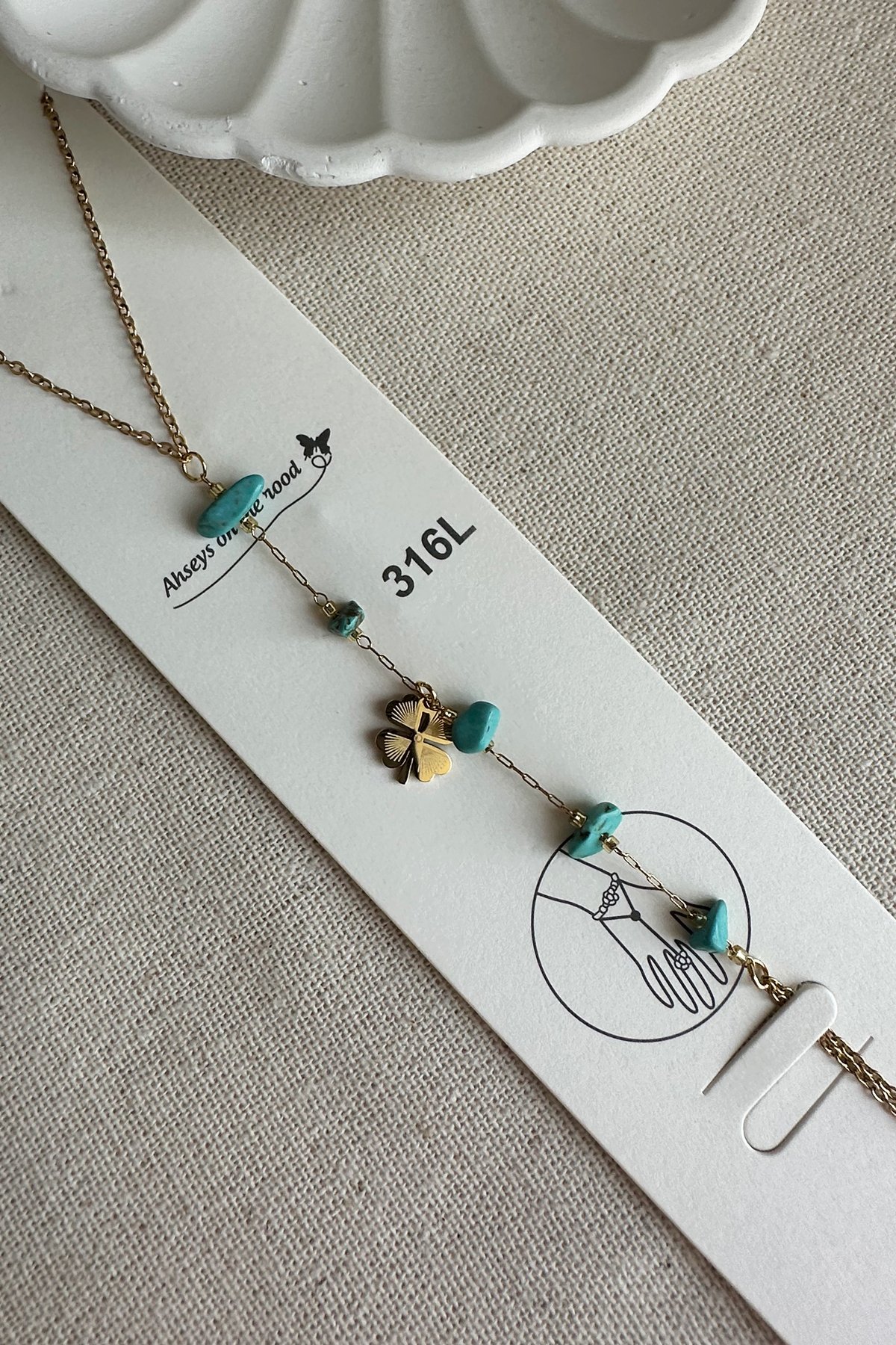 Caprea Çelik Yonca Mavi Taşlı Kadın Şahmeran Bileklik Kararmaz Kadın Bileklik
