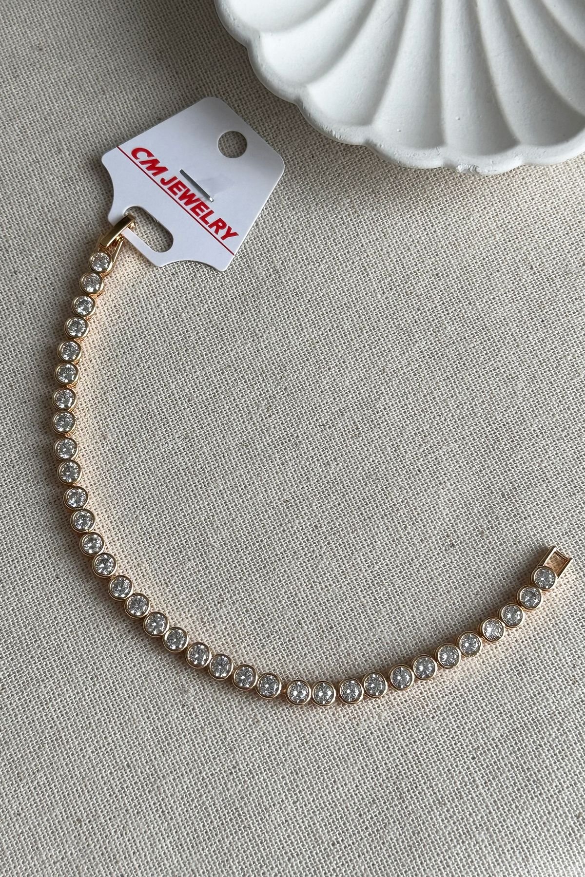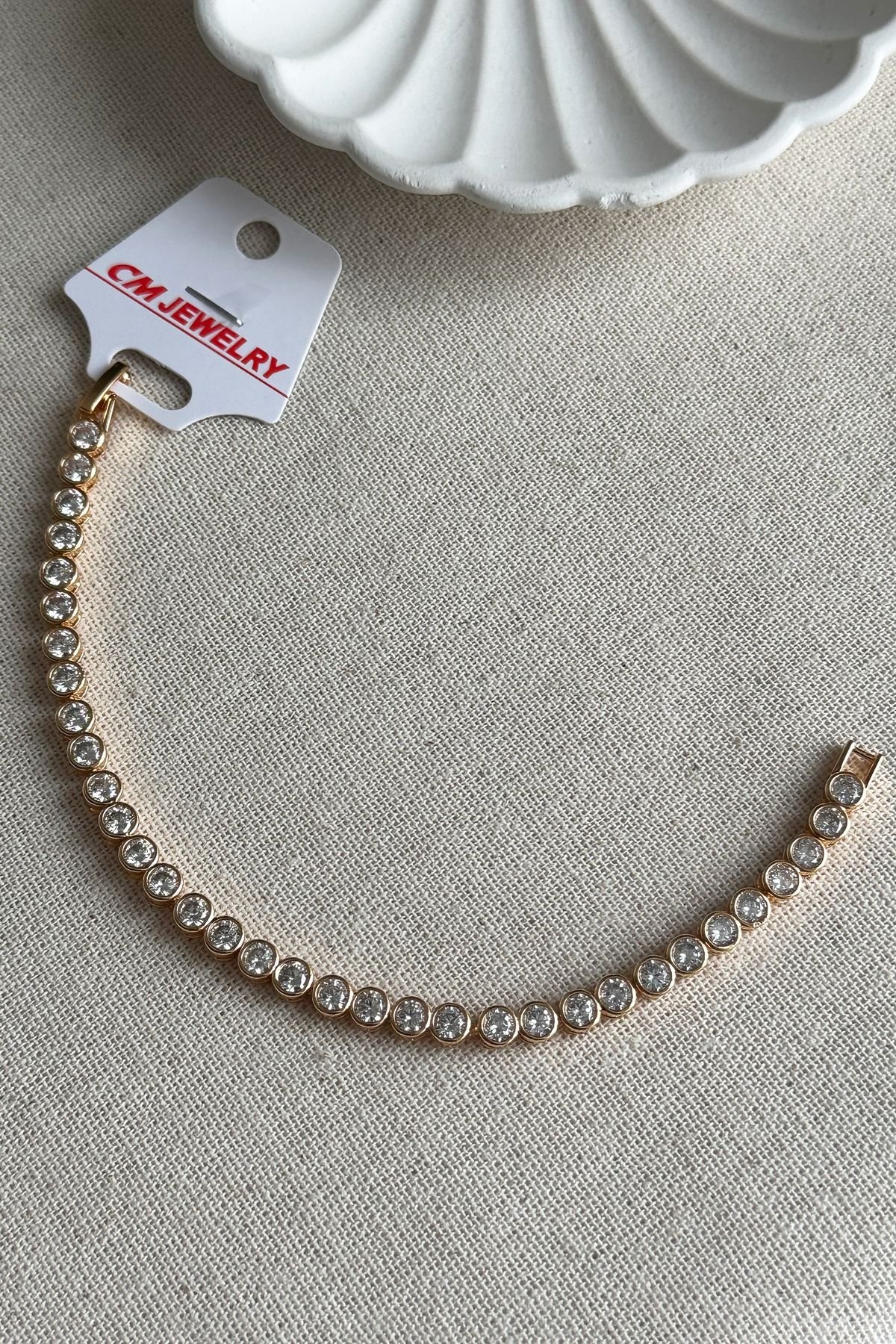 Caprea Pirinç 17 CM CM JEWELRY Sıralı Yuvarlak Taşlı Kadın Bileklik Kararmaz Kadın Bileklik