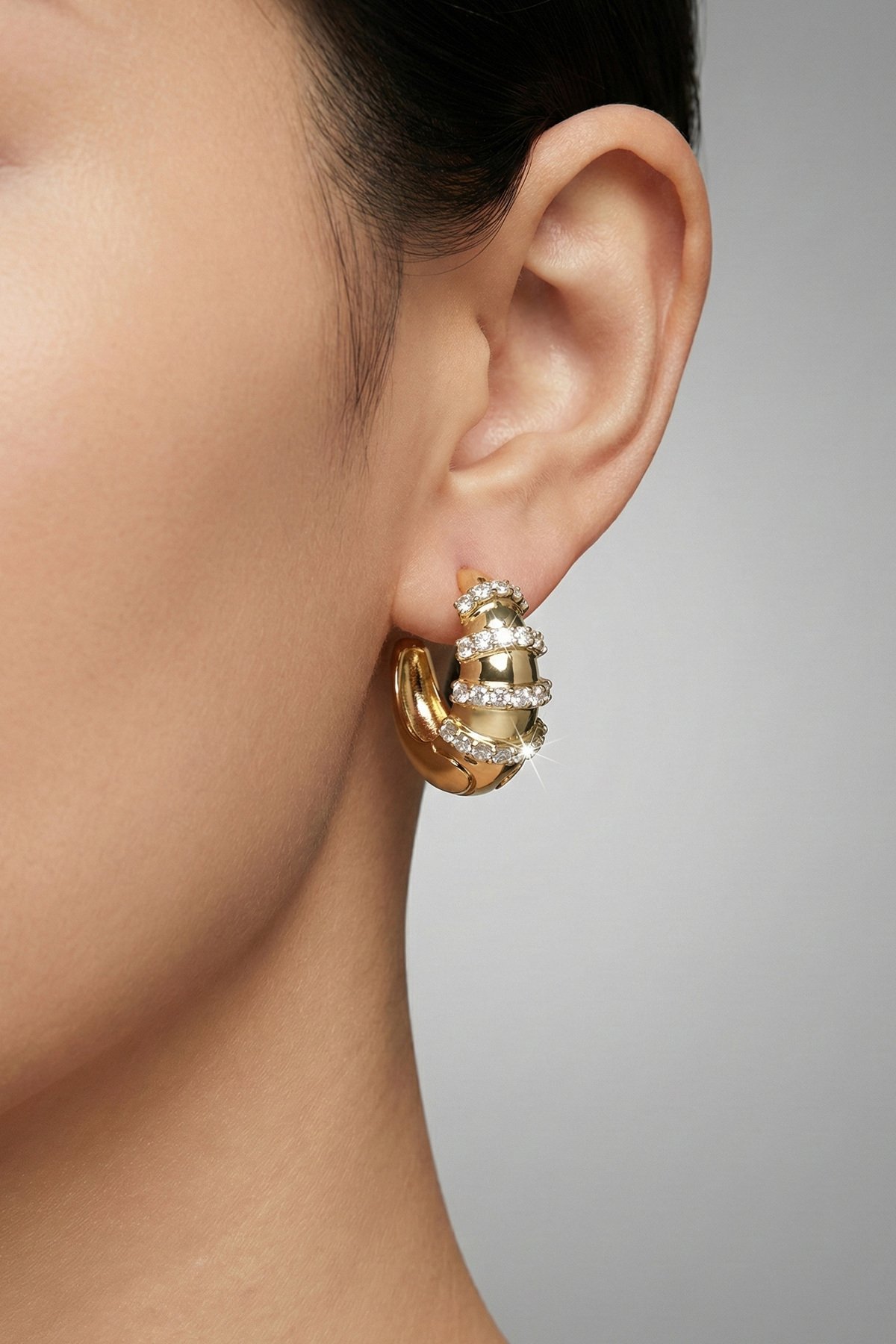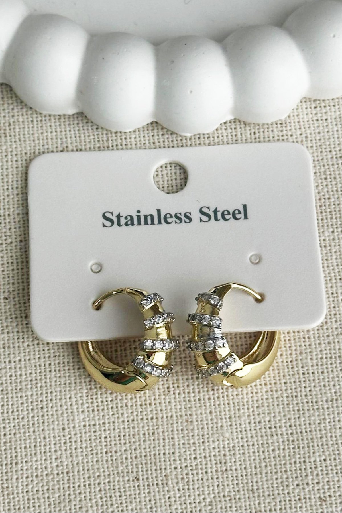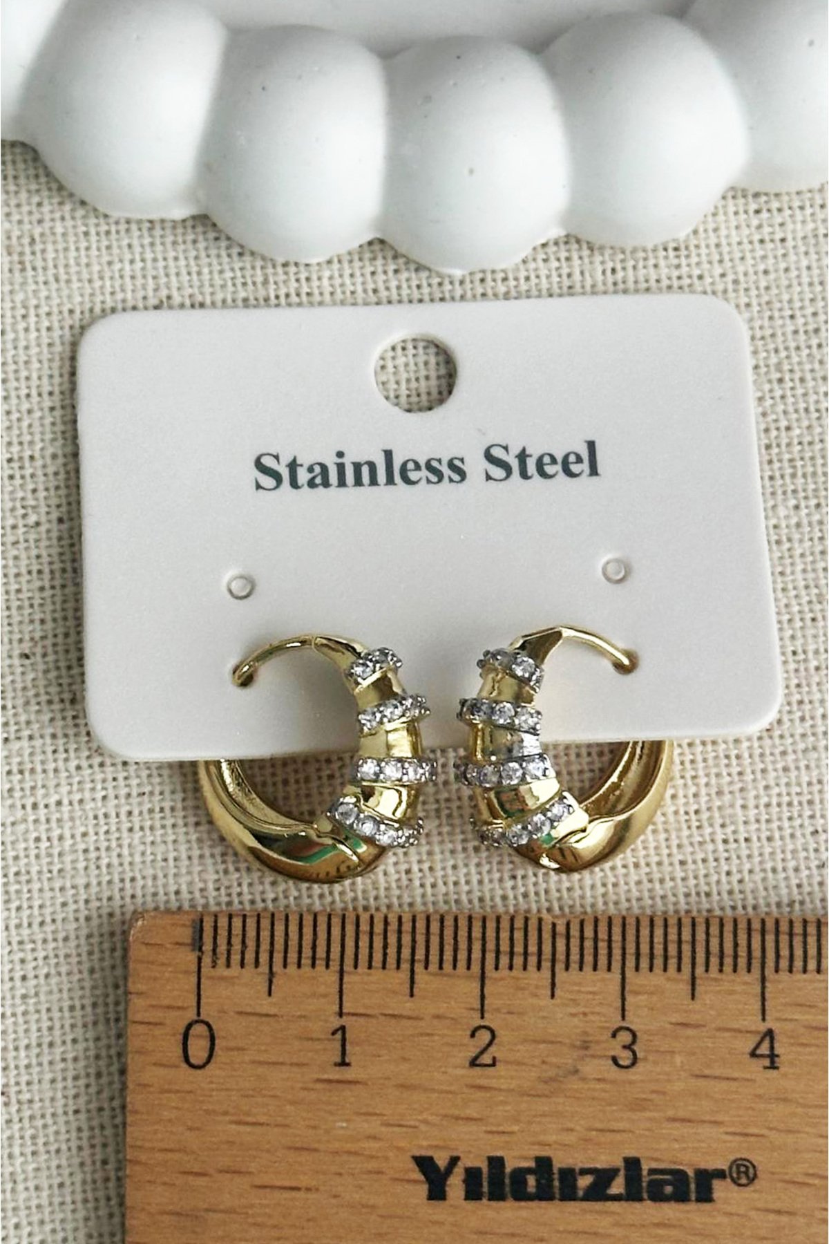 Çelik 14K Taşlı Halka Klipsli Kadın Küpe Kararmaz Kadın Takı Çelik Küpe