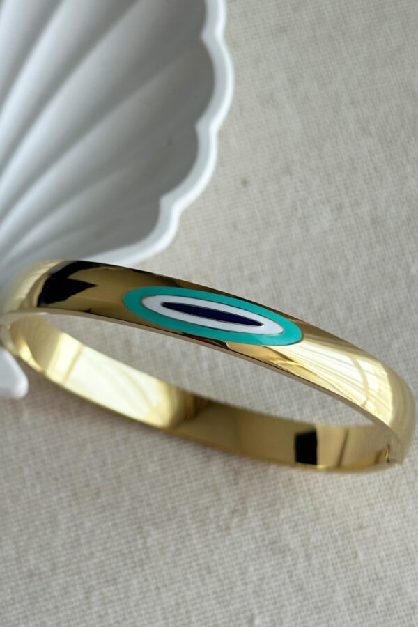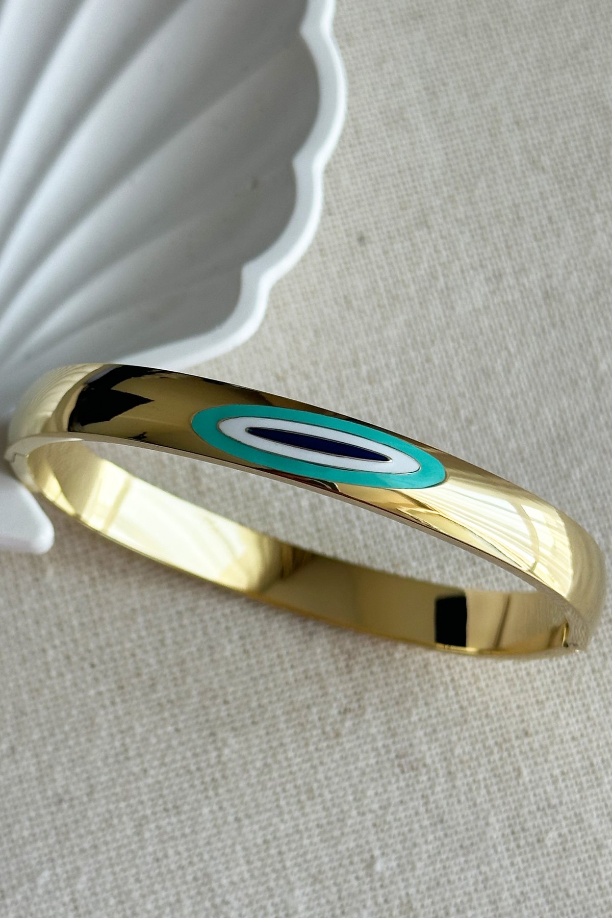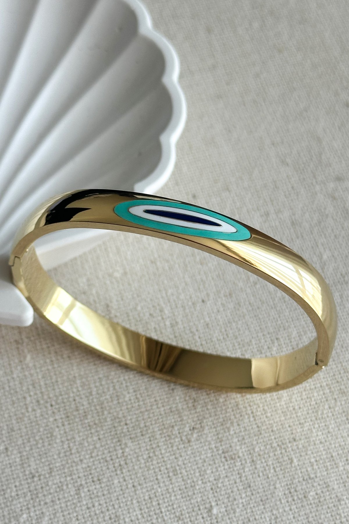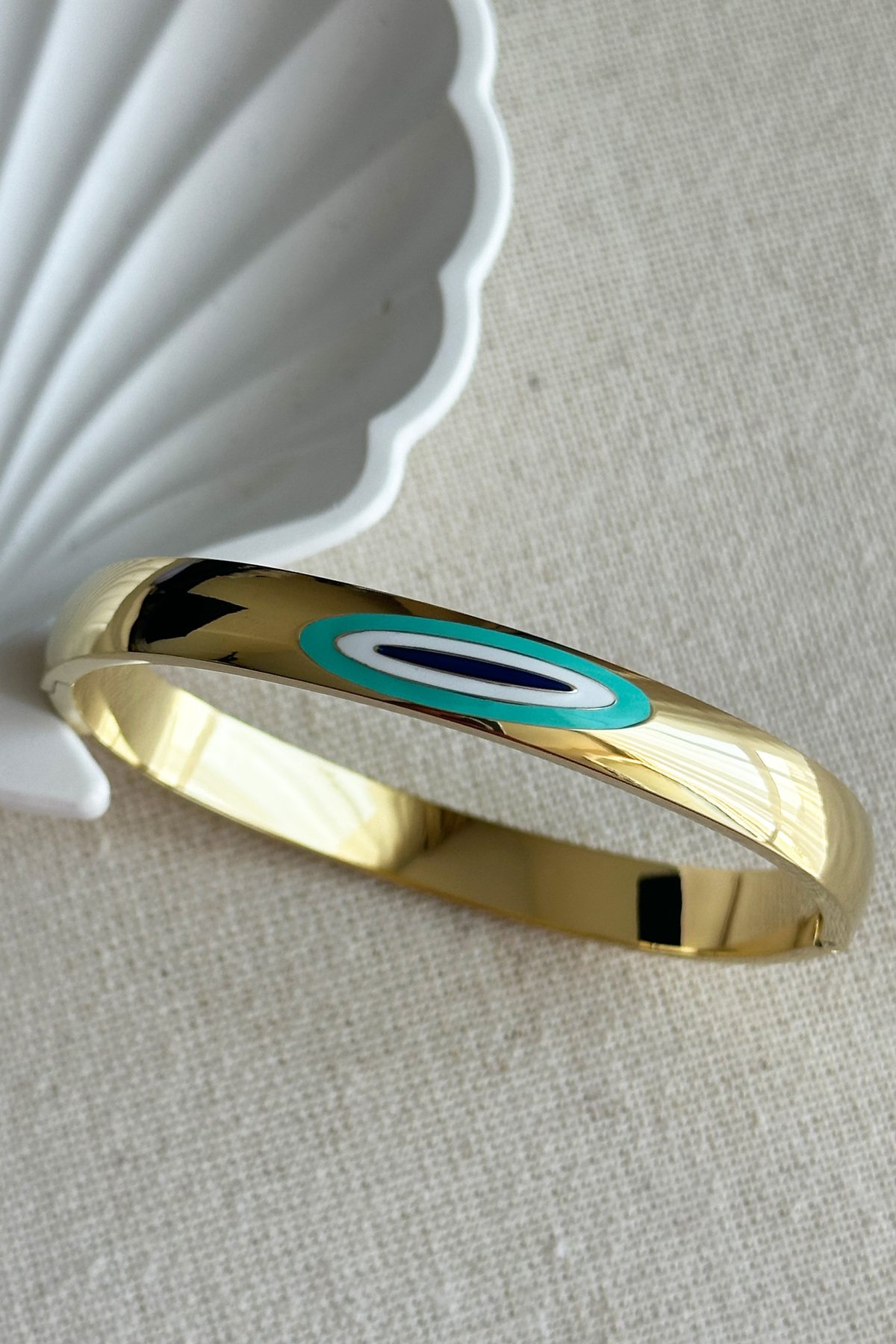 Çelik 14K Taşlı Nazar Oval Kadın Kelepçe Bileklik – 18 cm | Altın Renk Kararmaz Çelik Takı