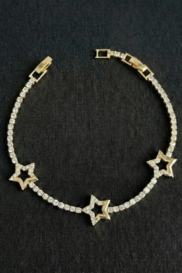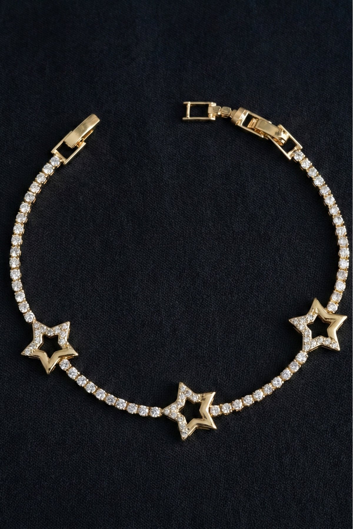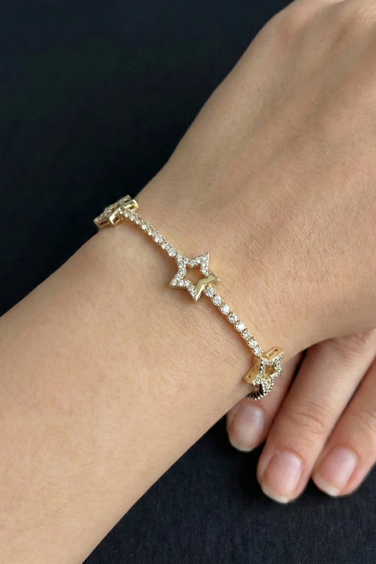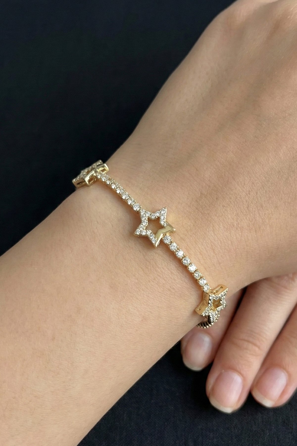 Çelik 14K Taşlı Yıldız Su Yolu Kadın Bileklik – 17+2 cm | Altın Renk Kararmaz Xuping Takı