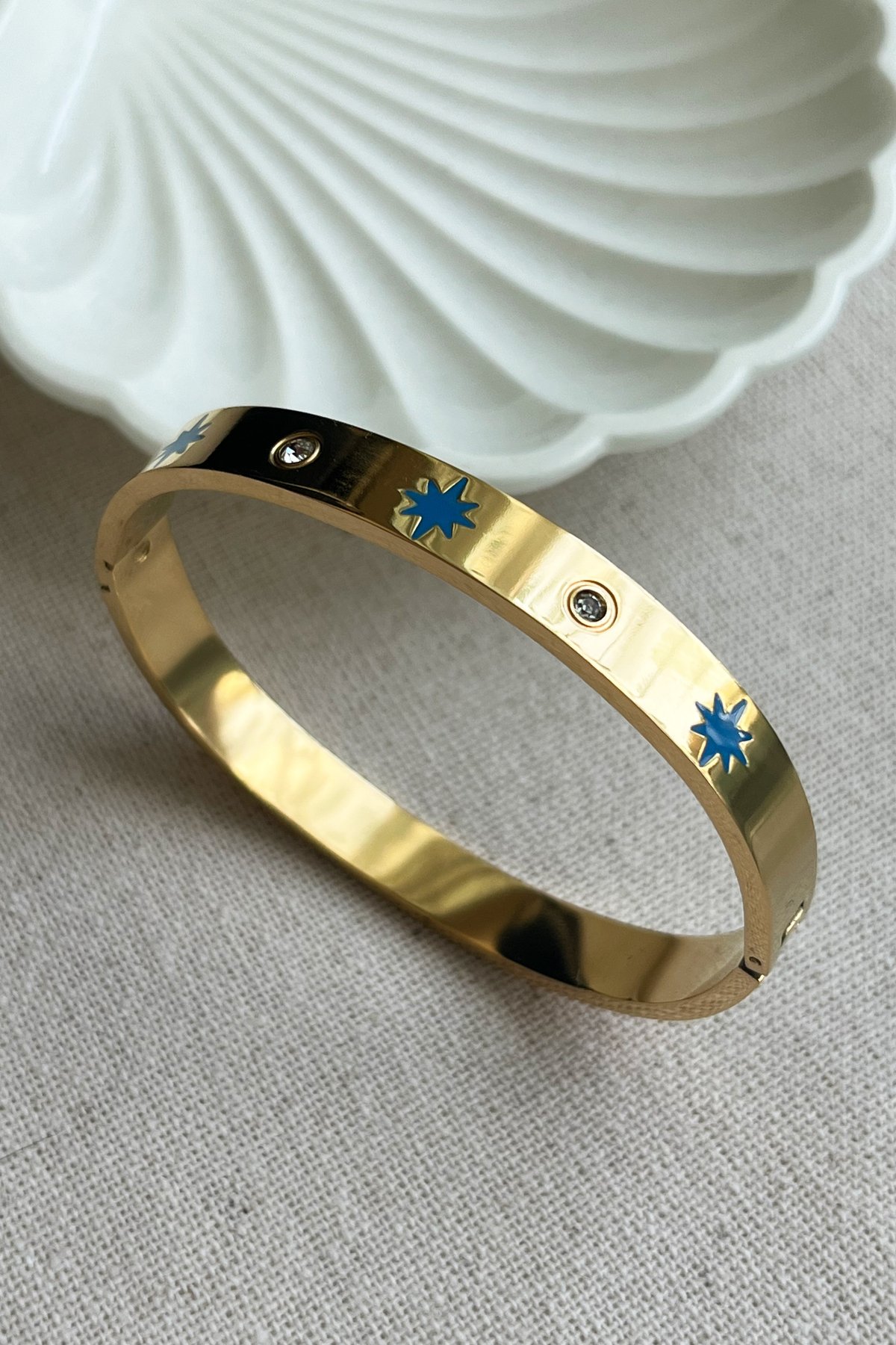 Çelik 17 Cm Çevreli Mavi Kutup Yıldızı Kadın Kelepçe Bileklik Kararmaz