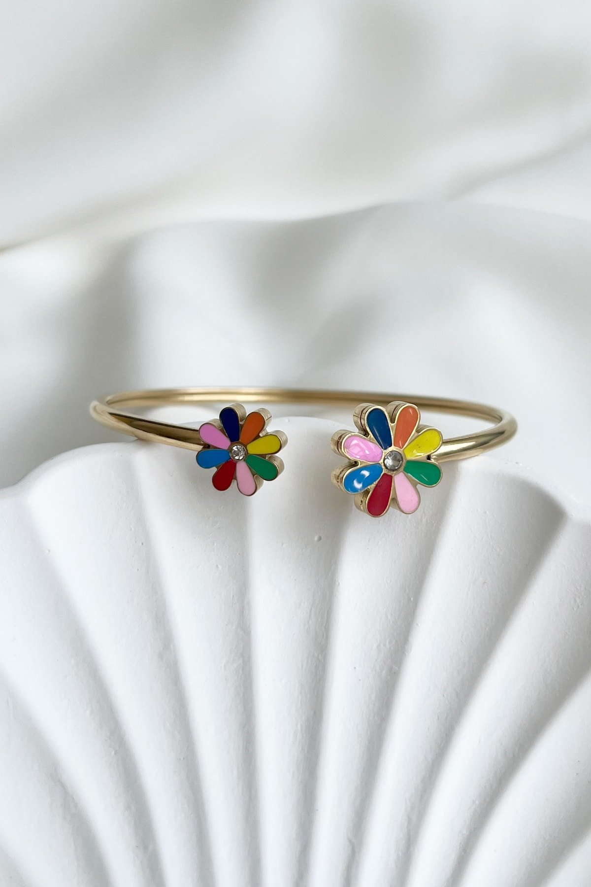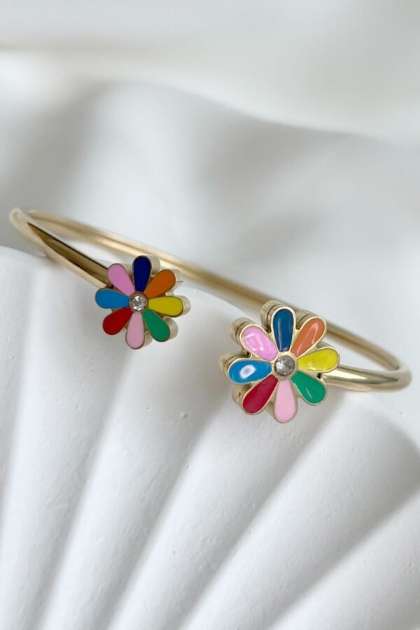 Çelik 18 Cm Çevreli Renkli Papatya Kadın Kelepçe Altın Renkli Karamaz