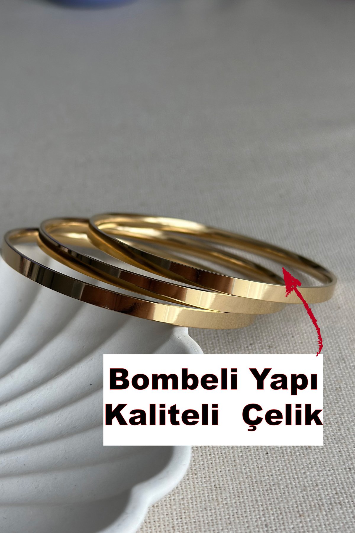 Çelik 18cm Yassı İçi Bombeli Bilezik Kararmaz Kadın Çelik Bilezik