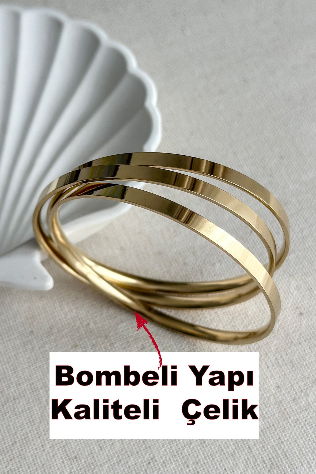 Çelik 22K 4’lü Köşeli Kadın Bilezik Çap 6 cm 18 cm Çevre Altın Renkli Kadın Bilezik