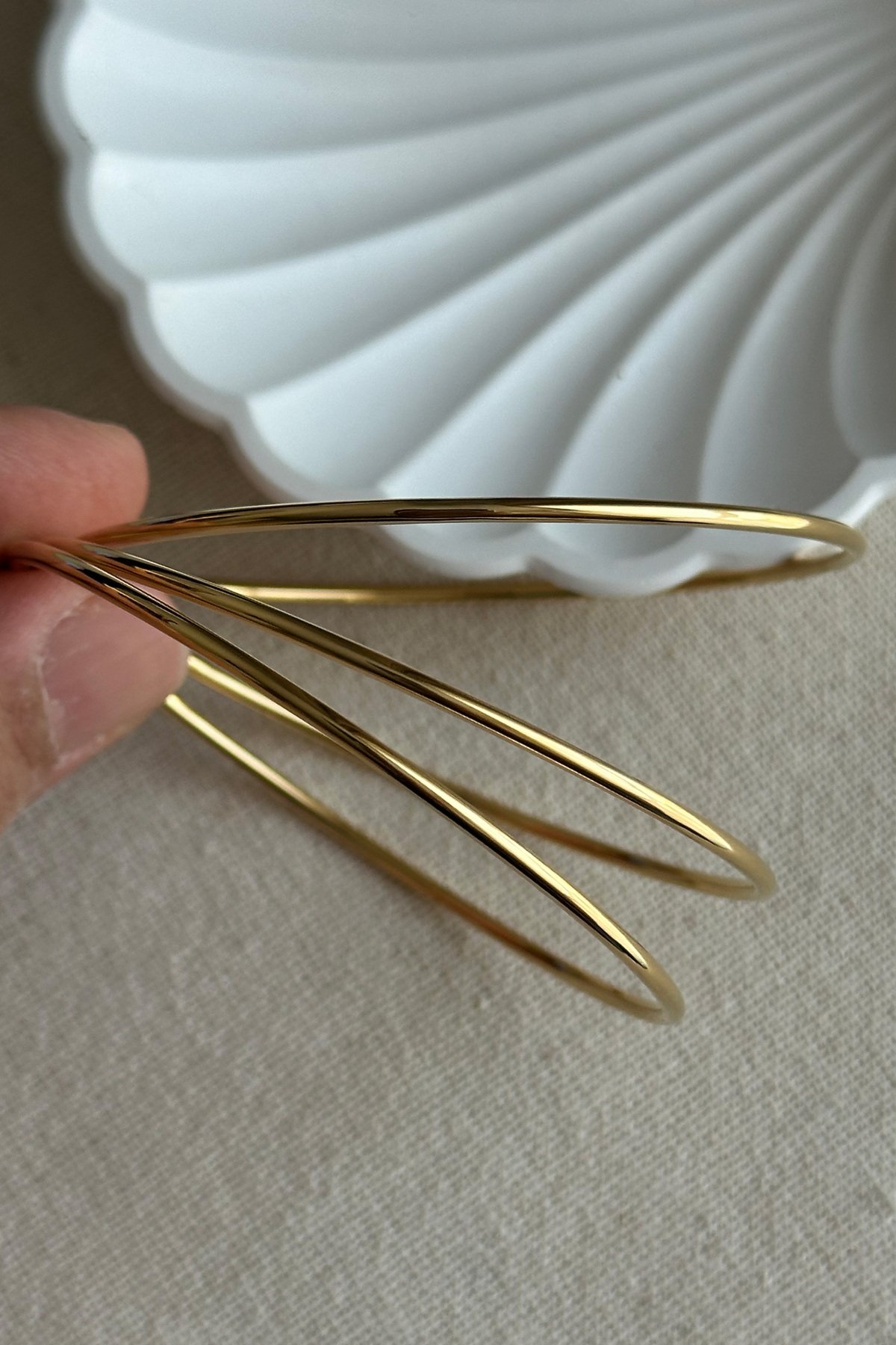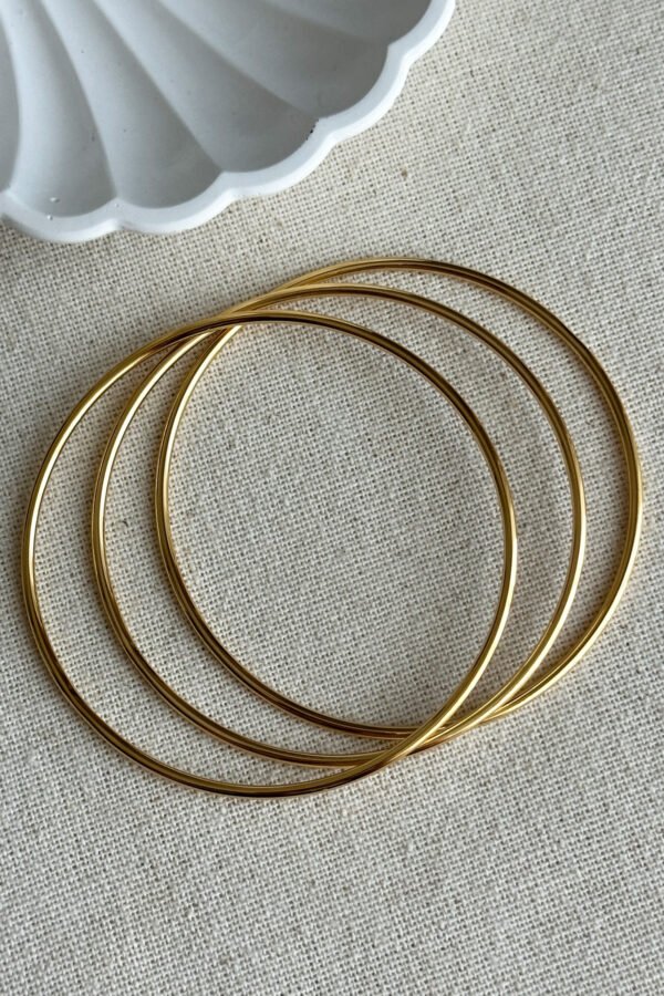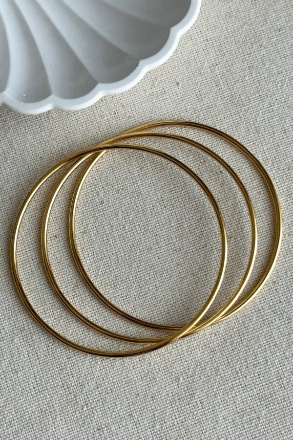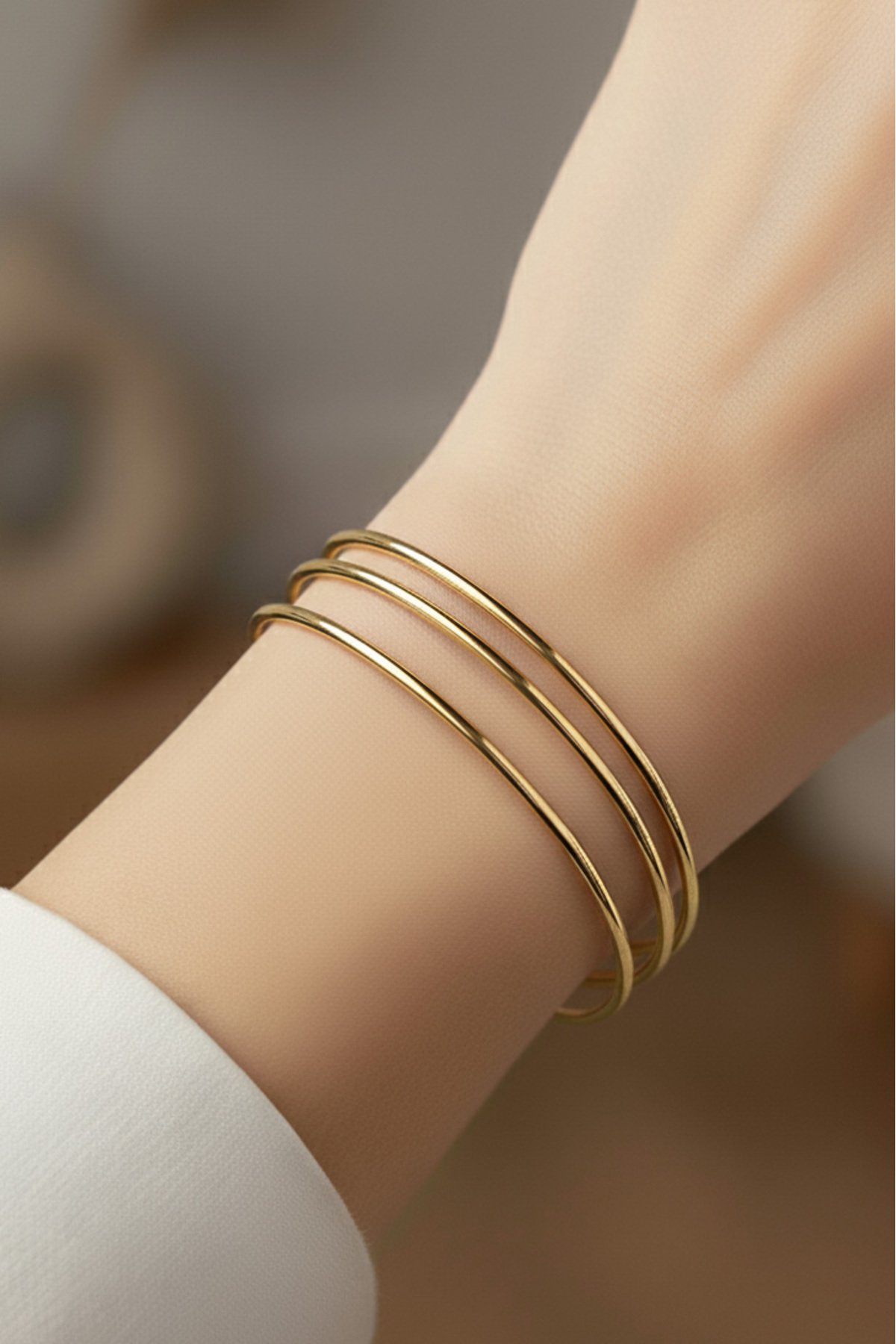 Çelik 22K 3’lü Oval Kadın Bilezik 6,5 cm Çap 20 cm Altın Renkli Kadın Bilezik