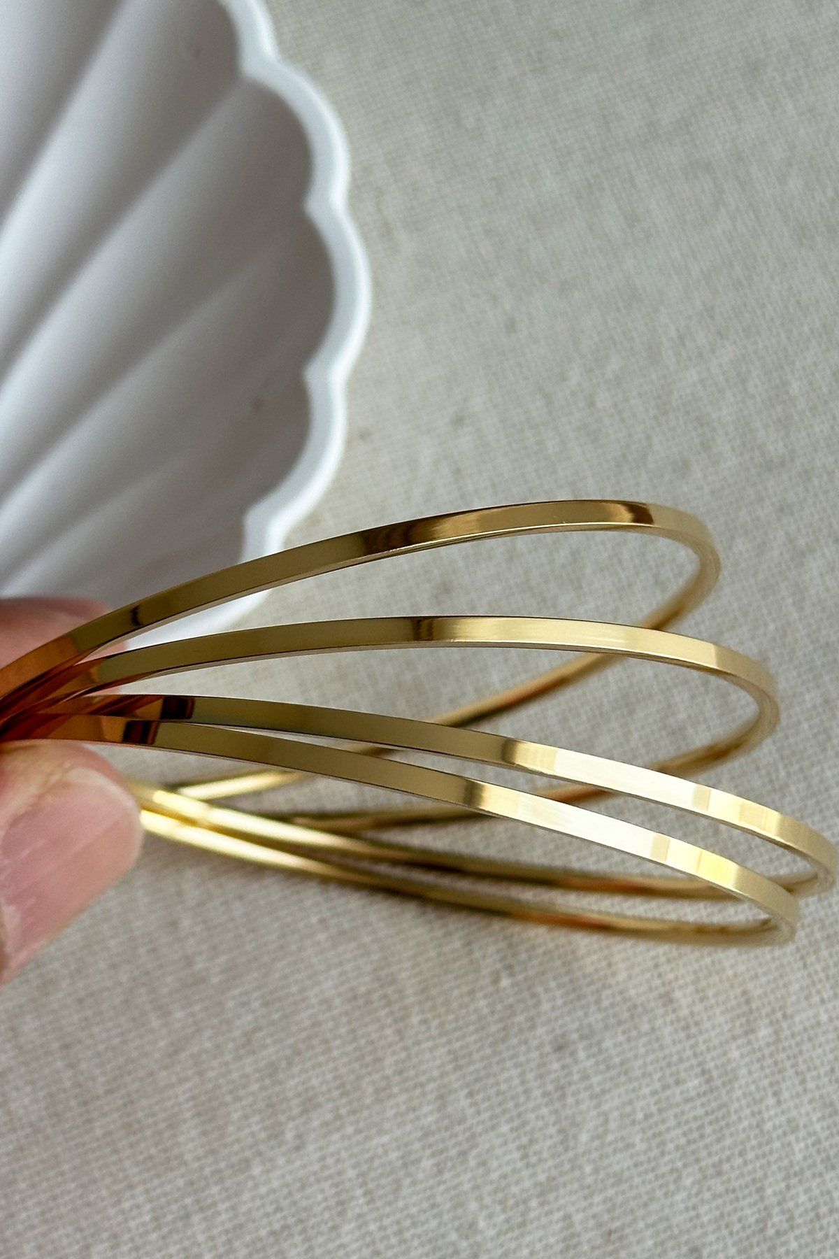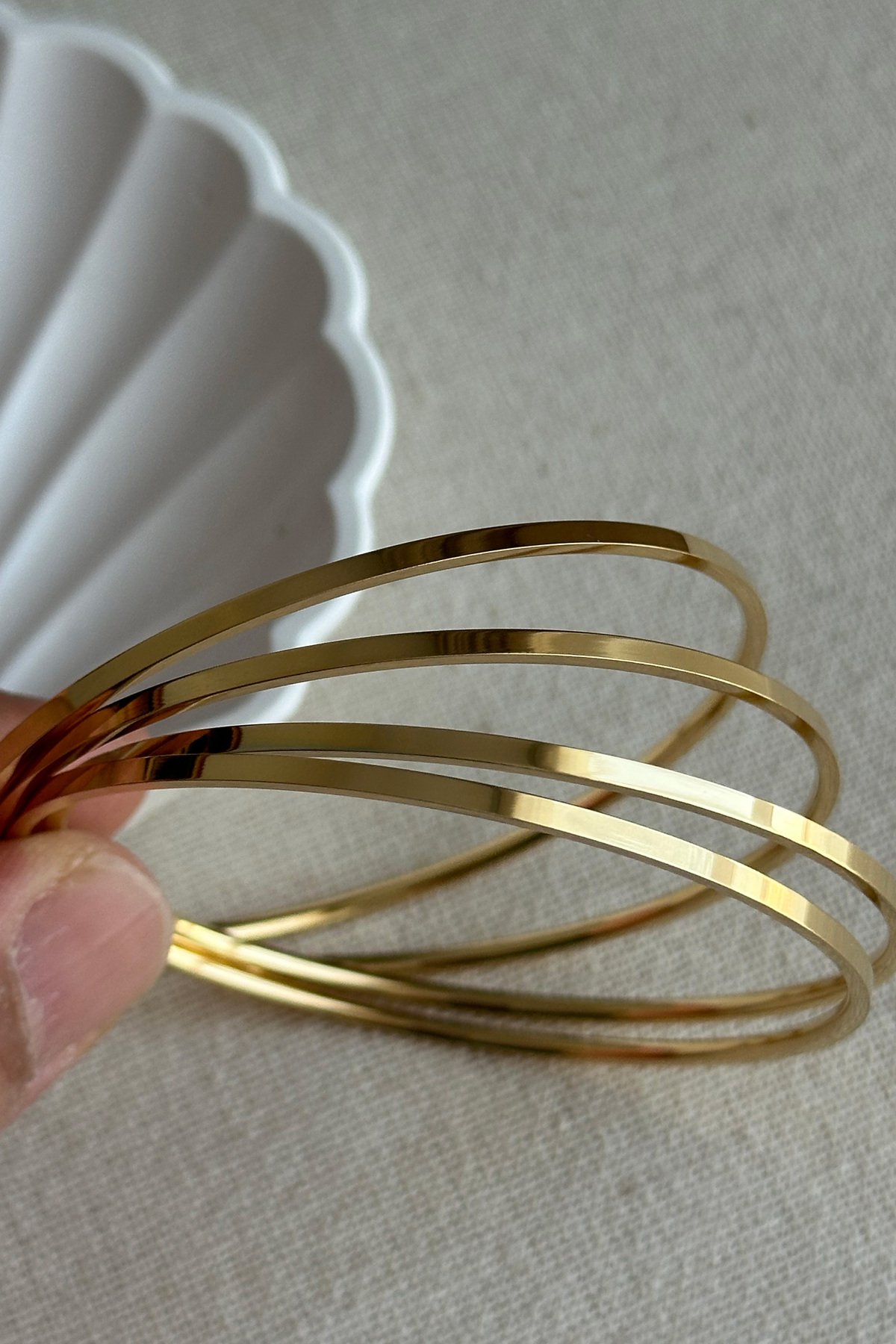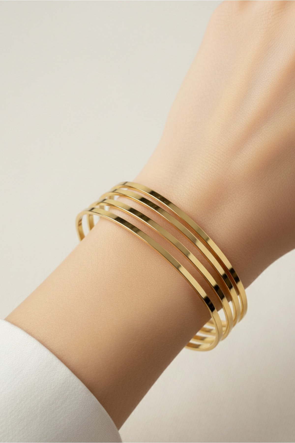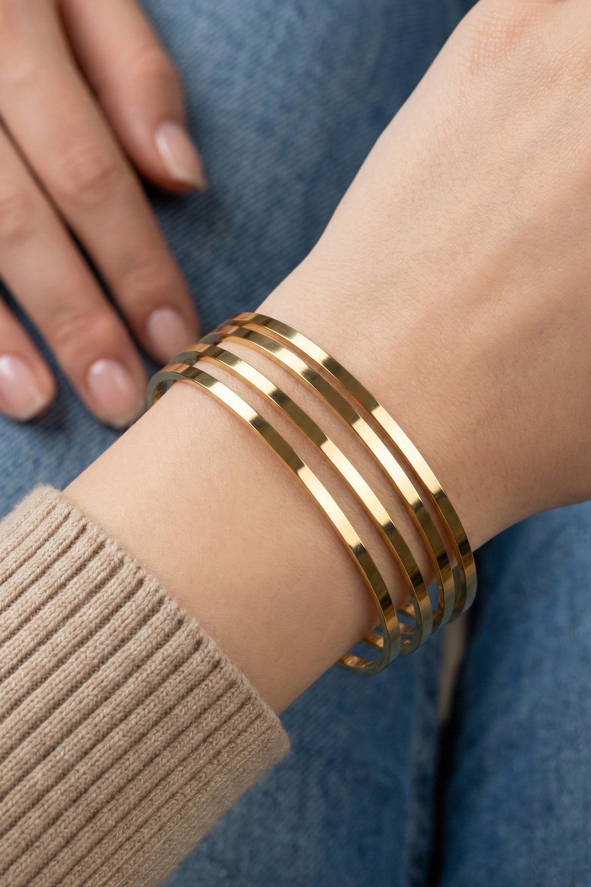 Çelik 22K 4’lü Köşeli Kadın Bilezik Çap 6 cm 18 cm Çevre Altın Renkli Kadın Bilezik
