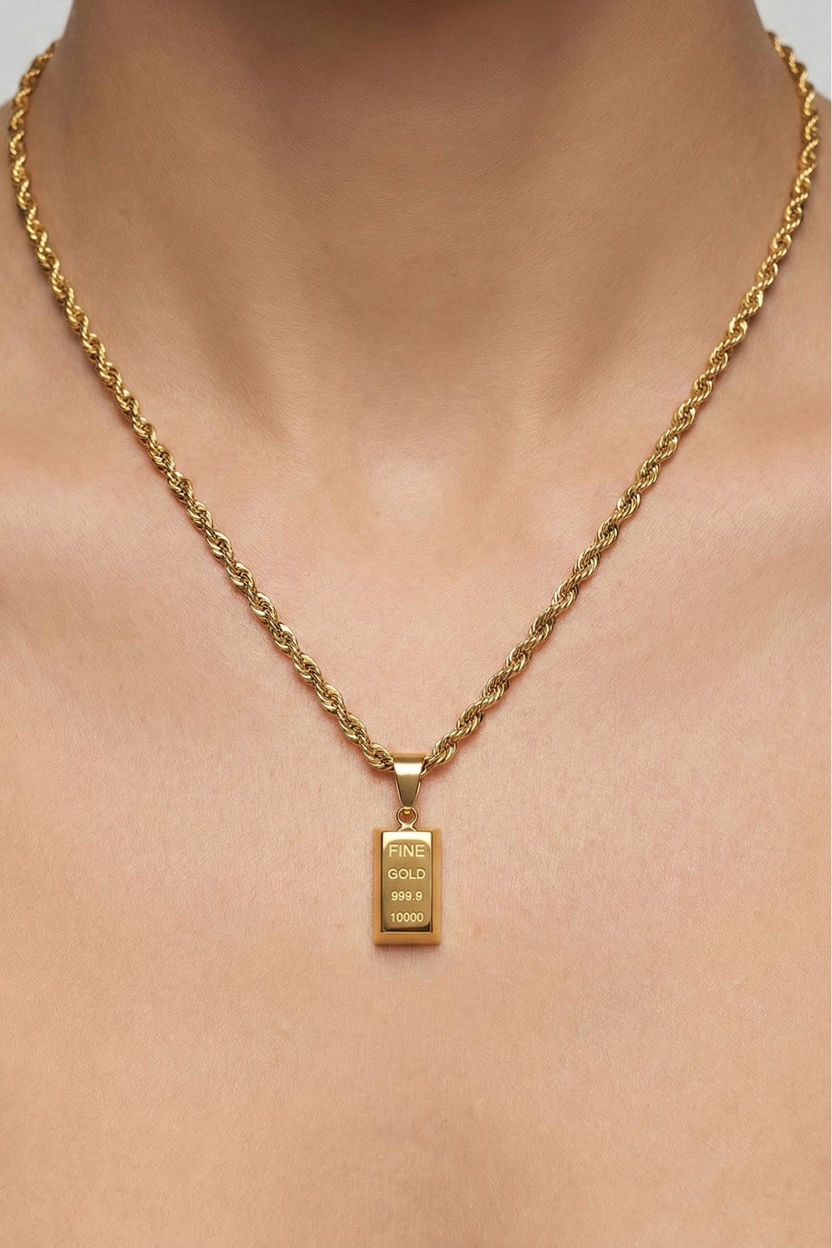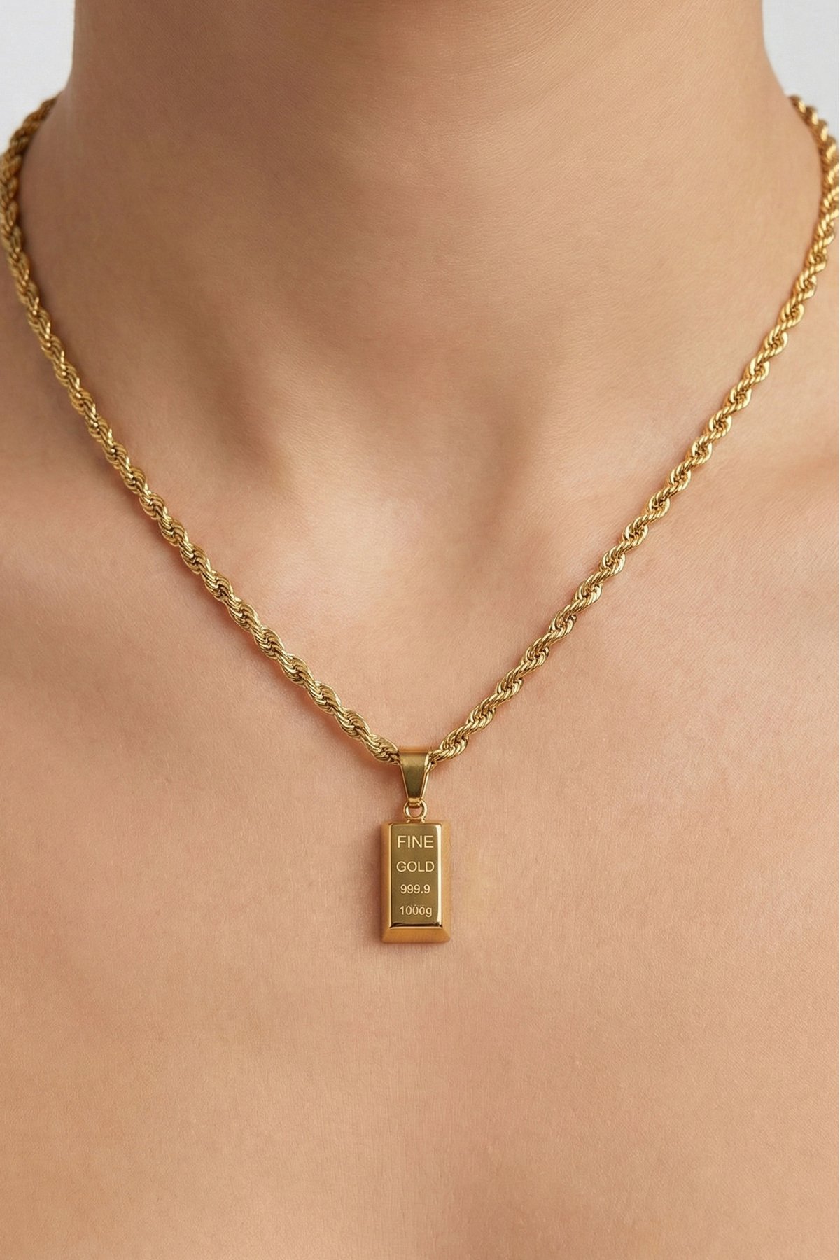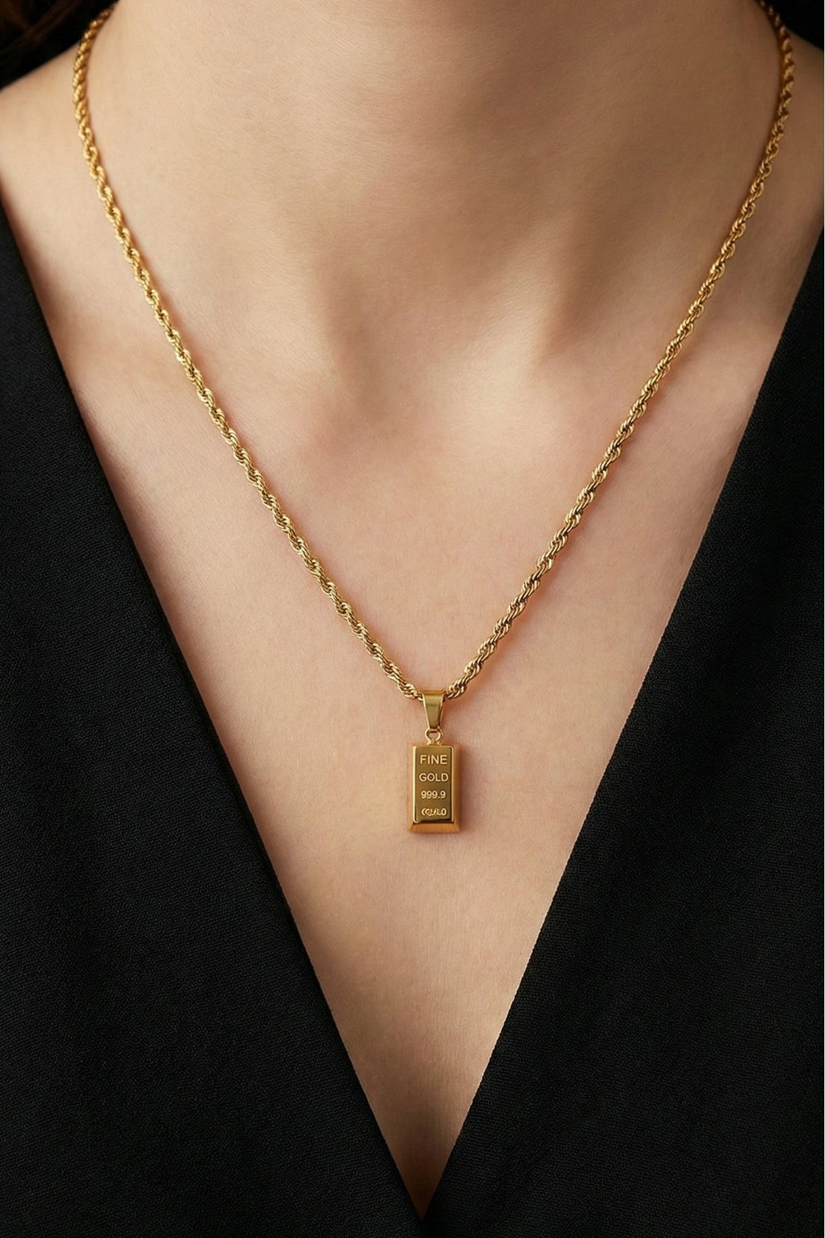 Çelik 22K Külçe Alttın Uçlu Kolye 40+5 cm | Altın Renkli Kararmaz Takı Kadın Çelik Kolye