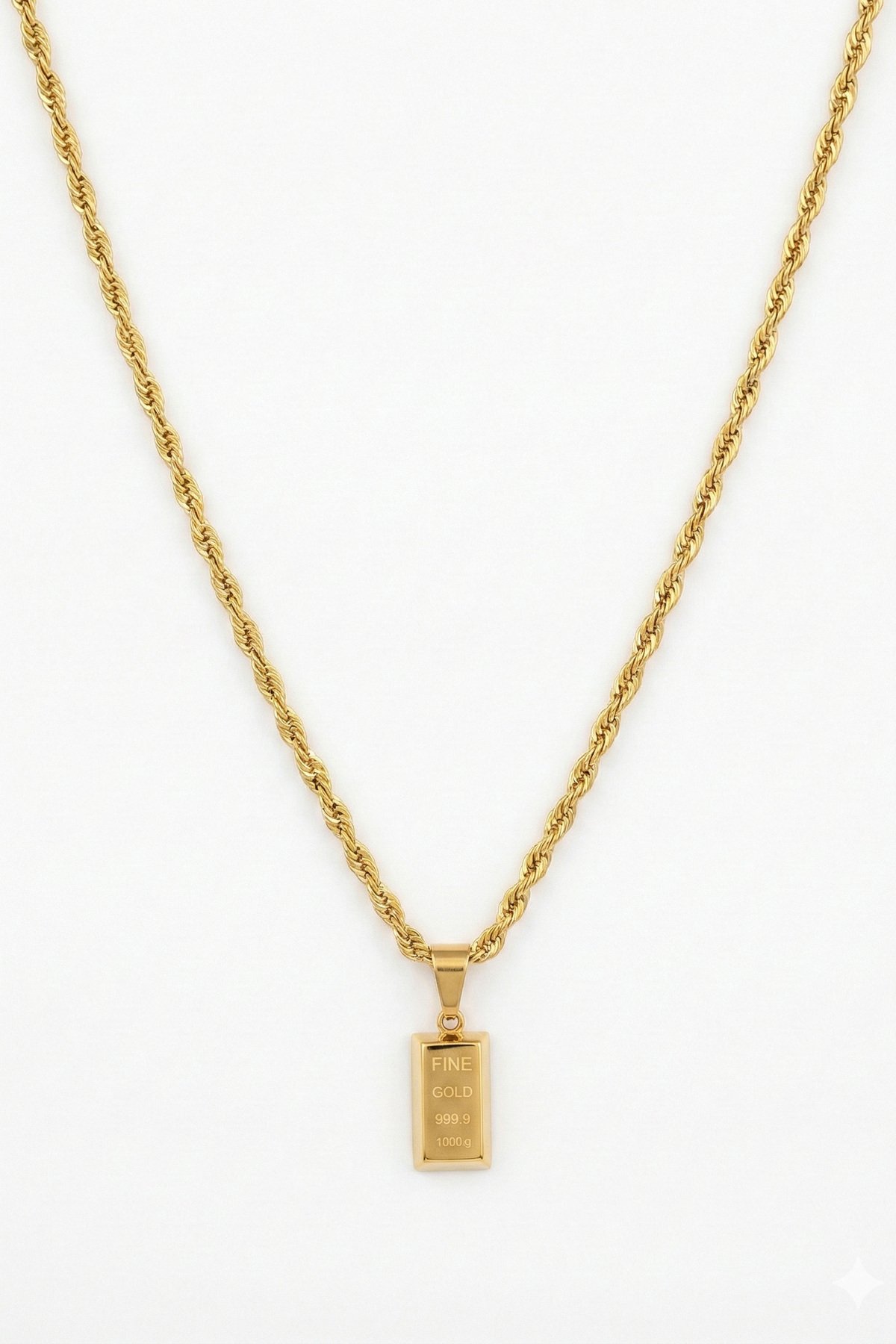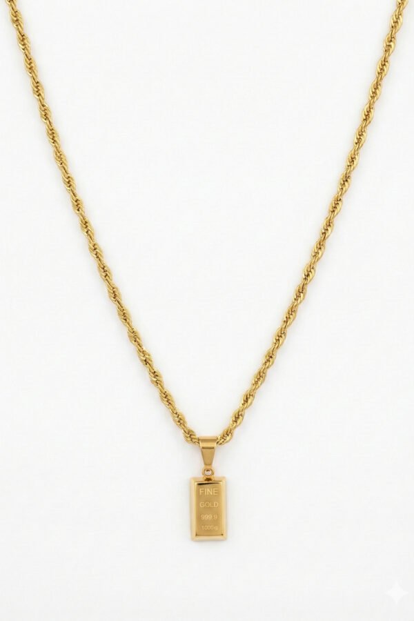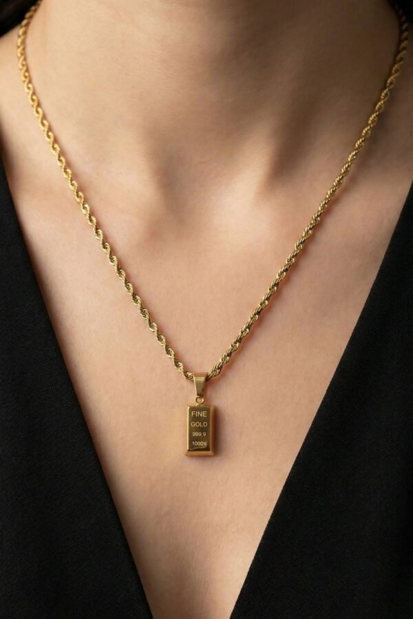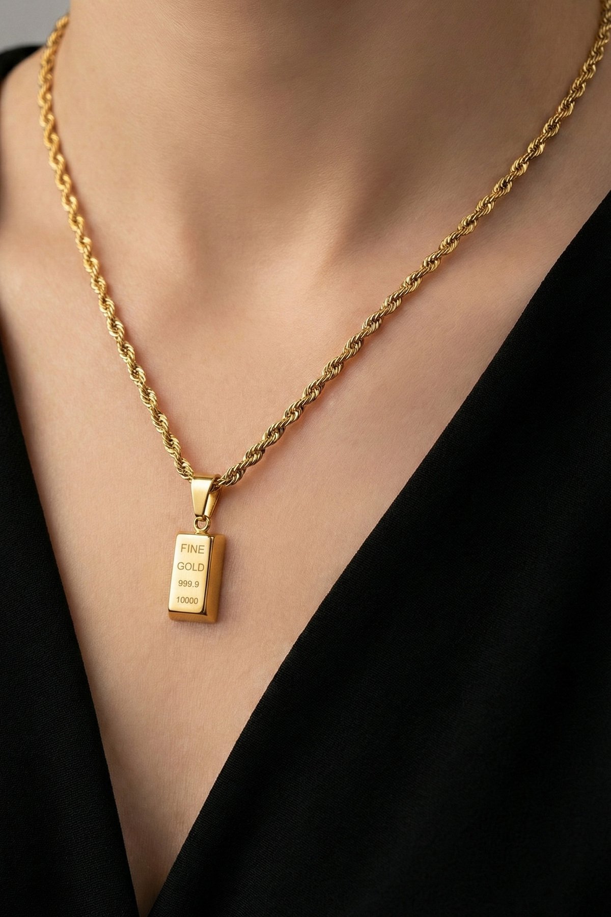 Çelik 22K Külçe Alttın Uçlu Kolye 40+5 cm | Altın Renkli Kararmaz Takı Kadın Çelik Kolye