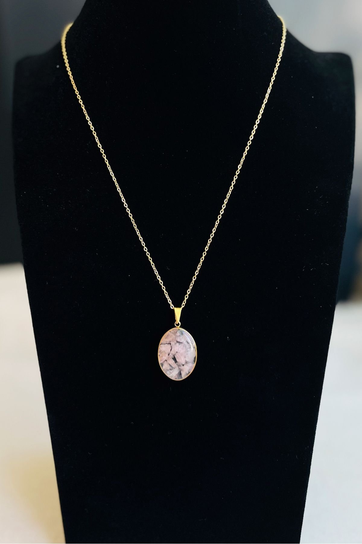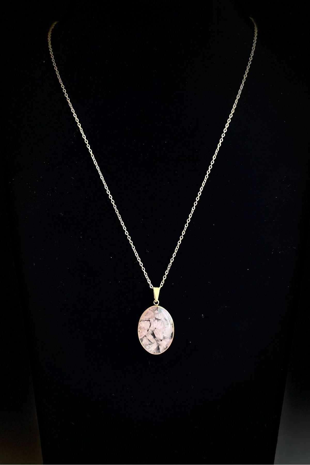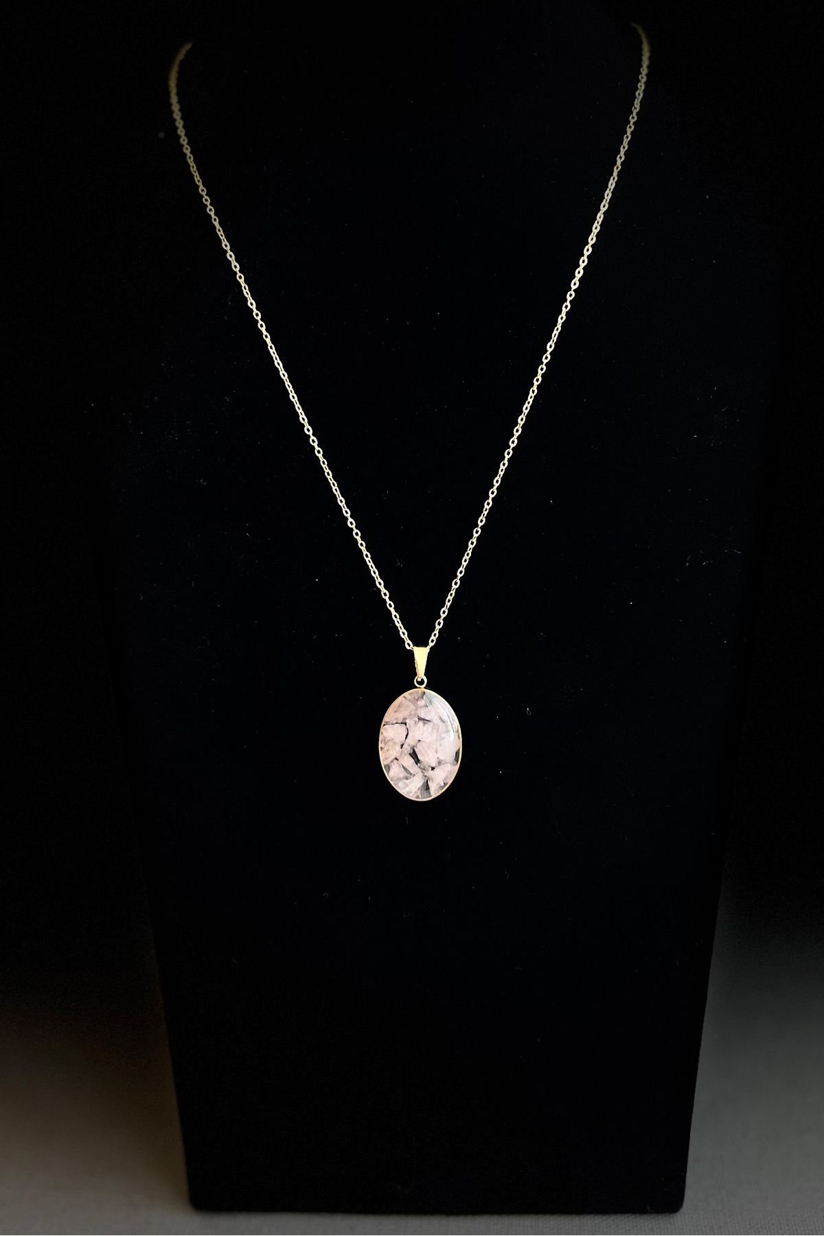 Çelik Doğaltaş Kolye Altın Renkli Kararmaz Zincir Kadın Kolye 40+ 5 cm