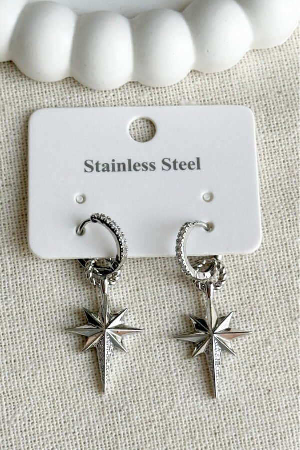 Çelik Taşlı Kutup Yıldızı Klipsli Kadın Küpe Kararmaz Kadın Takı Çelik Küpe