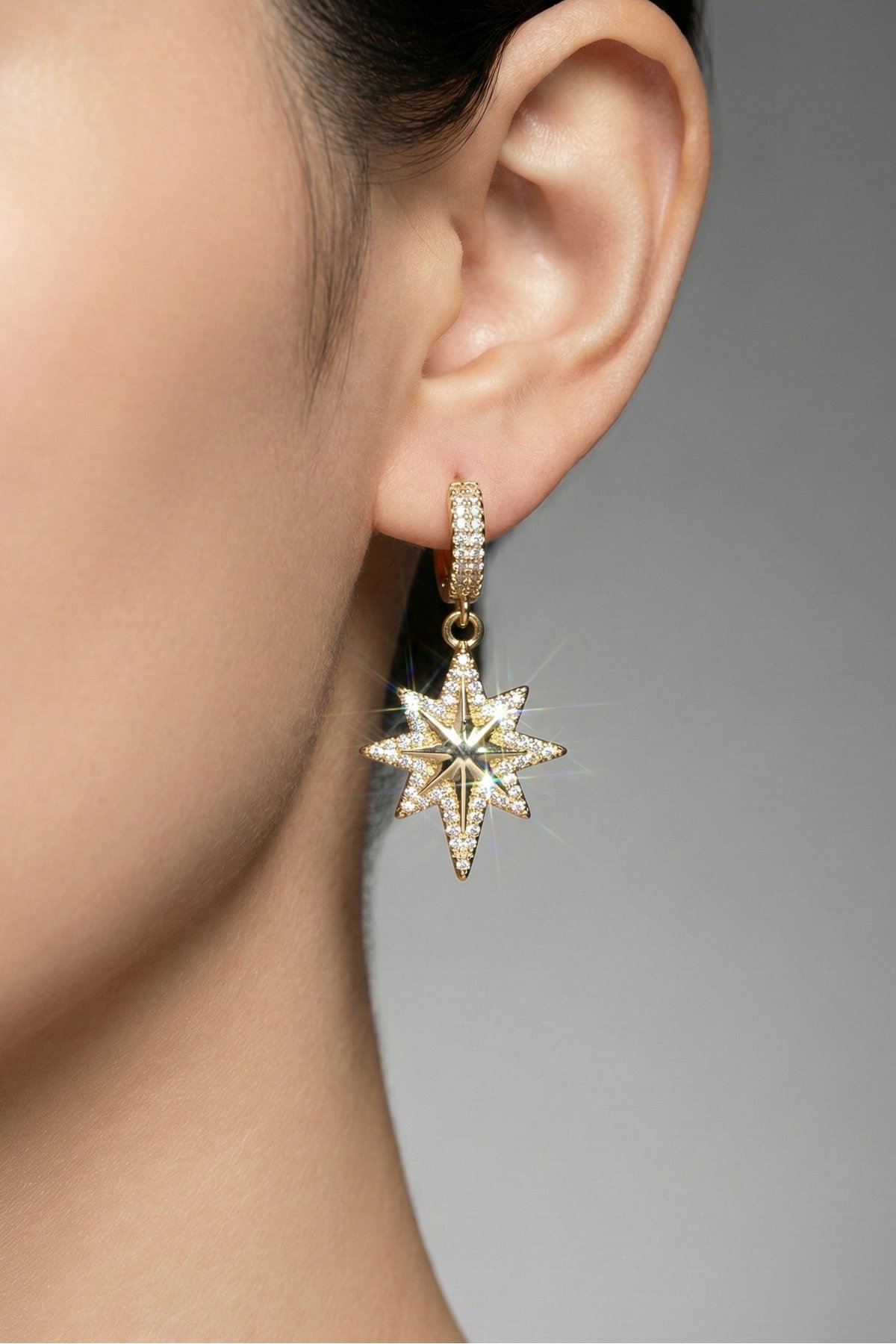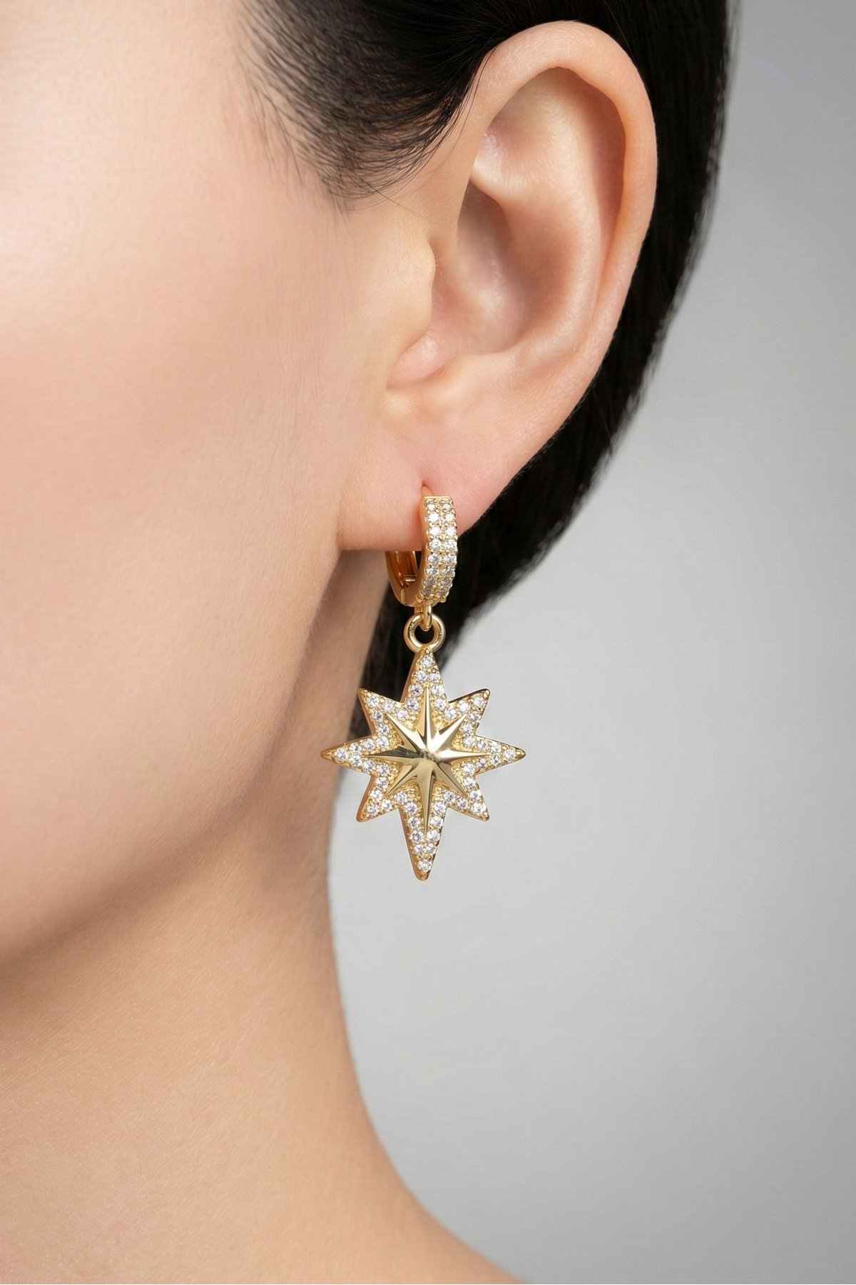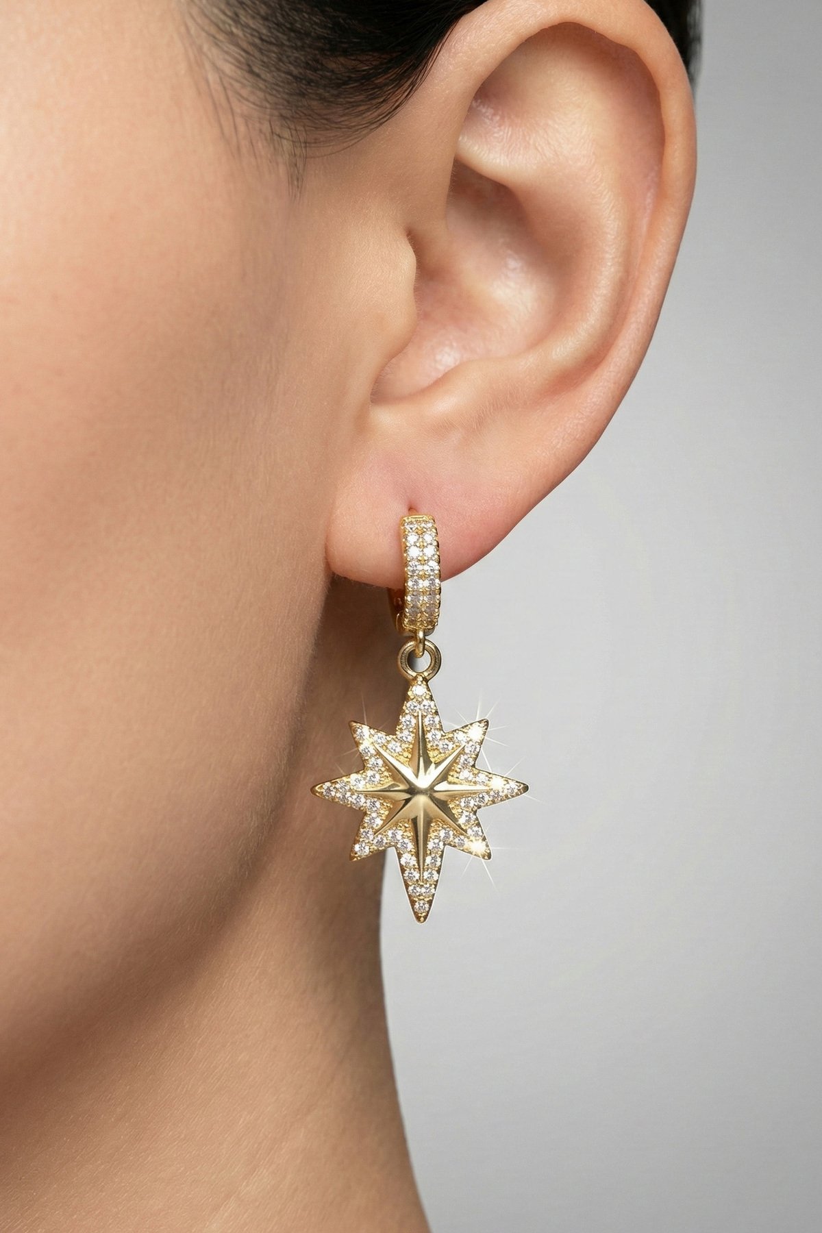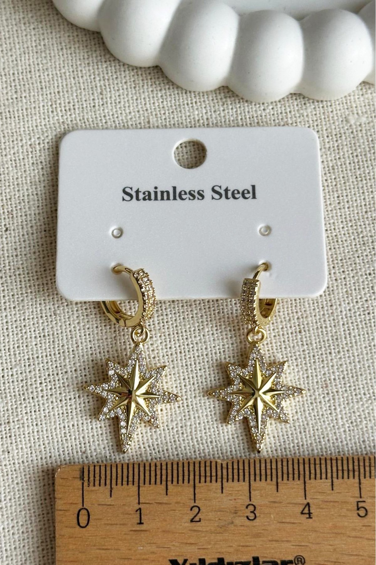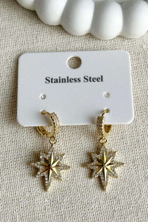 Çelik Taşlı Kuyup Yıldızı Taşlı Klipsli Kadın Küpe Kararmaz Kadın Takı Çelik Küpe