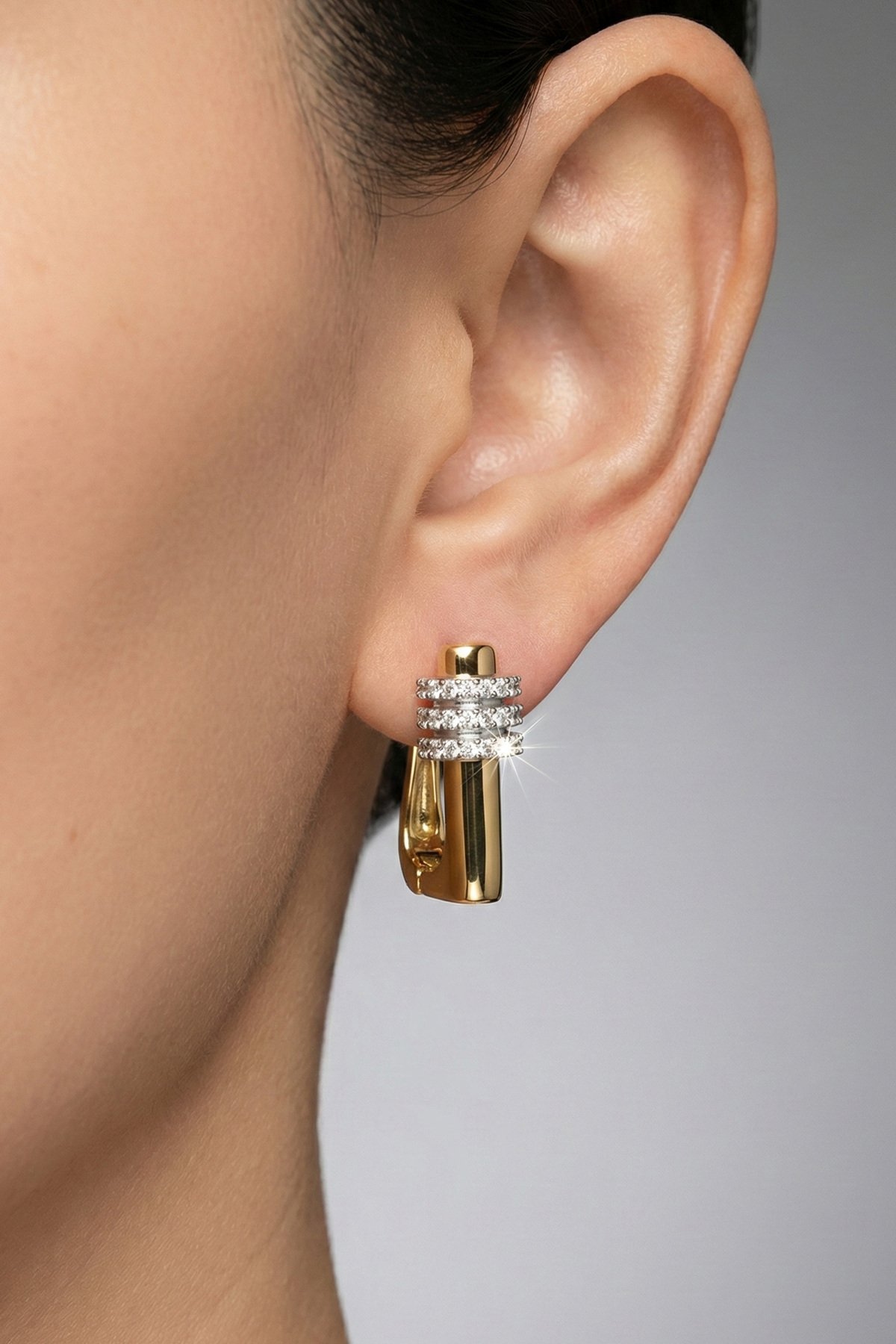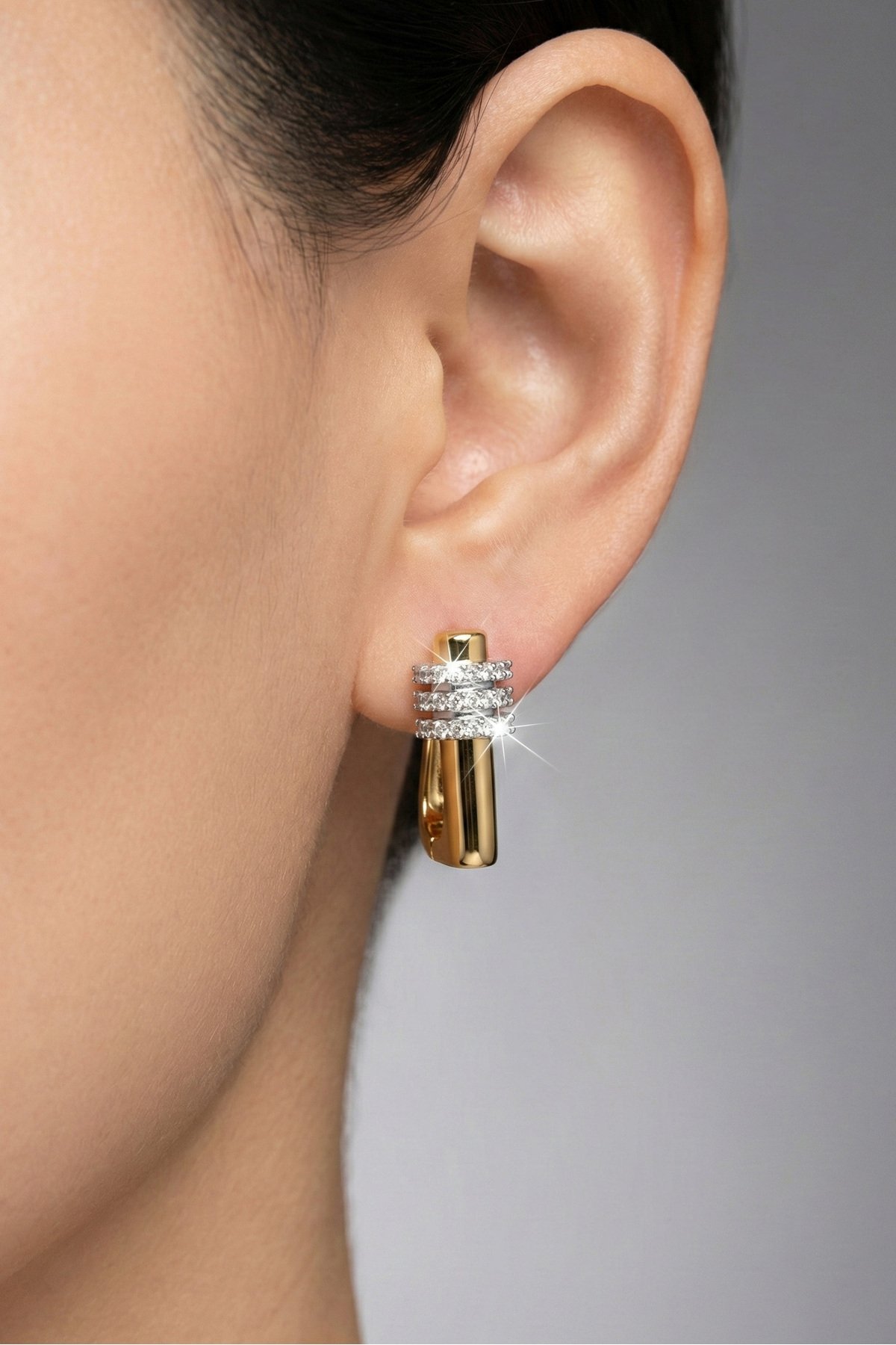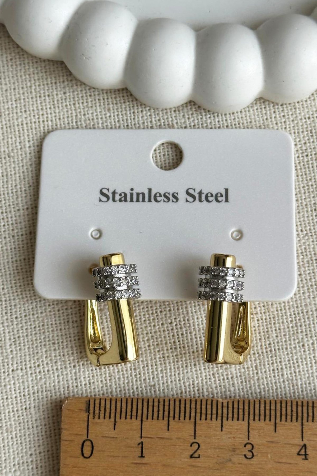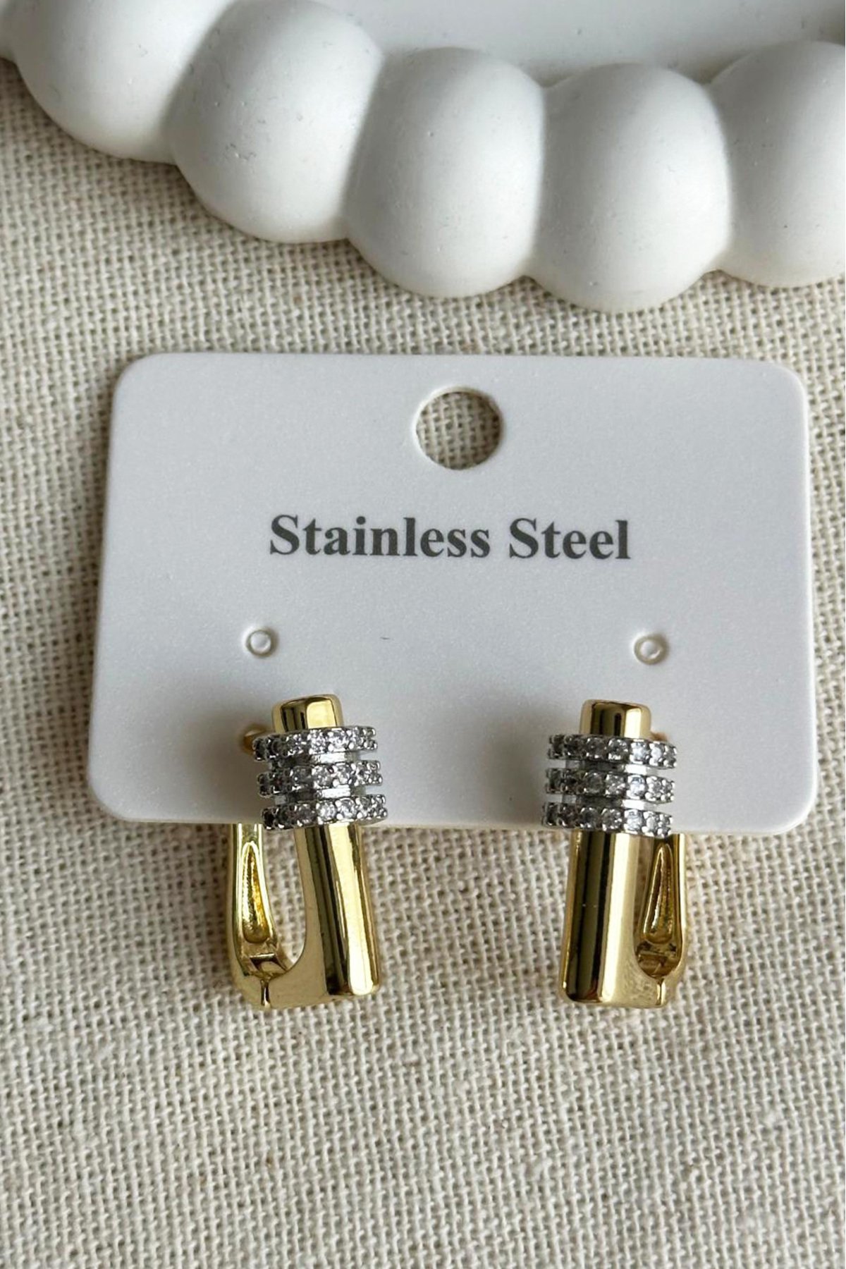 Çelik Taşlı U Klipsli Kadın Küpe Kararmaz Kadın Takı Çelik Küpe