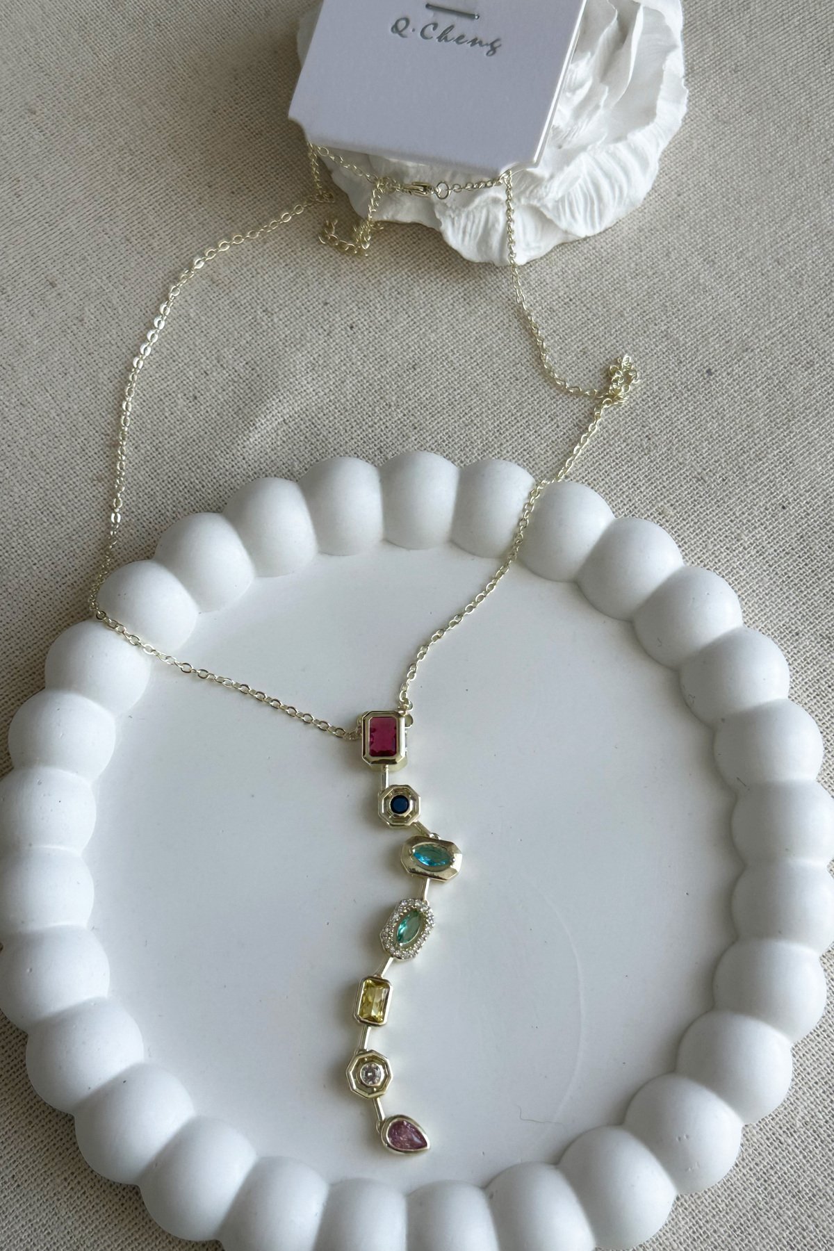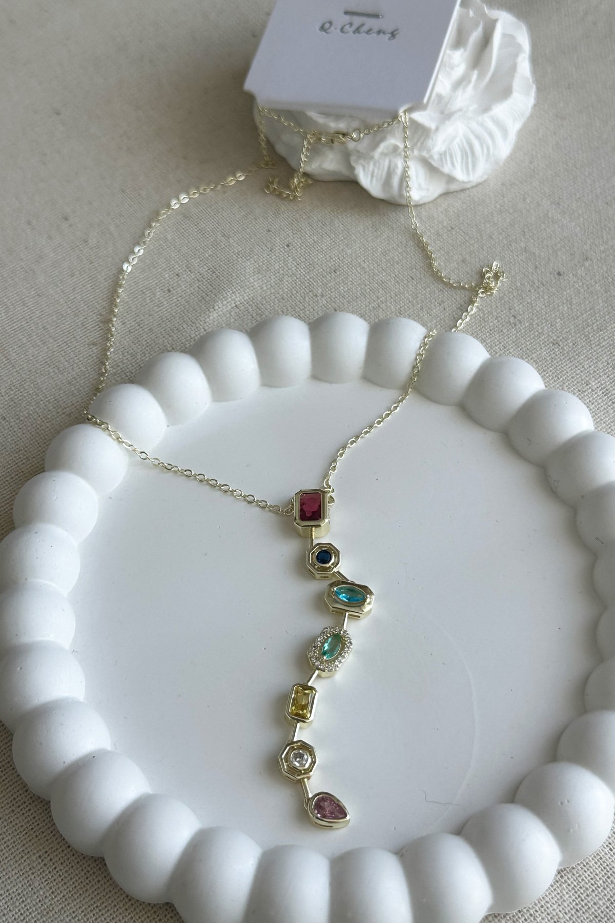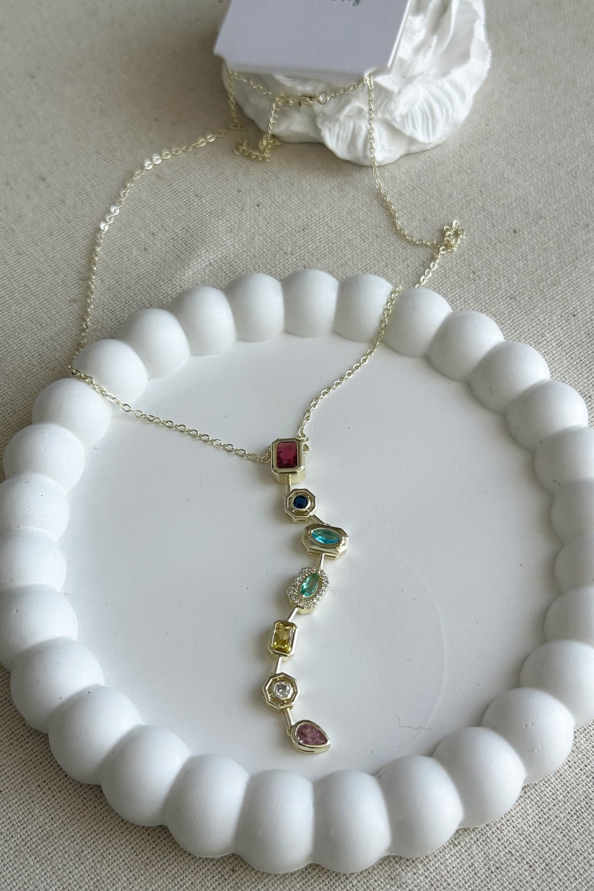 Cheng 14K Renkli Taşlı Kırmızı Y Zincir Kolye 50 cm | Altın Renkli Kararmaz Kadın Takı Pirinç Kolye