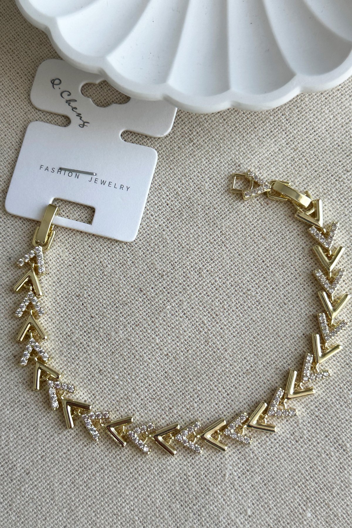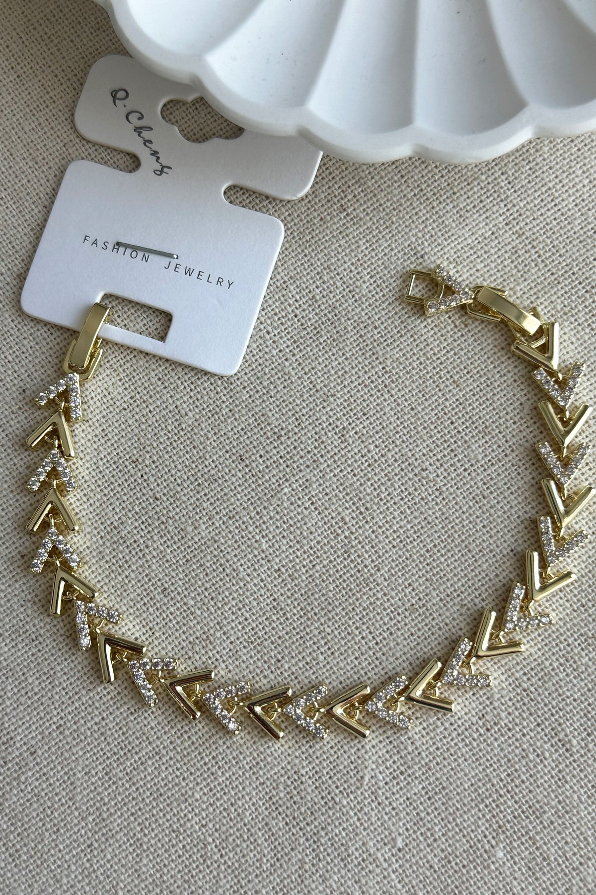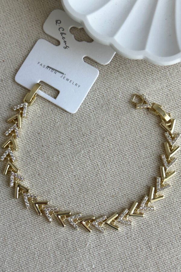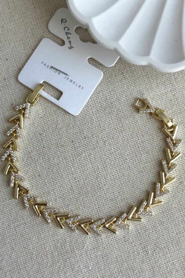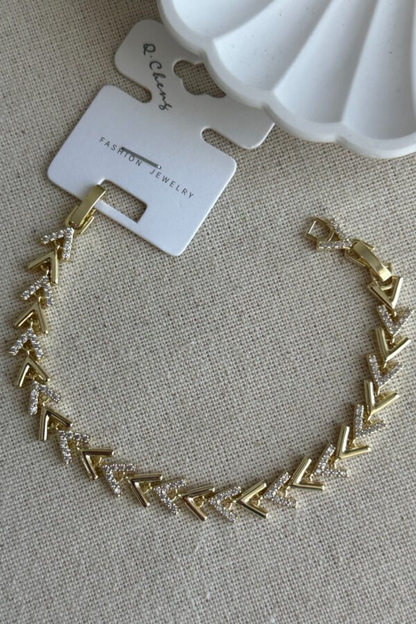 Cheng 14K Taşlı V Zincir Kadın Bileklik – 16+2| Altın Renk Kararmaz Pirinç Takı