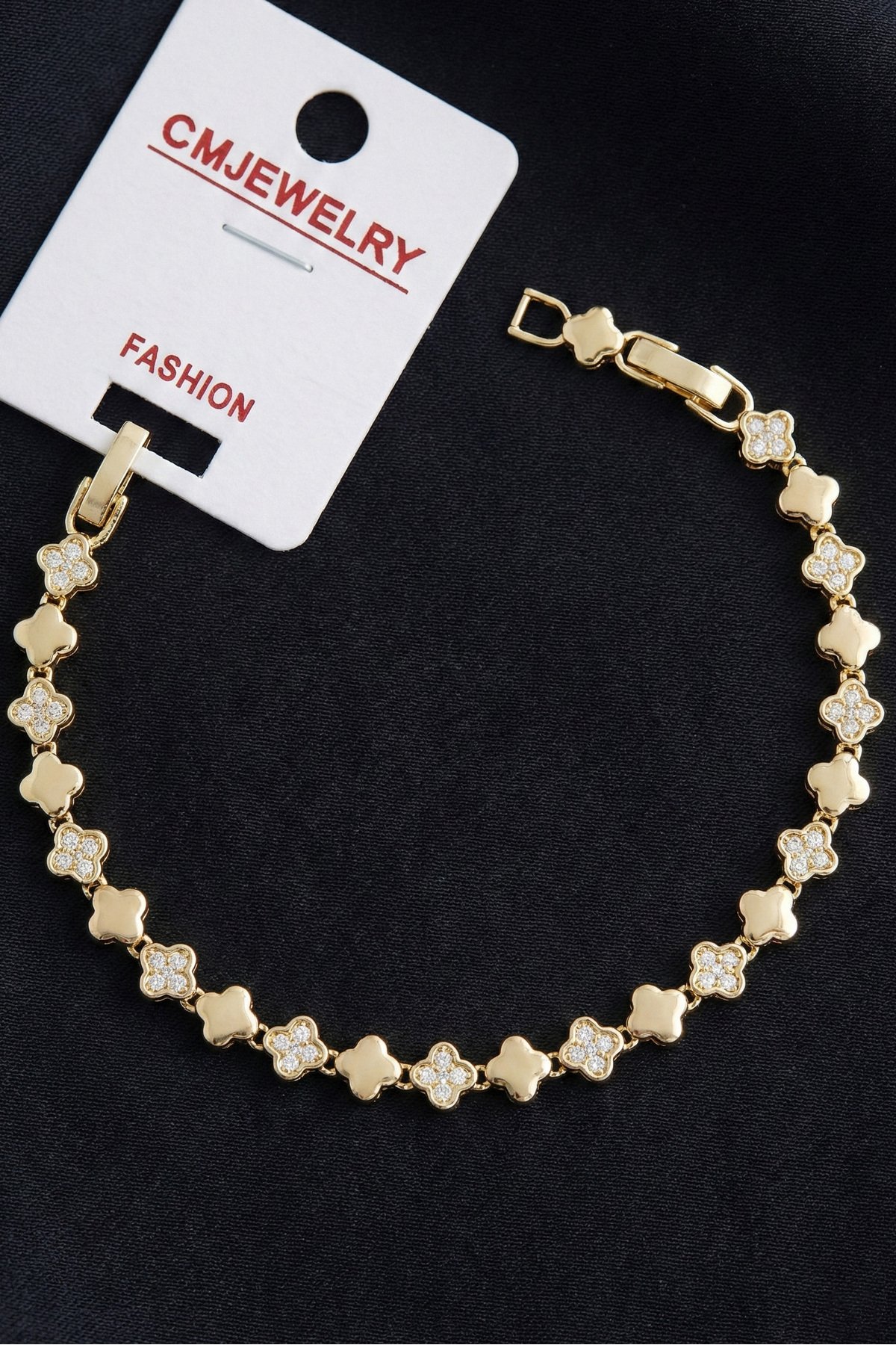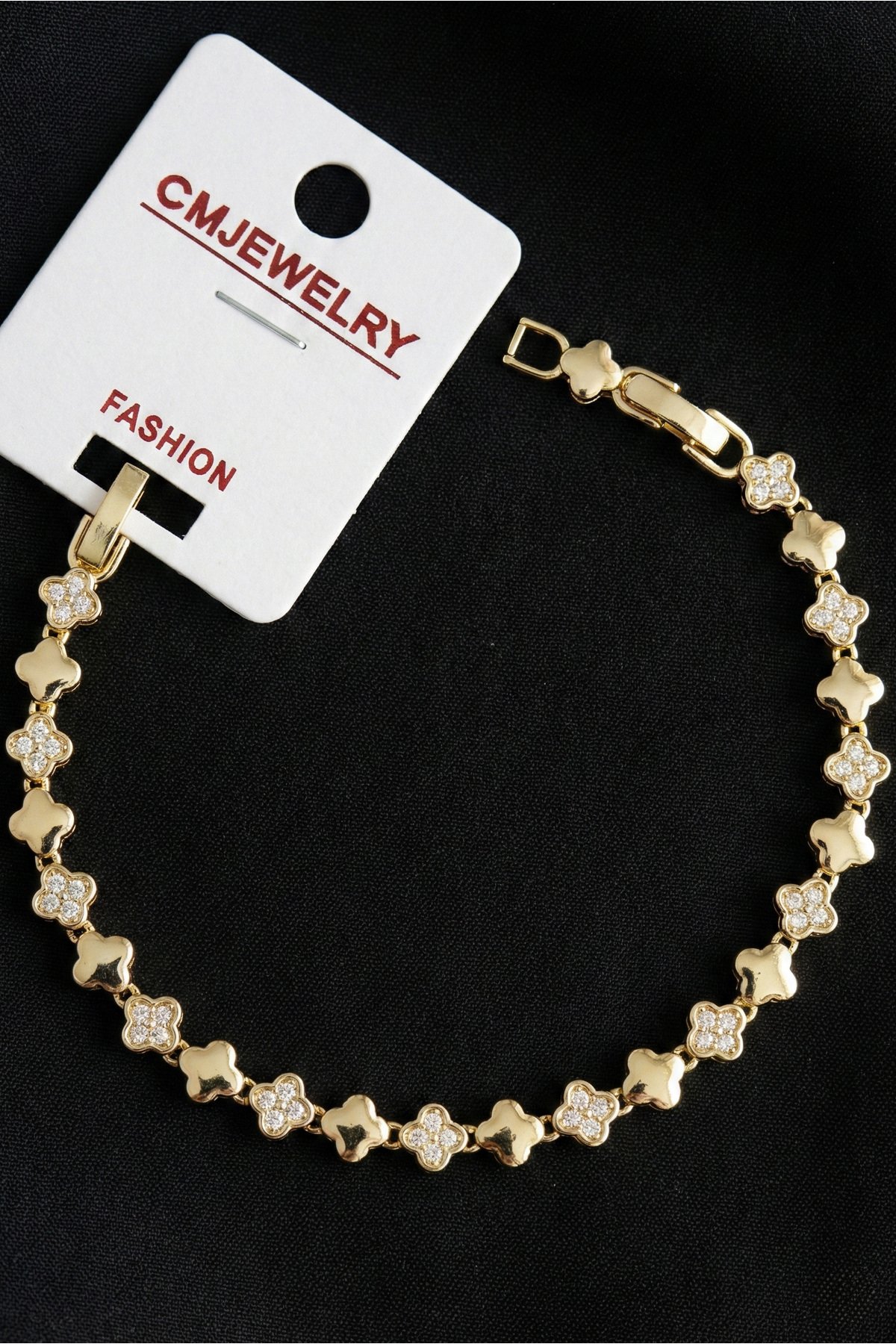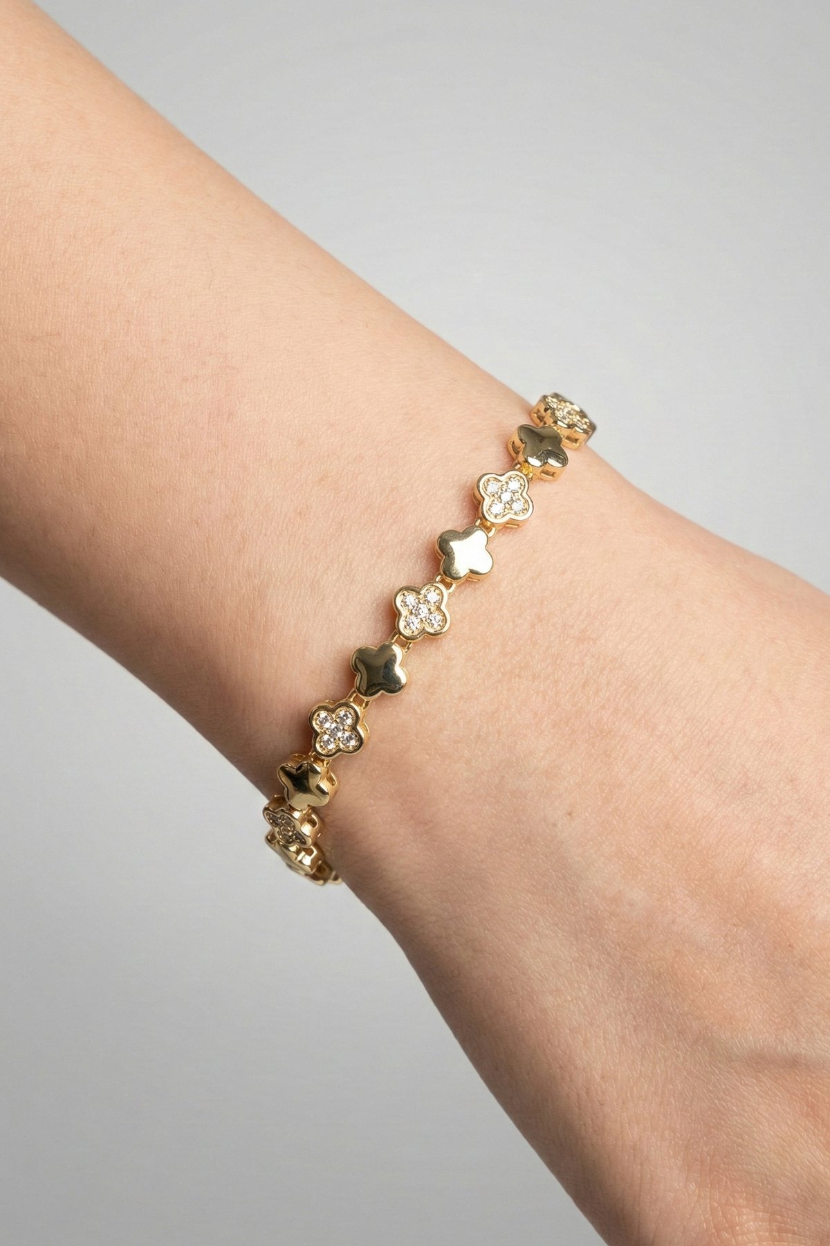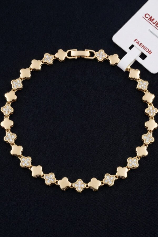 CM 14K Çiçekli Taşlı Yıldızlı Kadın Bileklik – 17+2 cm | Altın Renk Kararmaz CM Takı