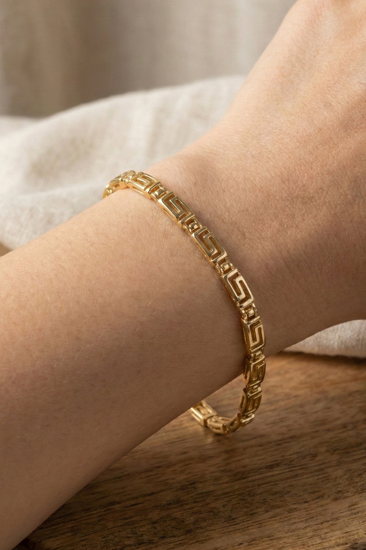 CM 14K Grek Düz Model Kadın Bileklik – 17+2 cm | Altın Renk Kararmaz CM Takı