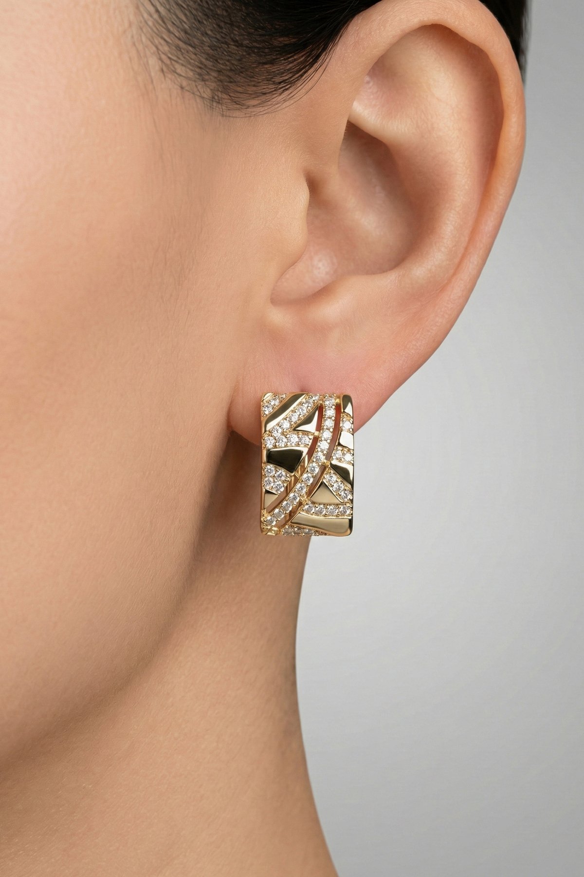Hafif yapısı ve göz alıcı ışıltısıyla gün boyu konforlu bir kullanım sunan bu özel küpe, her tarza hitap eder. Kararmaya karşı ekstra dayanıklı yapısı ile uzun ömürlüdür. Kilit mekanizması güvenli ve sağlamdır, kulağınızda ağırlık yapmaz. Modacaprea kalitesiyle sunulan bu model, takı kutunuzun en sevilen parçası olmaya aday