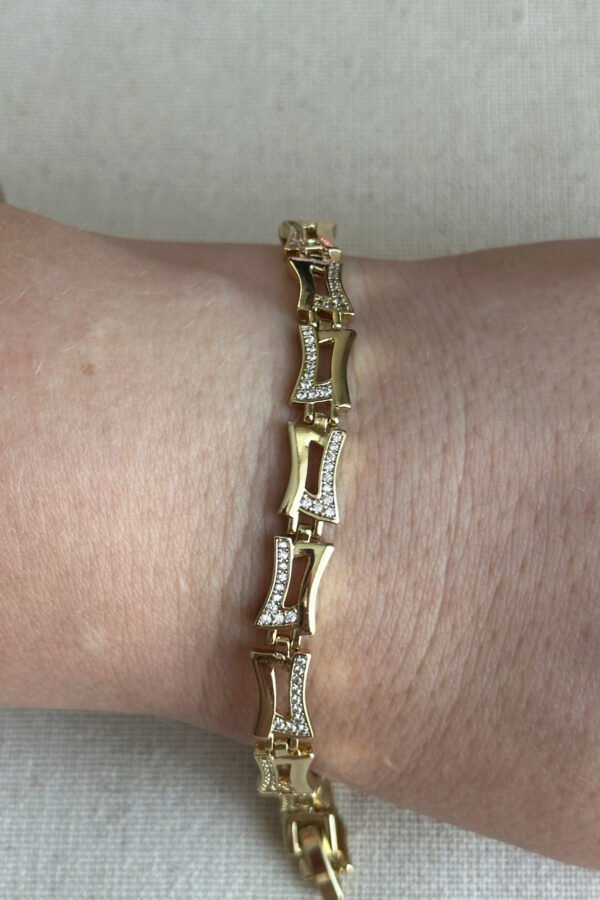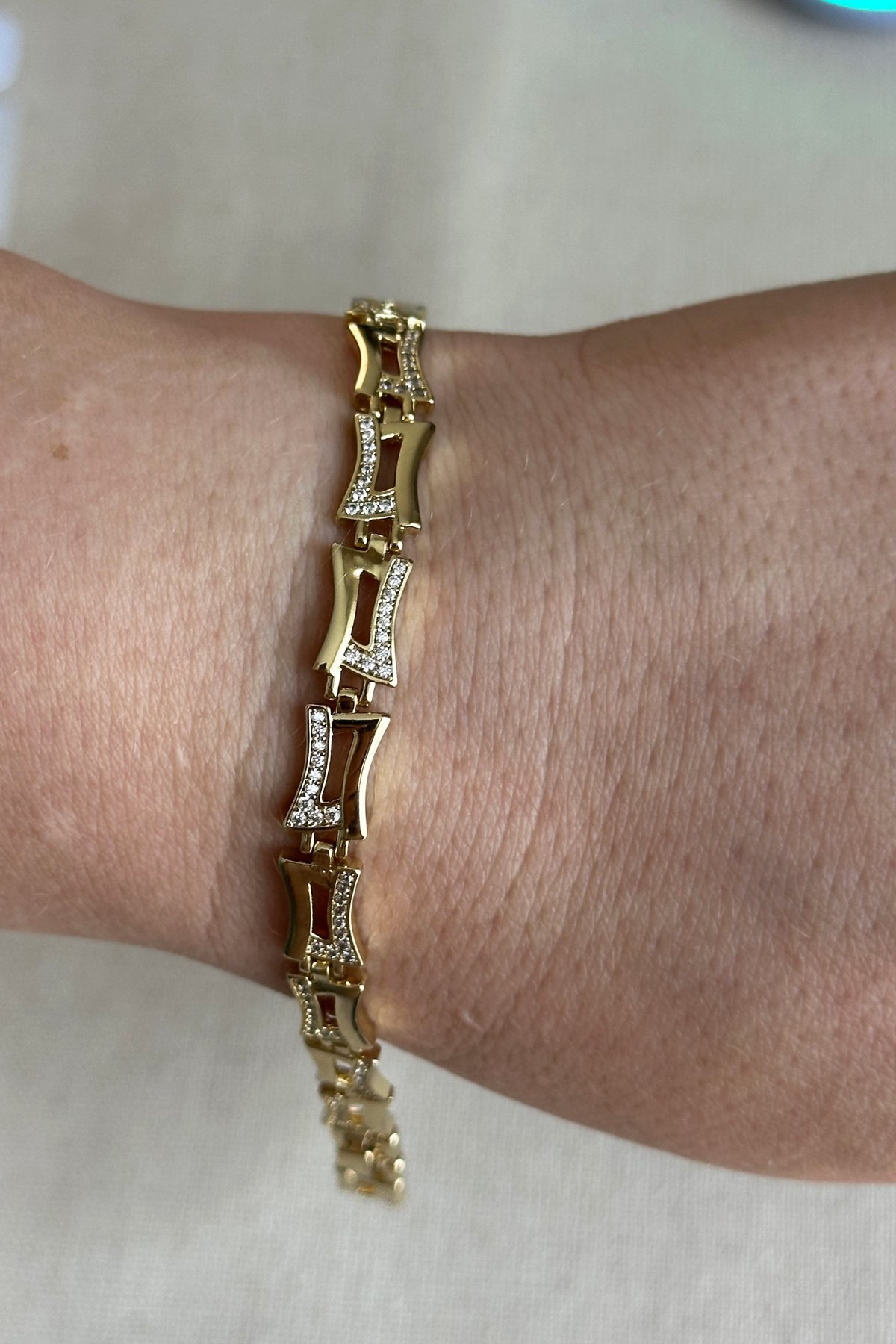 Şıklığınızı tamamlayacak bu özel tasarım bileklik, zarafeti ve kaliteyi bir araya getiriyor. Anti-alerjik yapısı ve kararma yapmayan özel kaplaması sayesinde günlük kullanımda güvenle tercih edebilirsiniz. Ürünümüz parfüm ve krem gibi kimyasallardan uzak tutulduğu sürece ışıltısını yıllarca korur. Her bileğe uygun ölçüsüyle hem kendiniz hem de sevdikleriniz için mükemmel bir hediye seçeneğidir