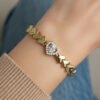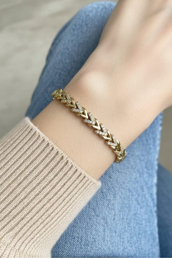 Şıklığınızı tamamlayacak bu özel tasarım bileklik, zarafeti ve kaliteyi bir araya getiriyor. Anti-alerjik yapısı ve kararma yapmayan özel kaplaması sayesinde günlük kullanımda güvenle tercih edebilirsiniz. Ürünümüz parfüm ve krem gibi kimyasallardan uzak tutulduğu sürece ışıltısını yıllarca korur. Her bileğe uygun ölçüsüyle hem kendiniz hem de sevdikleriniz için mükemmel bir hediye seçeneğidir