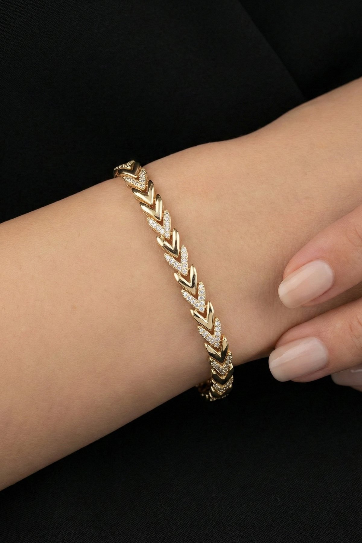 Xuping 14K 17+2cm V Kadın Bileklik Kadın Karamaz Bileklik V Bileklik