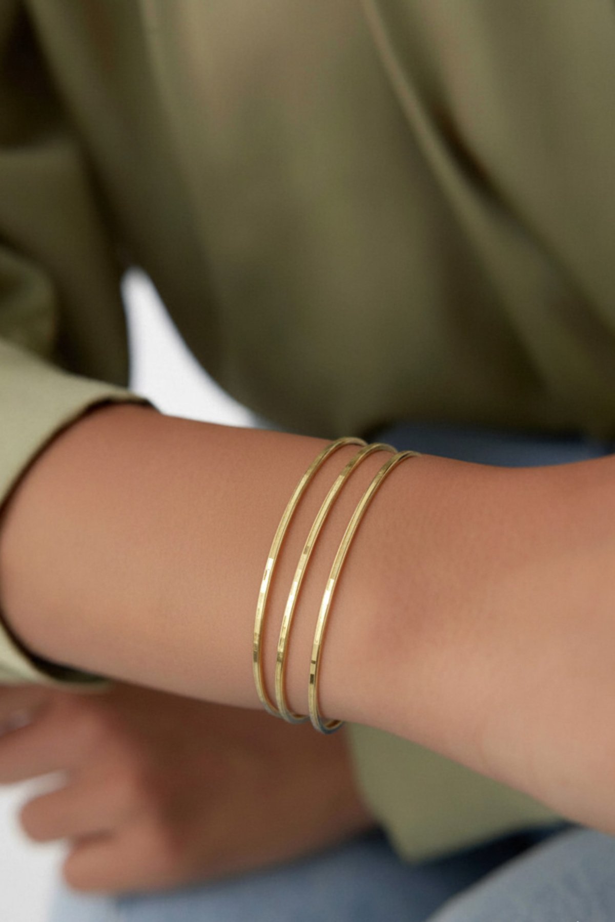 Xuping 14K Çizgili 3’lü 62 mm Çaplı Kadın Bilezik Altın Renkli Kadın Xupibg Bileklik