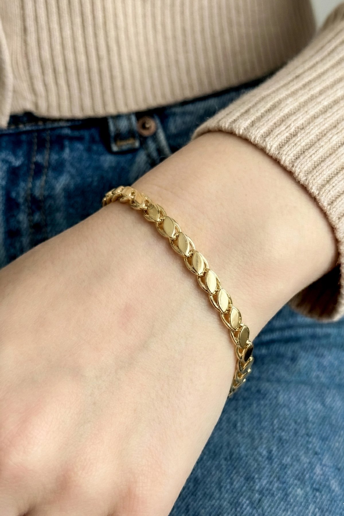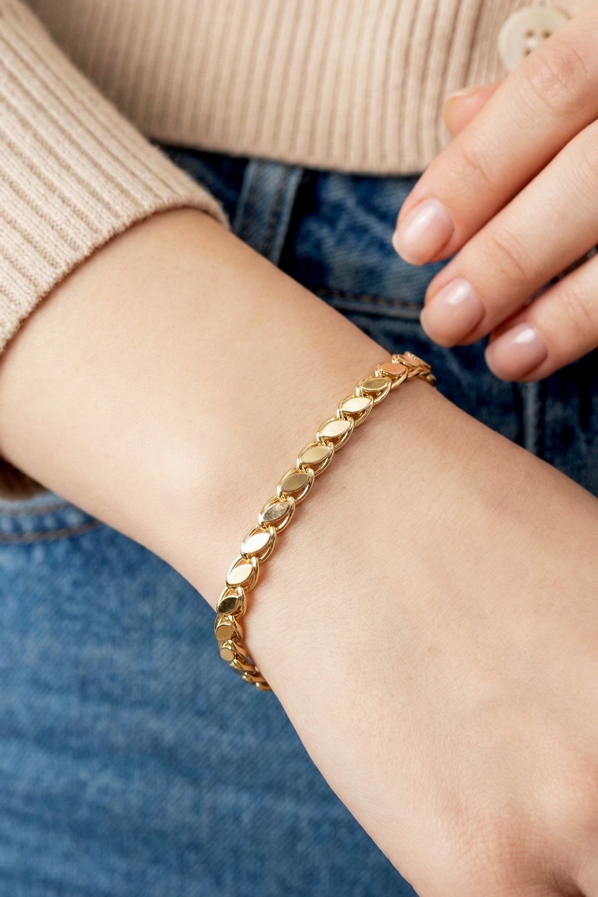 Xuping 14K Arpa Zincir Kadın Xuping Bileklik I 19 cm Altın Renkli Kadın Takı Bileklik