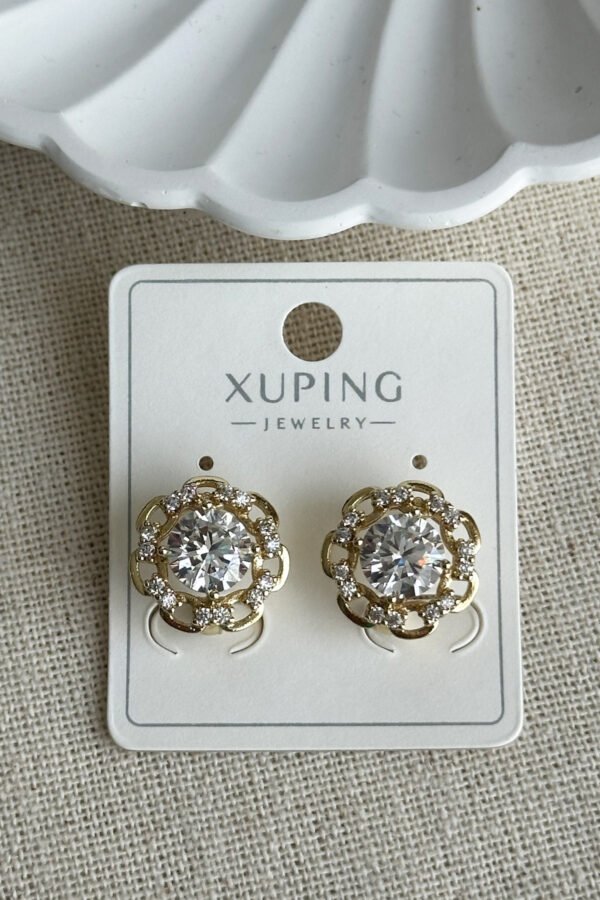 Xuping 14K Çiçekli Taşlı Klipsli Kadın Küpe Kararmaz Kadın Takı Xuping Küpe