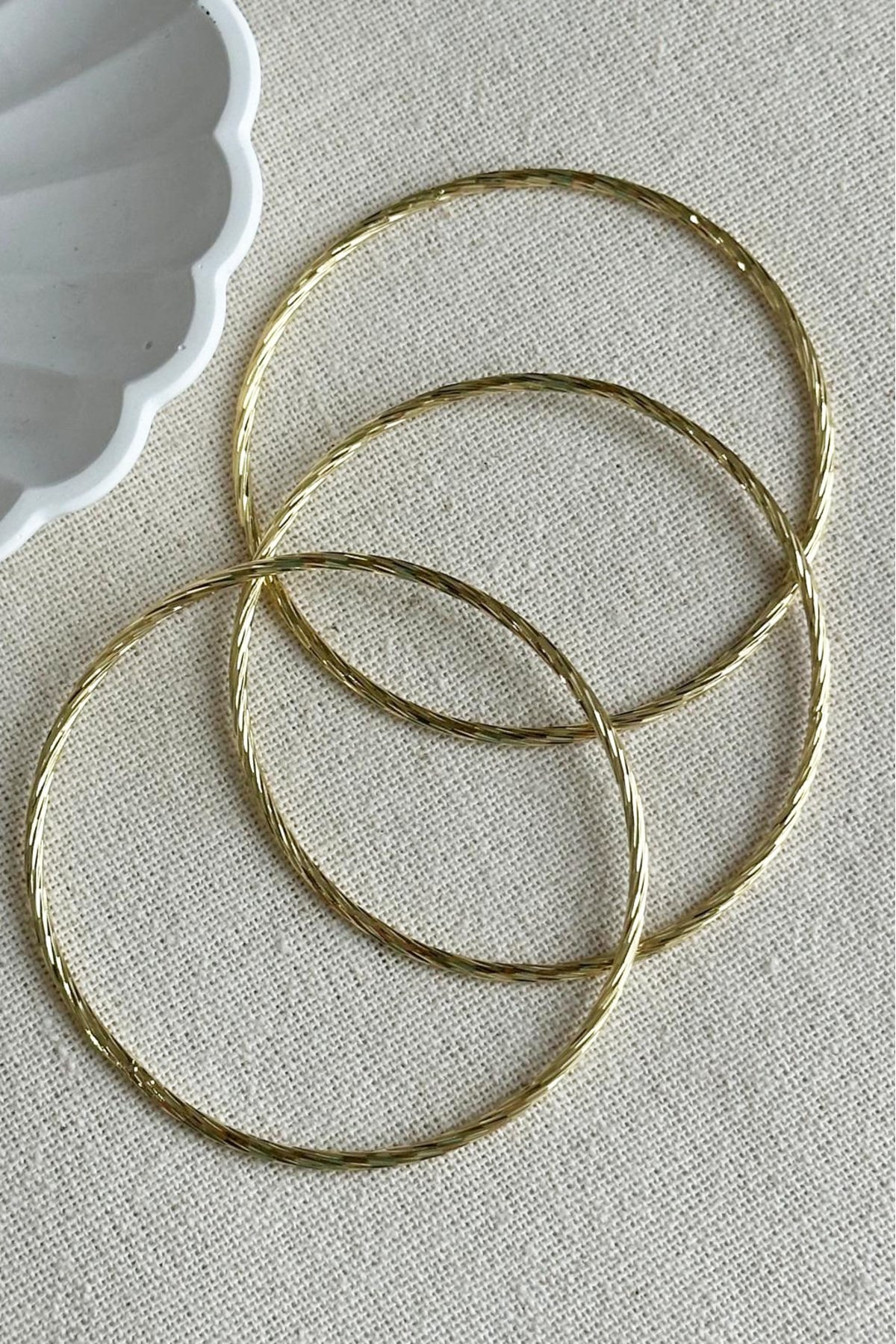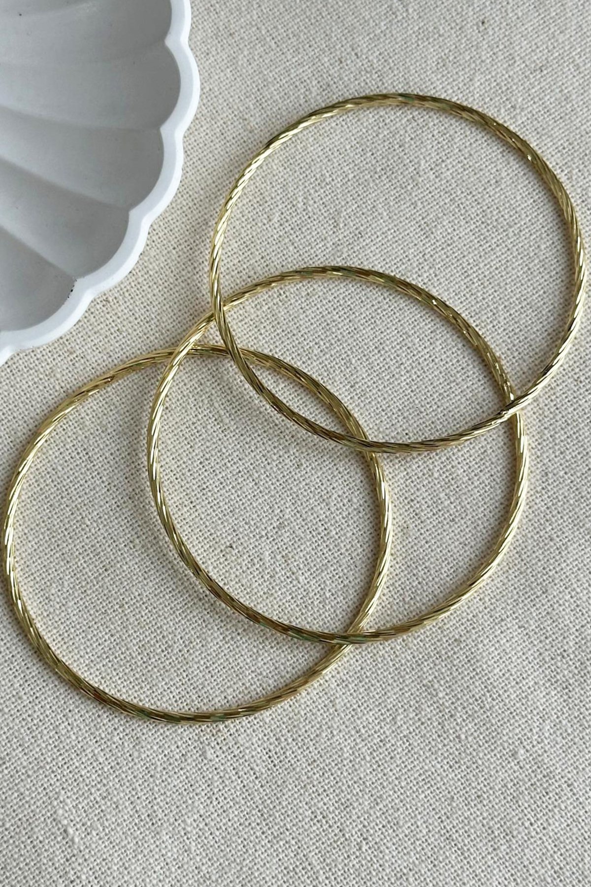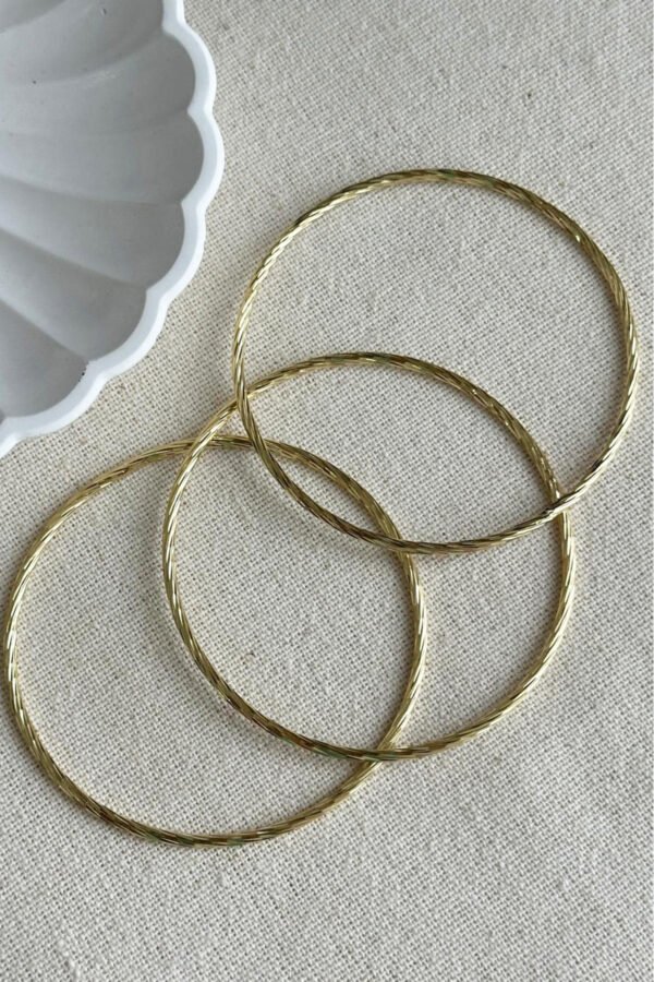 Xuping 14K Çizgili 3’lü 62 mm Çaplı Kadın Bilezik Altın Renkli Kadın Xupibg Bileklik