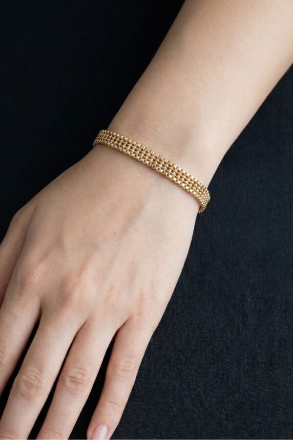 Şıklığınızı tamamlayacak bu özel tasarım bileklik, zarafeti ve kaliteyi bir araya getiriyor. Anti-alerjik yapısı ve kararma yapmayan özel kaplaması sayesinde günlük kullanımda güvenle tercih edebilirsiniz. Ürünümüz parfüm ve krem gibi kimyasallardan uzak tutulduğu sürece ışıltısını yıllarca korur. Her bileğe uygun ölçüsüyle hem kendiniz hem de sevdikleriniz için mükemmel bir hediye seçeneğidir