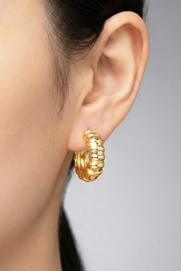 Xuping 14K İncili Halka Çizgi Klipsli Kadın Küpe Kararmaz Kadın Takı Xuping Küpe - Görsel 6