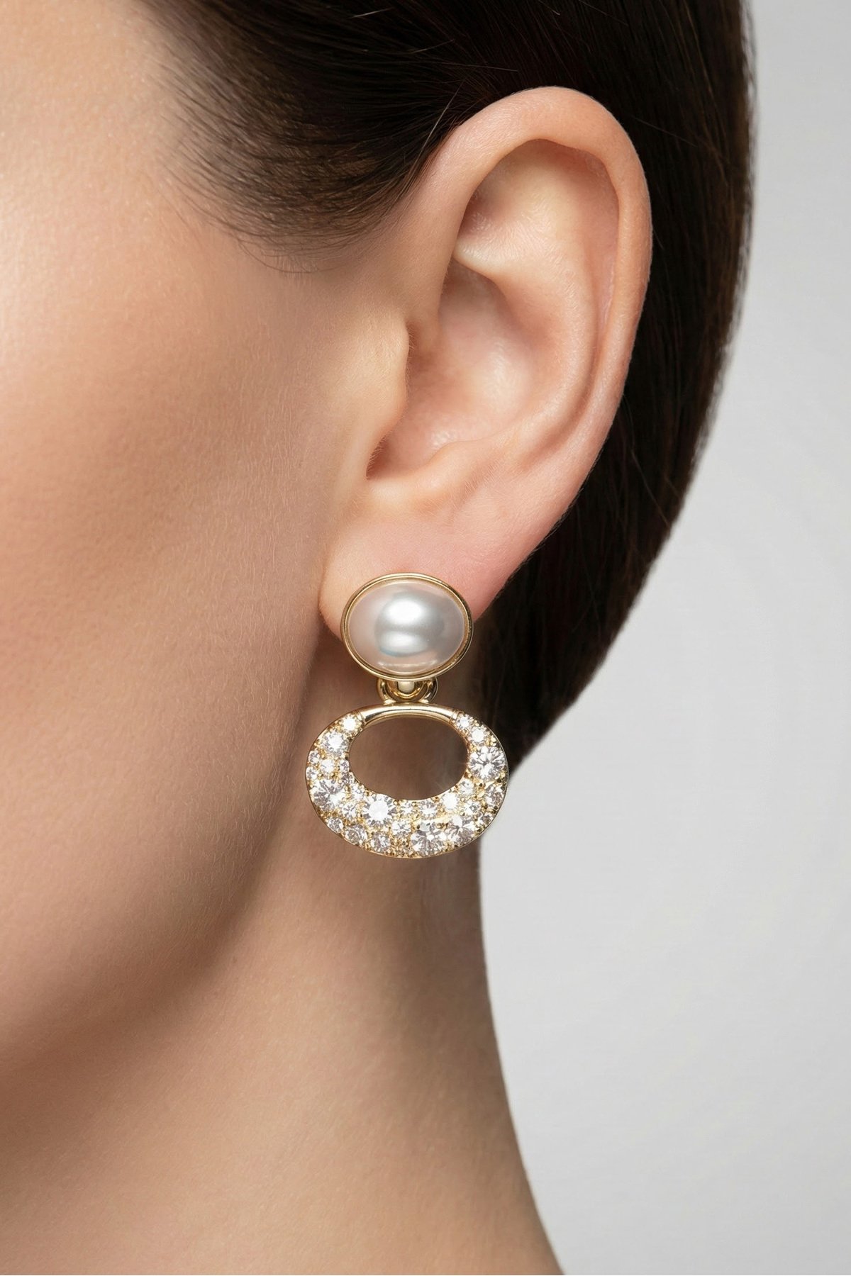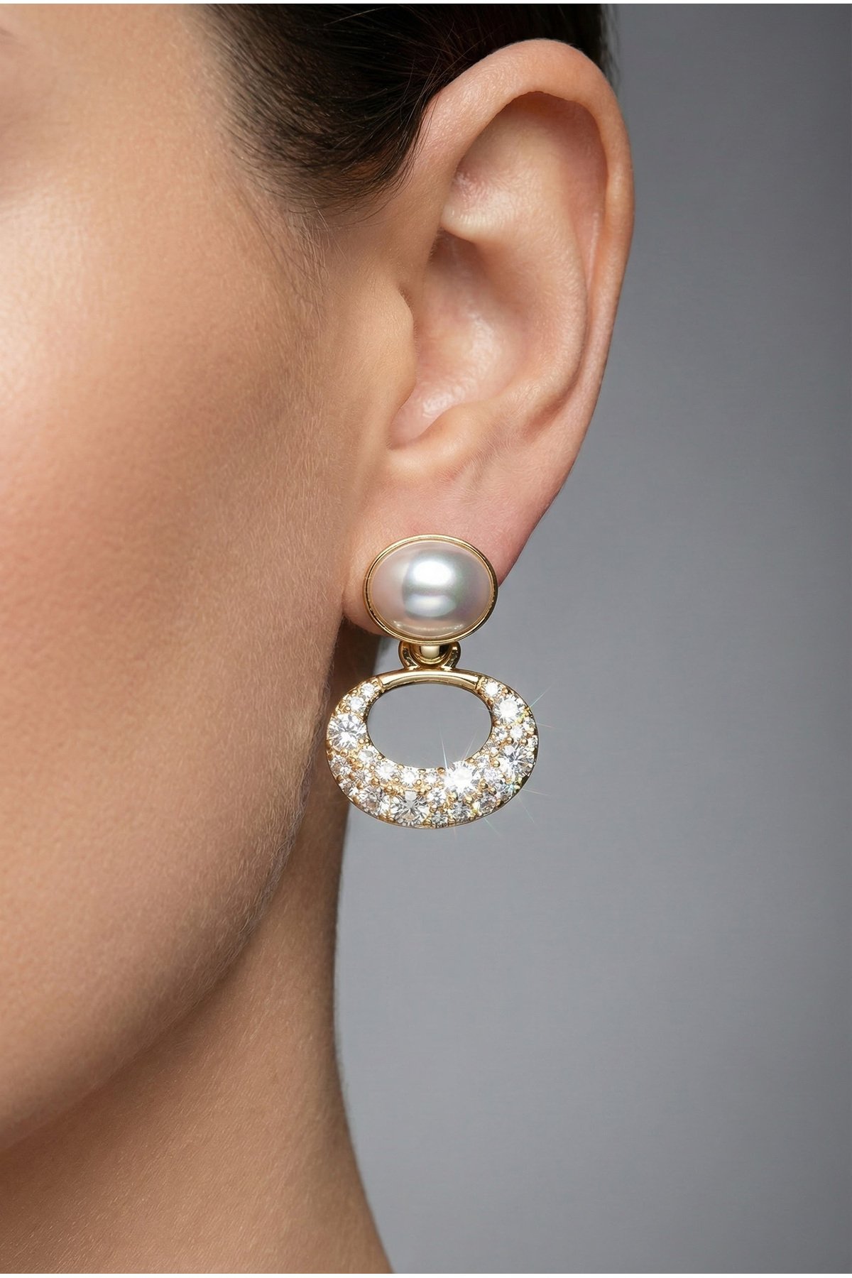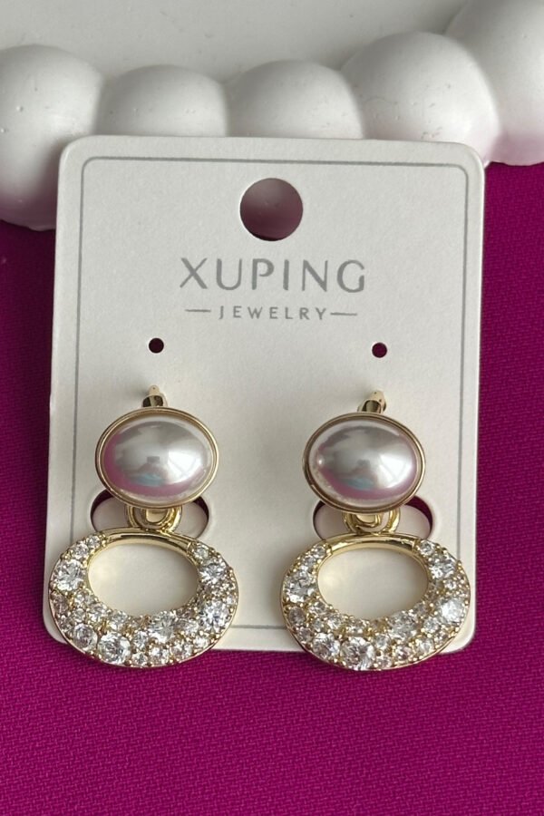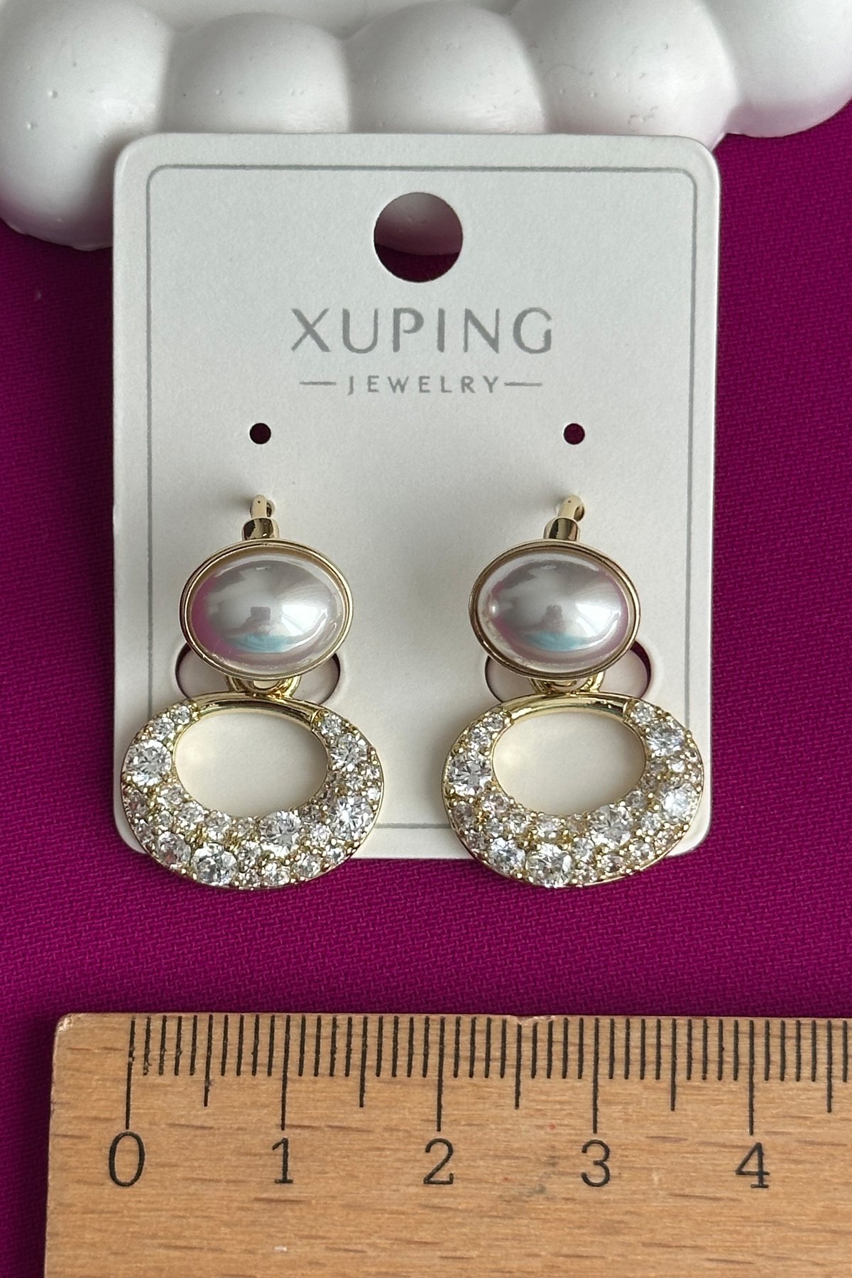 Xuping 14K İncili Oval Taşlı Klipsli Kadın Küpe Kararmaz Kadın Takı Xuping Küpe