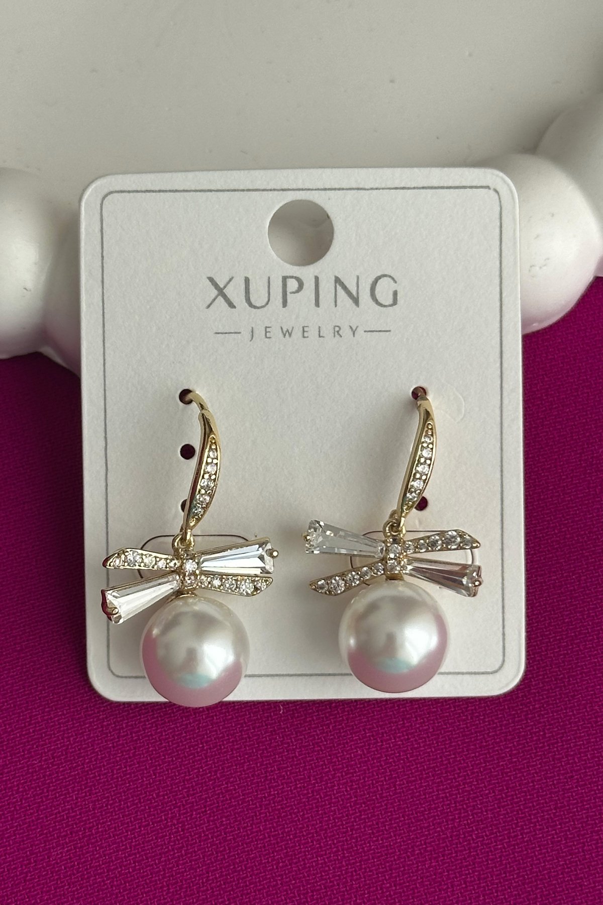 Xuping 14K İncili Taşlı Klipsli Kadın Küpe Kararmaz Kadın Takı Xuping Küpe