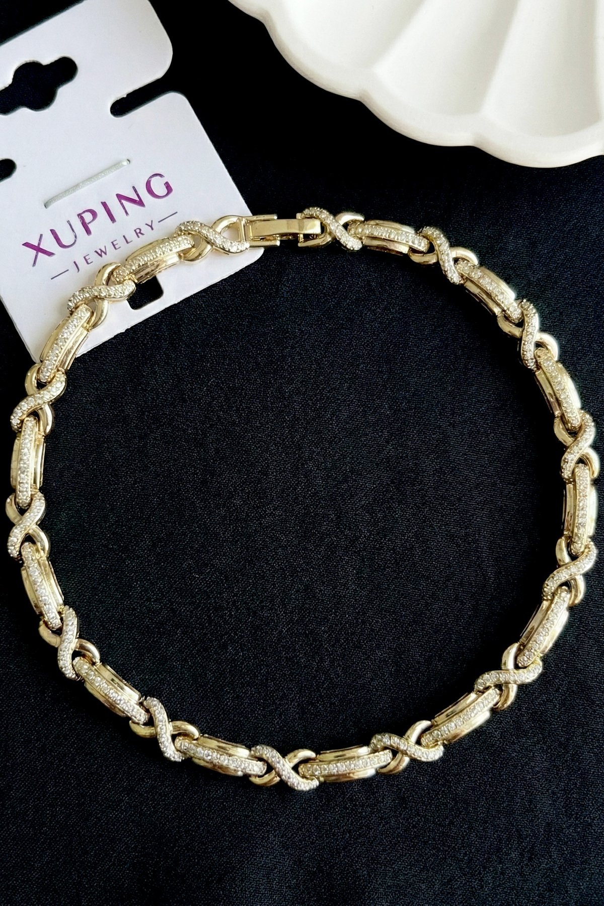 Xuping 14K Taşlı Sonsuzluk Zincir Kadın Bileklik – 17+2 cm | Altın Renk Kararmaz Xuping Takı şık tasarımı ve kaliteli işçiliği ile günlük kullanımda ve özel davetlerde stilinizi tamamlar.; -Marka – Xuping -Kaplama – 14K altın kaplama -Model – Bileklik -Taş Türü – Zirkon -Renk – Altın renk -Uzunluk – 17 cm + 2 cm ayarlanabilir -Özellik – Kararmaz, uzun süreli parlaklık Kullanım Alanı – Günlük şıklık, iş kombinleri ve özel davetler için uygundur.; Hediye seçeneği olarak da tercih edilebilir.; Bakım Önerileri – Parlaklığını koruması için kimyasal maddelerden ve sudan uzak tutulması tavsiye edilir.; Paketleme – Şık kutu içerisinde gönderilir, hediye etmeye uygundur.; Not – Takınızın uzun ömürlü olması için şampuan, deterjan ve benzeri kimyasal maddelerden uzak tutunuz.