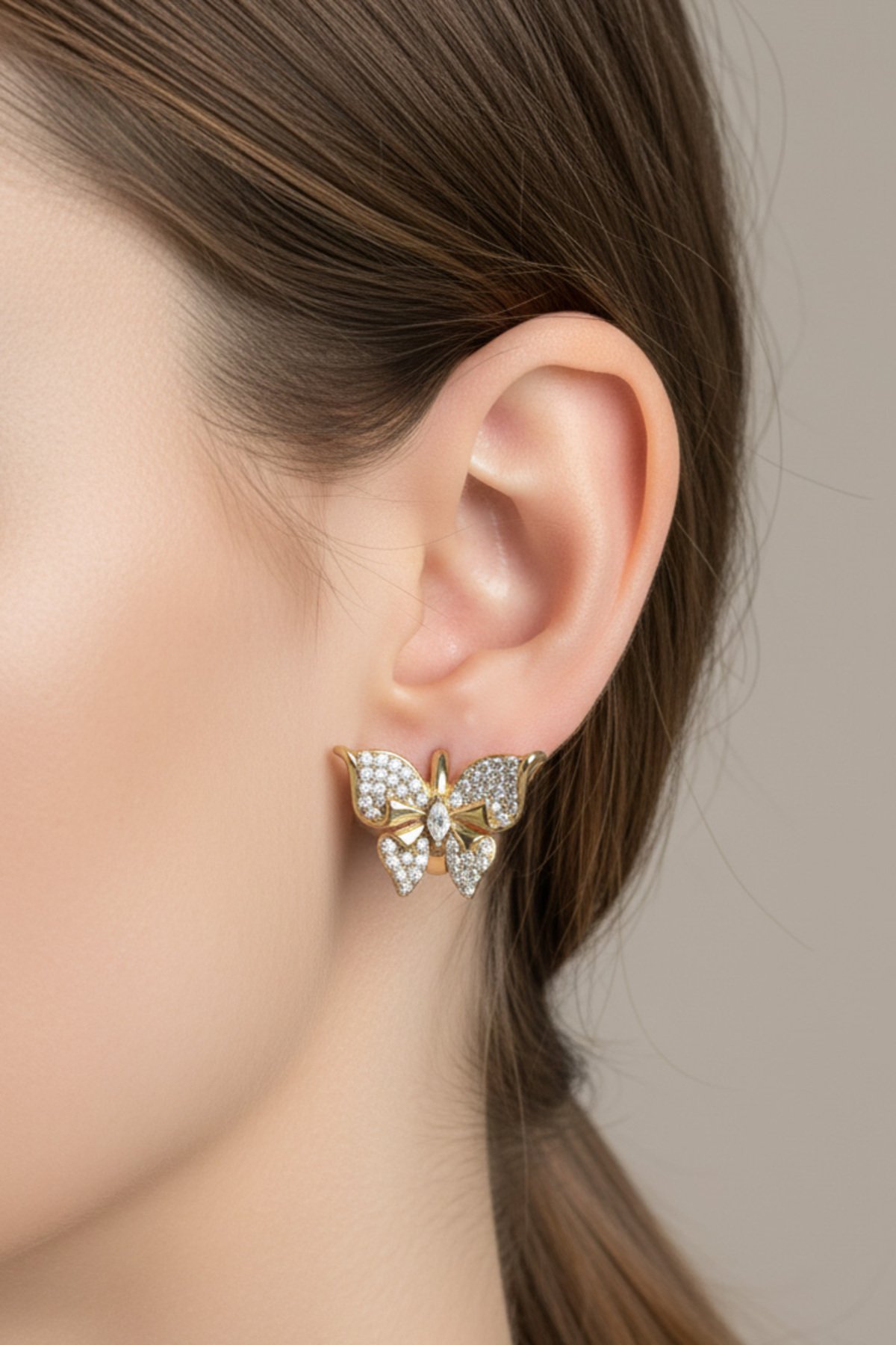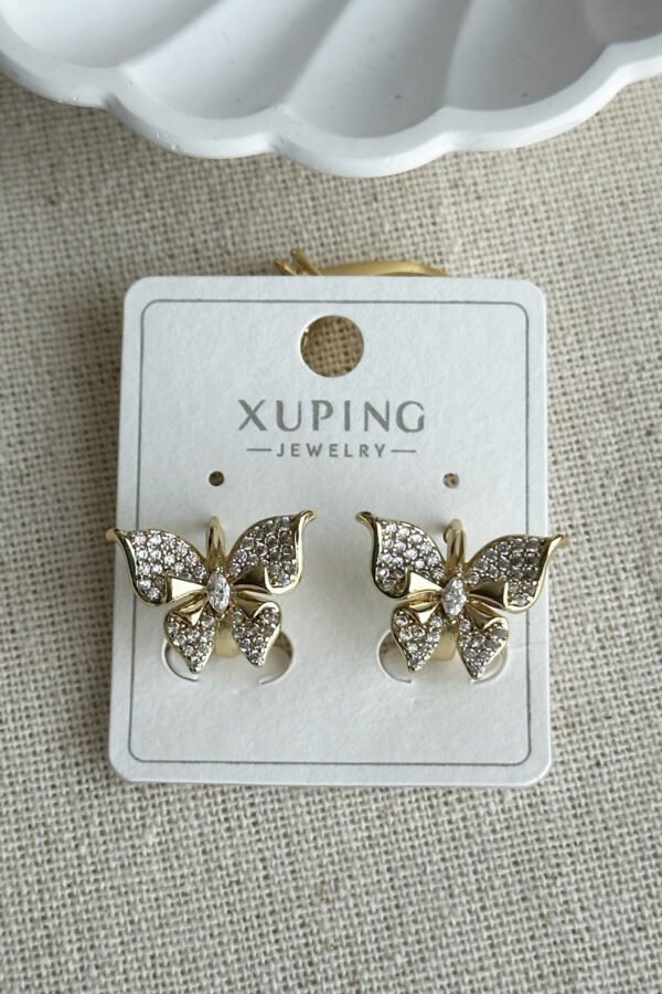 Xuping 14K Taşlı Kelebekli Klipsli Kadın Küpe Kararmaz Kadın Takı Xuping Küpe