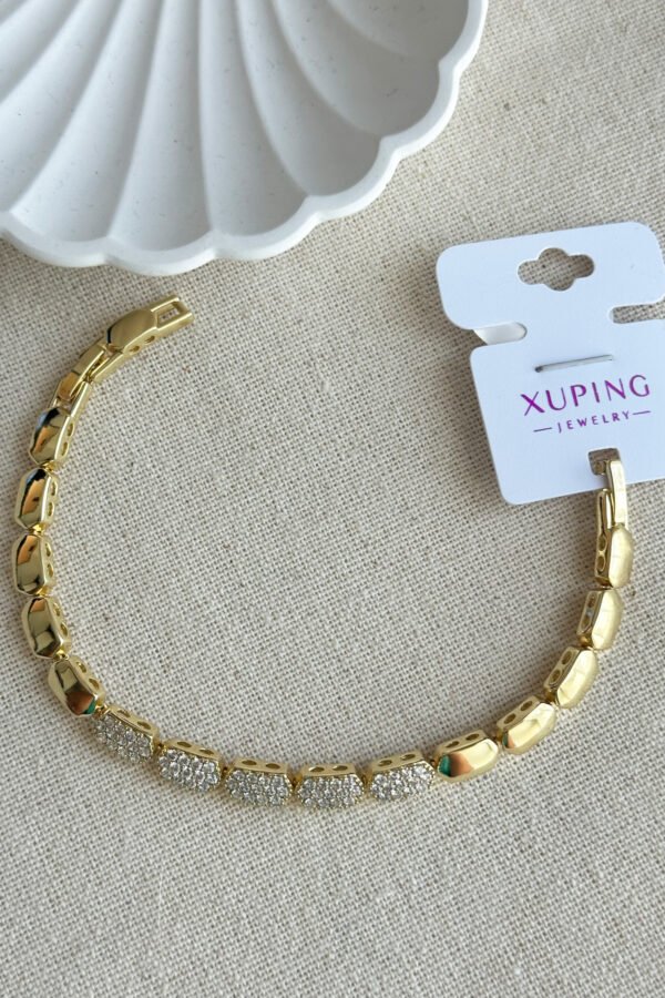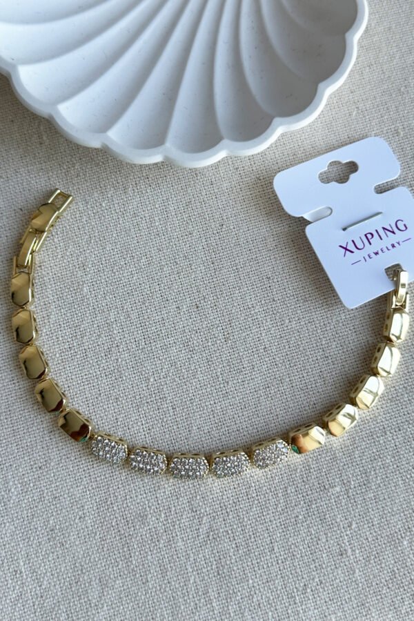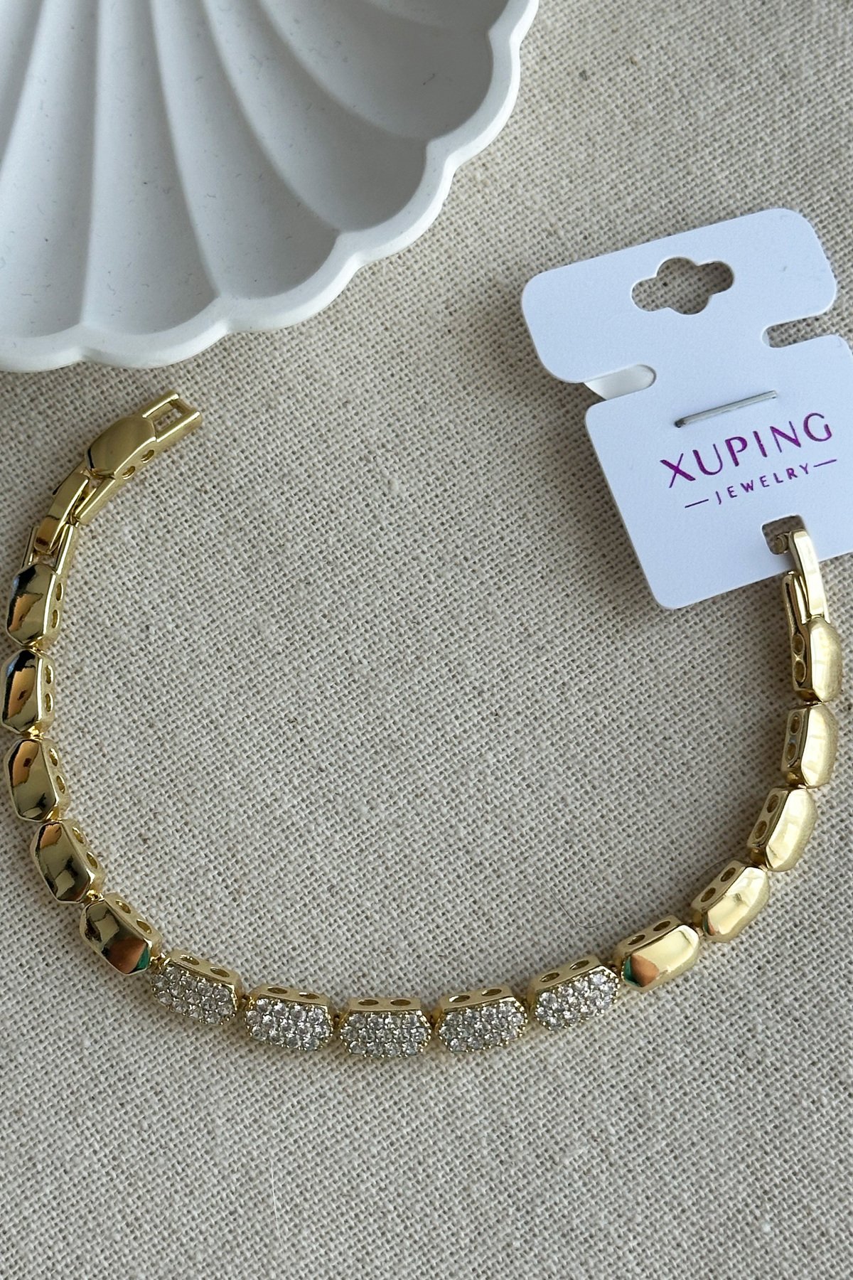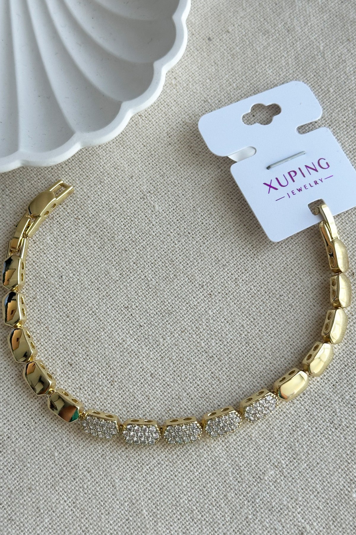 Xuping 14K Taşlı Oktagon Taşlı Zincir Kadın Bileklik – 17+2 cm | Altın Renk Kararmaz Xuping Takı