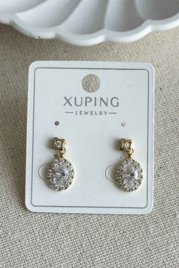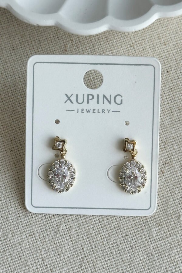 Xuping 14K Taşlı Oval Taşlı Vidalı Kadın Küpe Kararmaz Xuping Takı Küpe