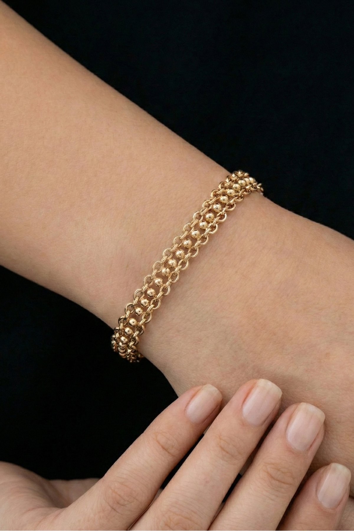 Şıklığınızı tamamlayacak bu özel tasarım bileklik, zarafeti ve kaliteyi bir araya getiriyor. Anti-alerjik yapısı ve kararma yapmayan özel kaplaması sayesinde günlük kullanımda güvenle tercih edebilirsiniz. Ürünümüz parfüm ve krem gibi kimyasallardan uzak tutulduğu sürece ışıltısını yıllarca korur. Her bileğe uygun ölçüsüyle hem kendiniz hem de sevdikleriniz için mükemmel bir hediye seçeneğidir