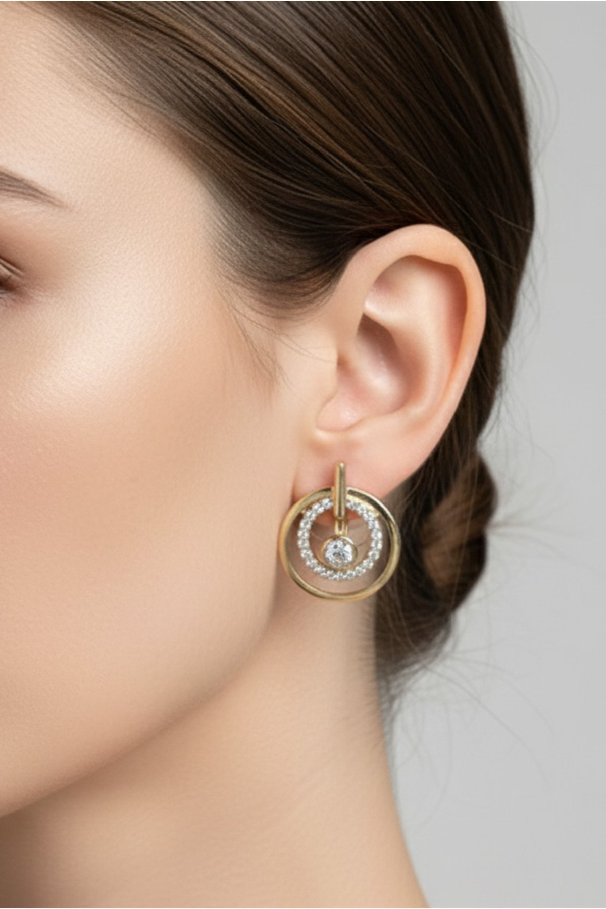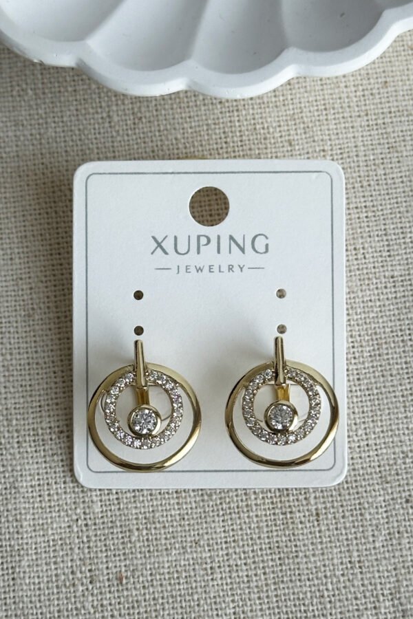 Xuping 14K Yuvarlak Taşlı Klipsli Kadın Küpe Kararmaz Kadın Takı Xuping Küpe