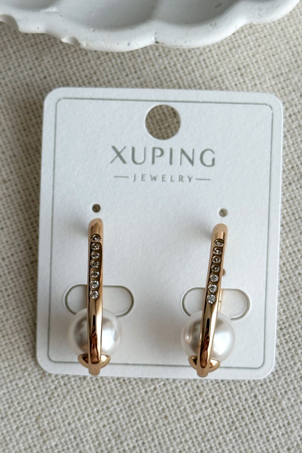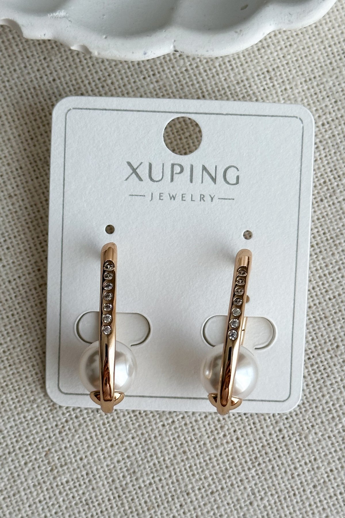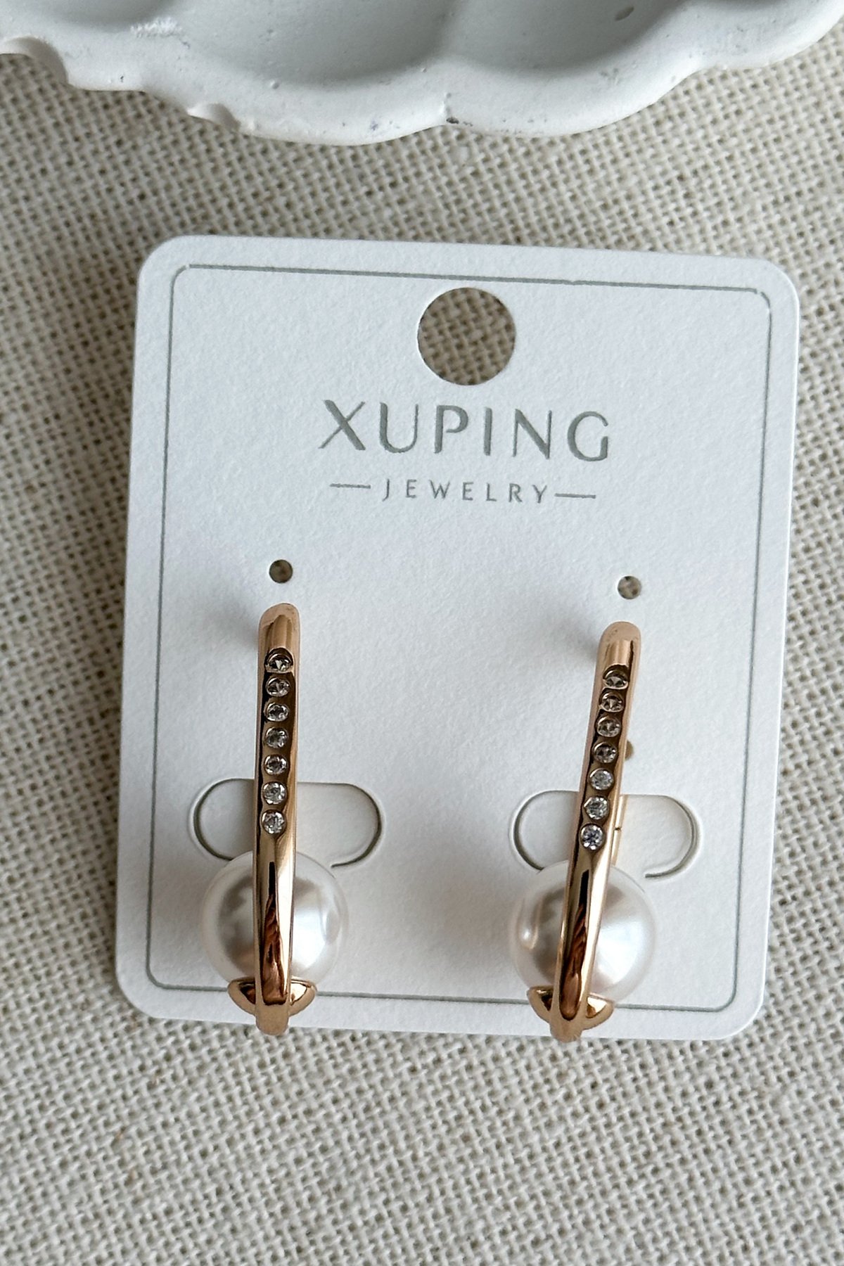 Xuping 18 K Taşı Oval Halka Klipsli İncili Kadın Küpe Kadın Kararmaz Xuping Küpe