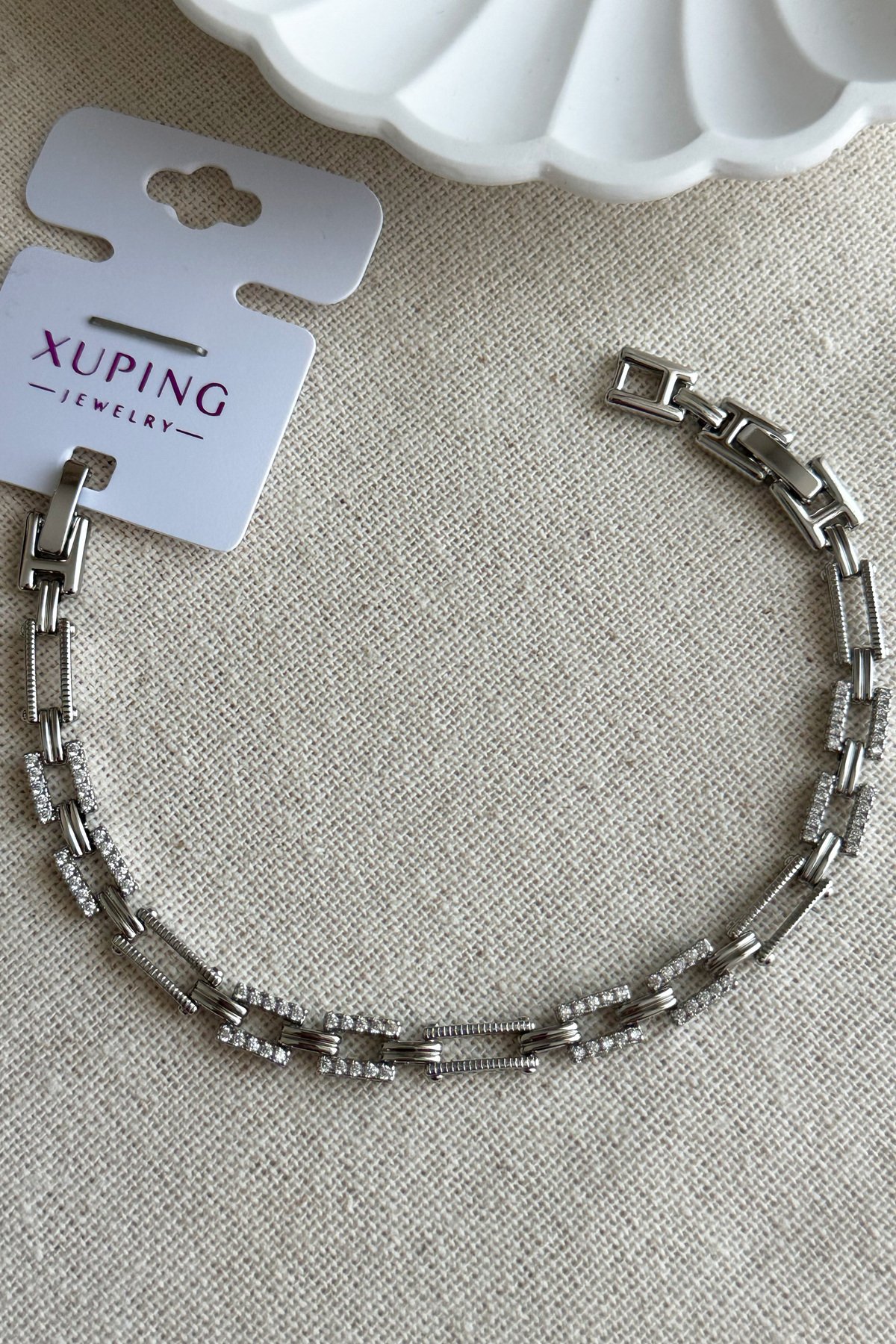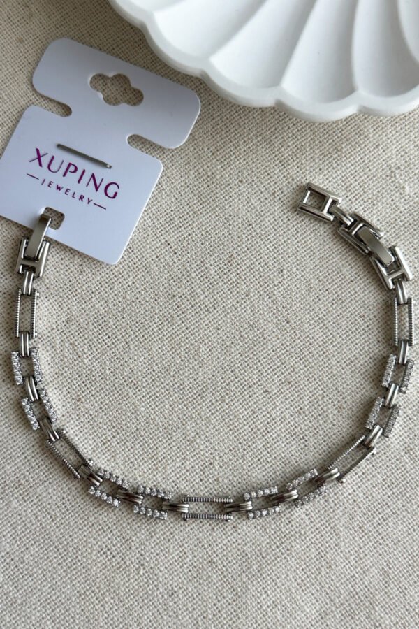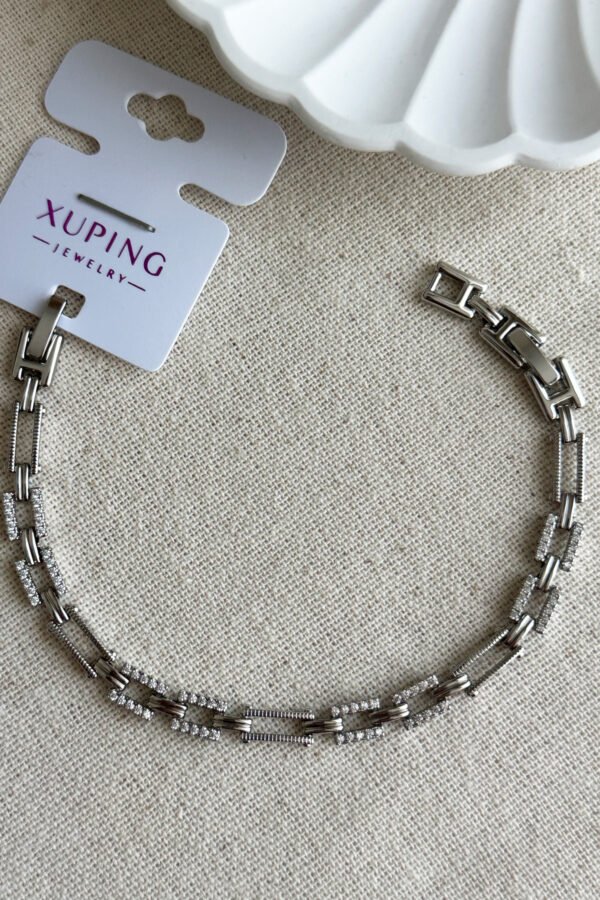 Xuping Taşlı Dikdörtgen Zincir Kadın Bileklik – 17+2 cm | Gümüş Renk Kararmaz Xuping Takı