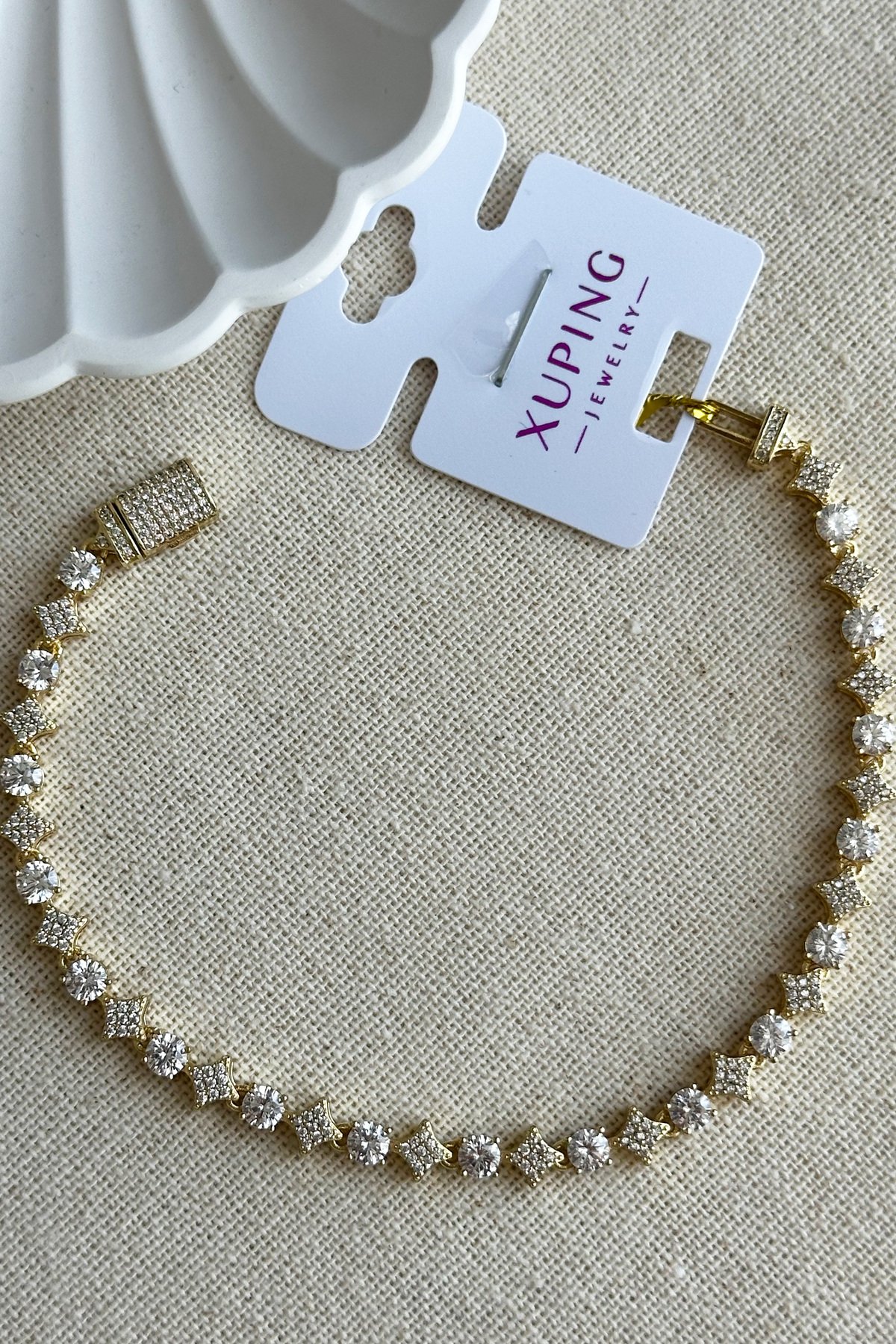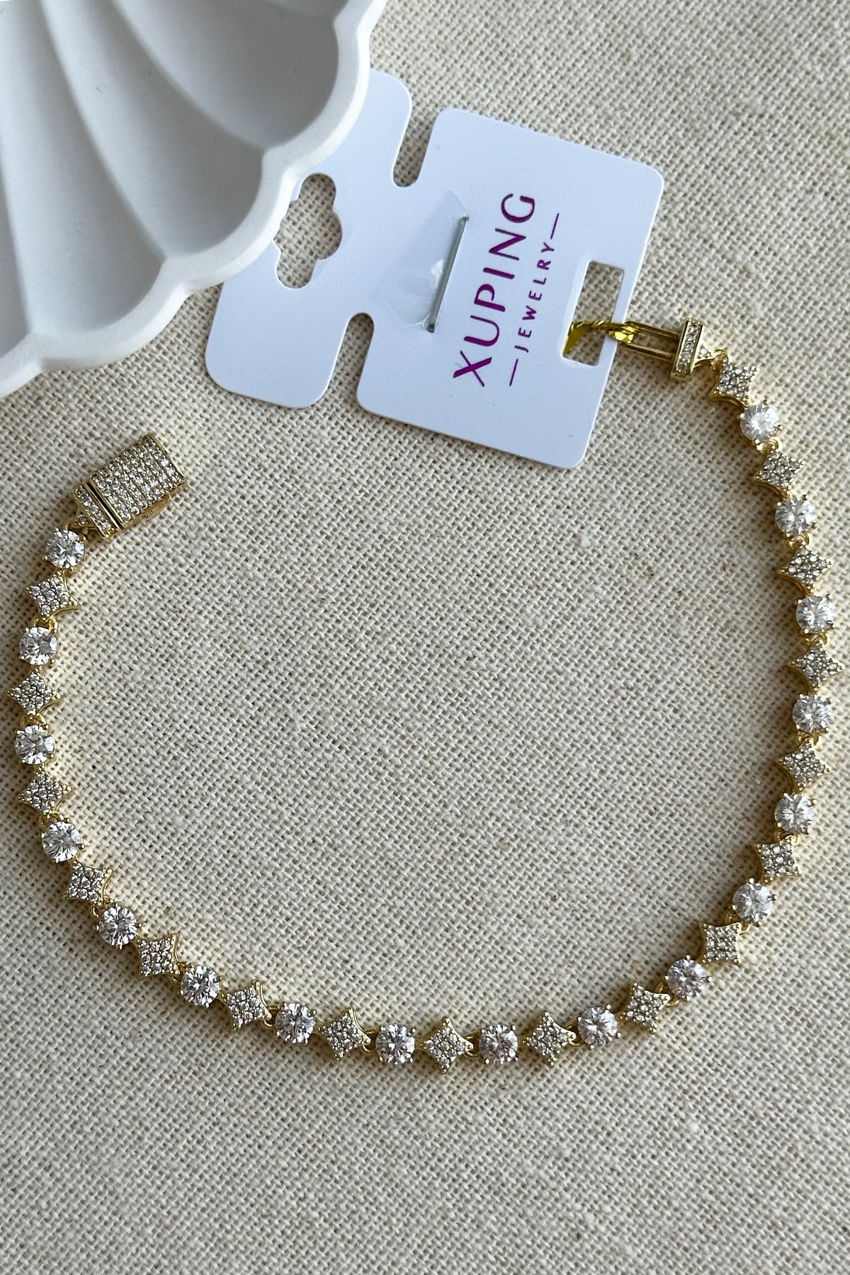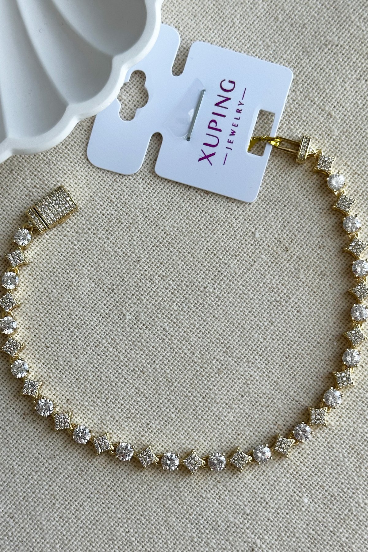 Xuping Taşlı Gurmet Zincir Kadın Bileklik – 20 cm | Altın Renk Kararmaz Xuping Takı