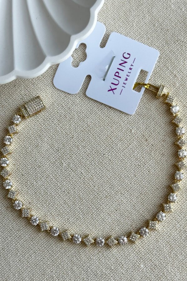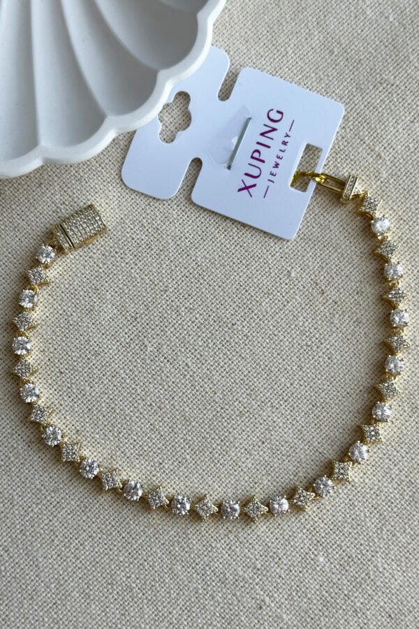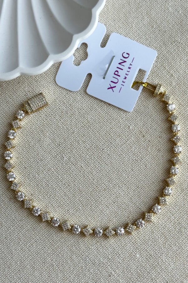 Xuping Taşlı Gurmet Zincir Kadın Bileklik – 20 cm | Altın Renk Kararmaz Xuping Takı - Görsel 2